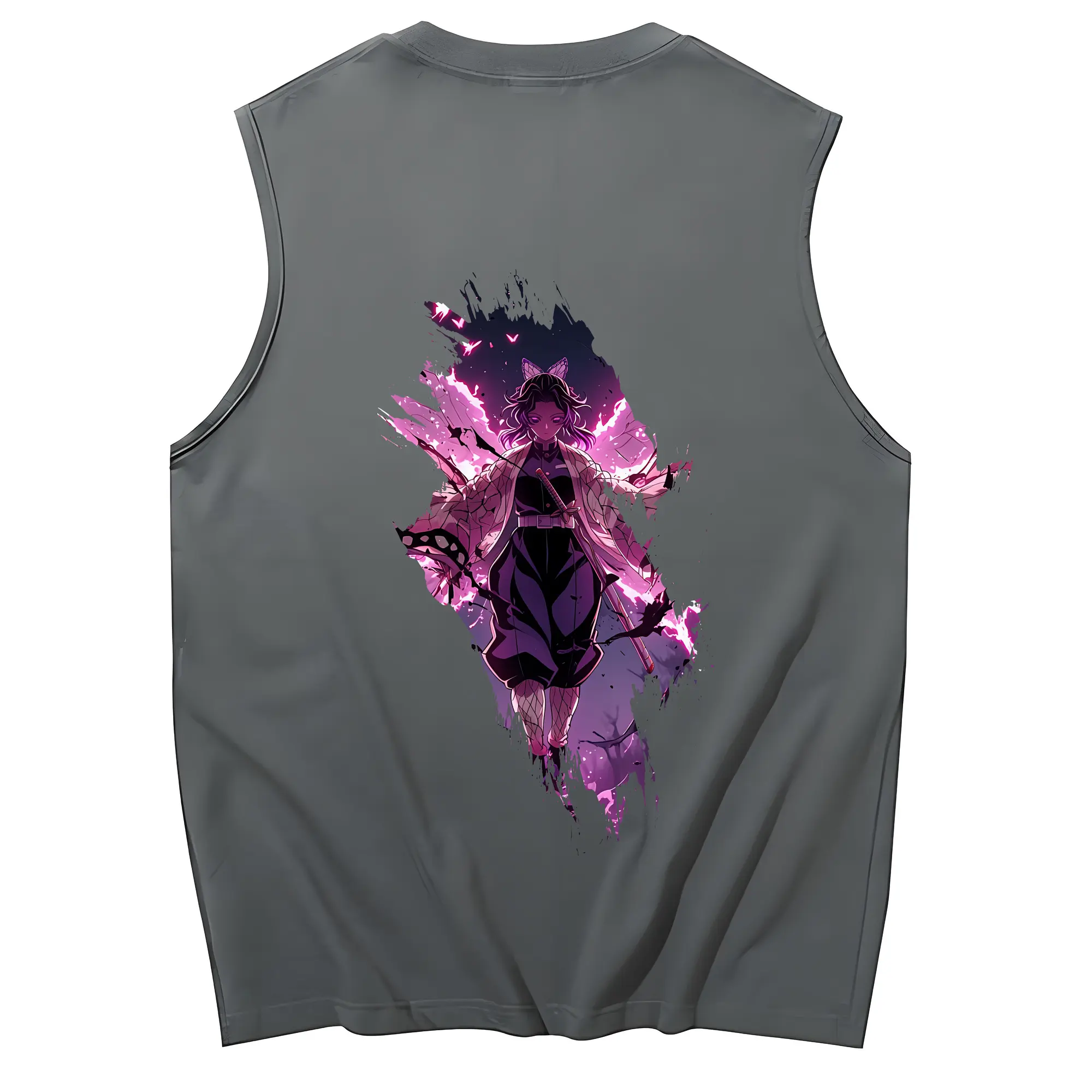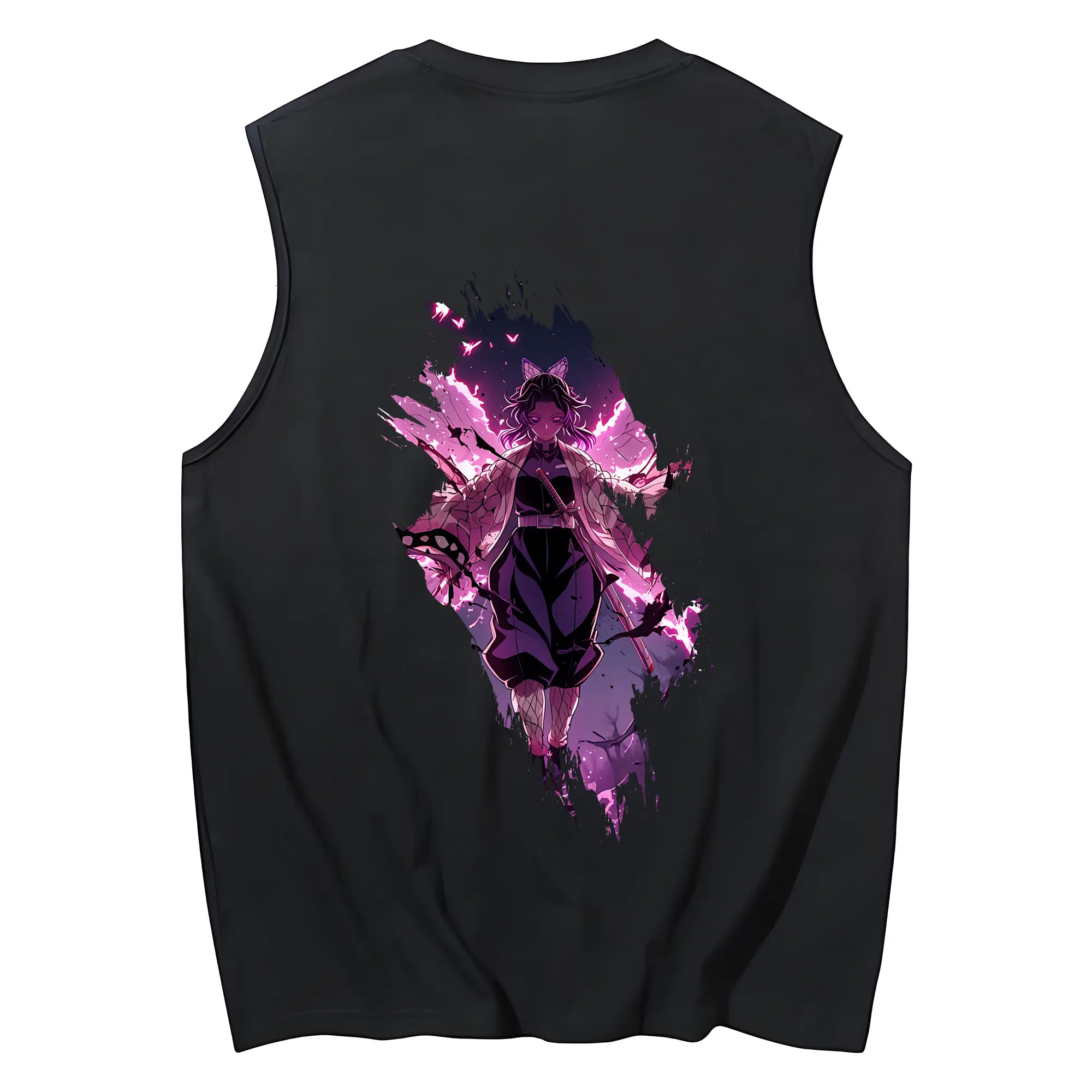 鬼滅の刃 グッズ,胡蝶 しのぶ - コットン100% タンクトップ ・ 背面プリント ・ タイトシルエット ・ 快適 通気性 ・ スポーツ カジュアル 散歩用
