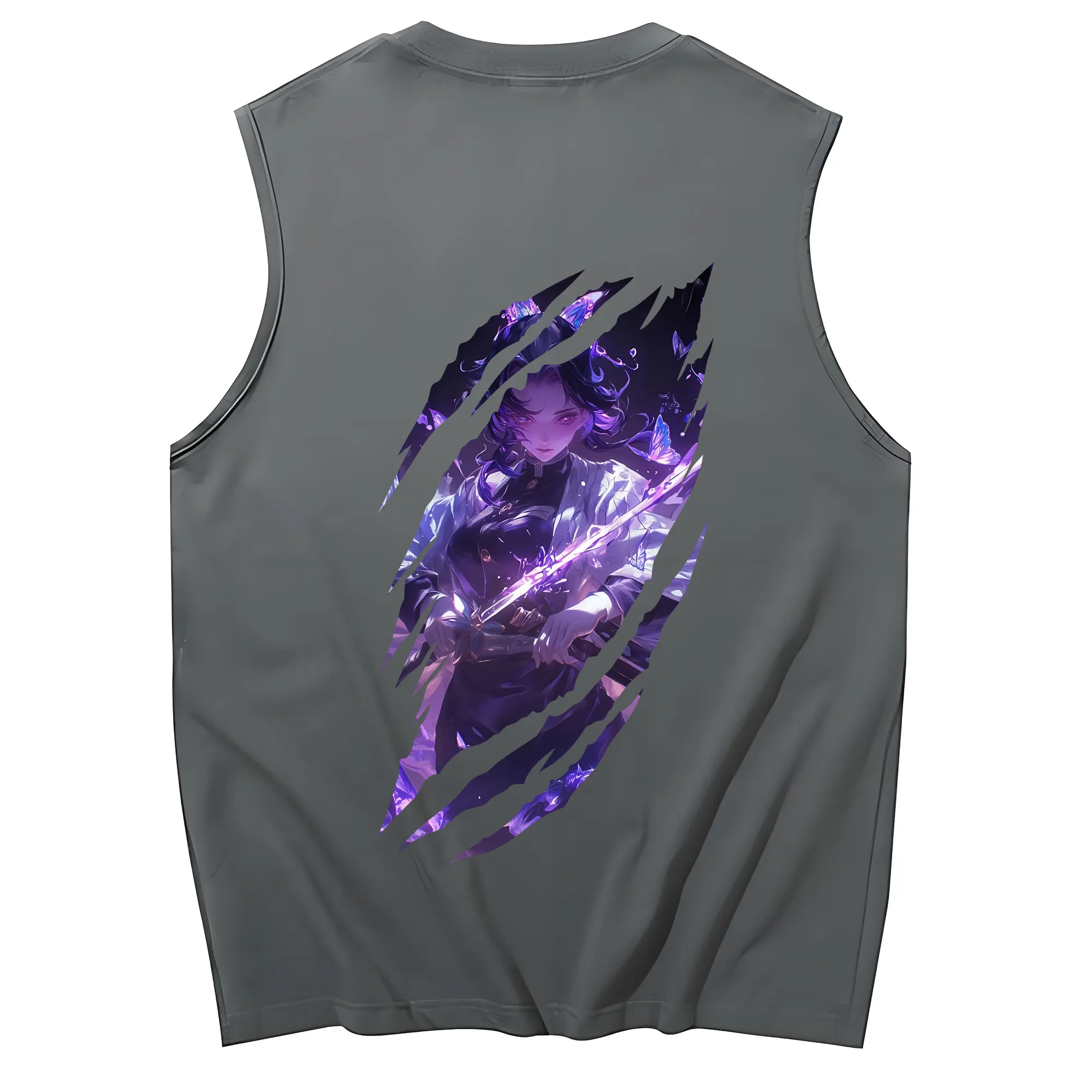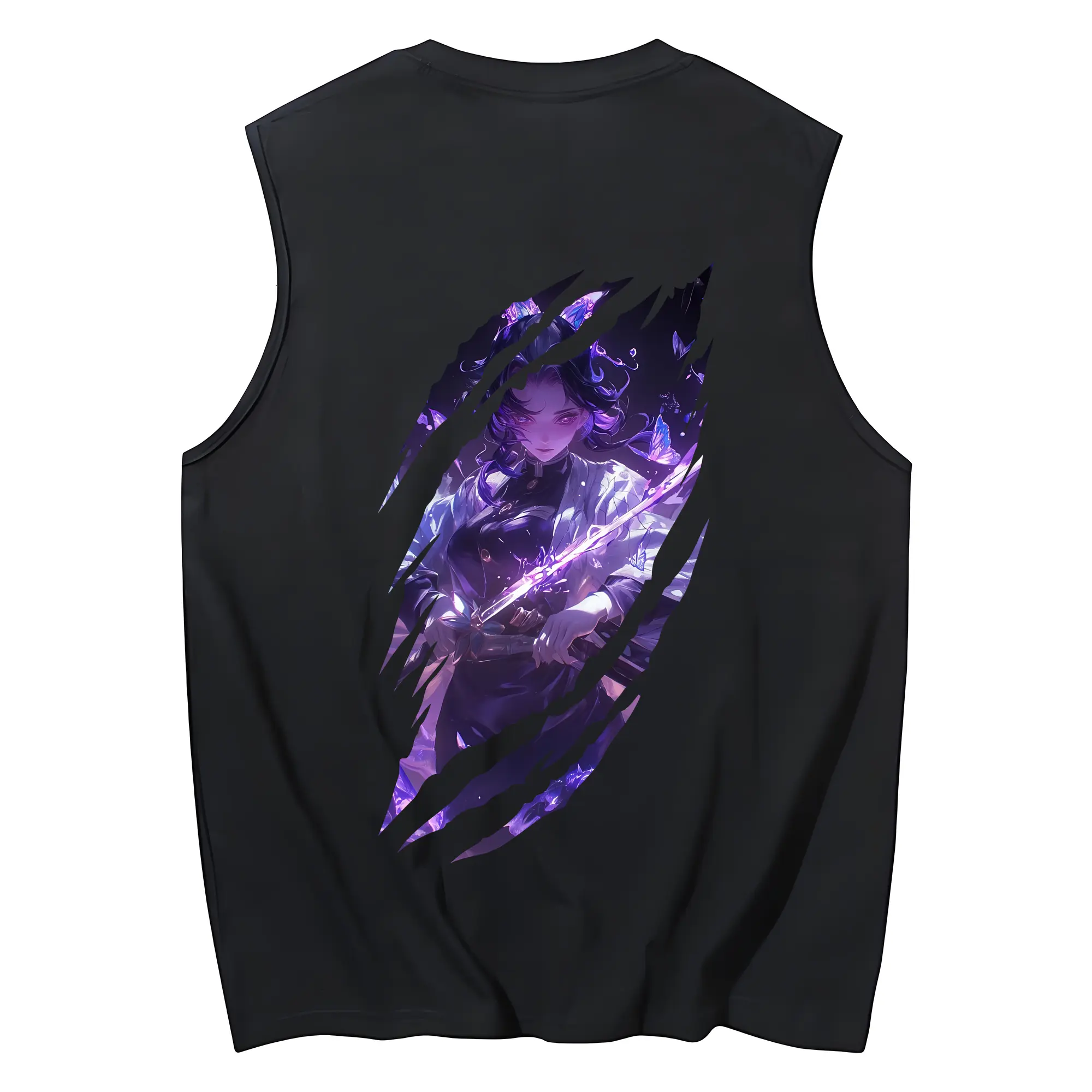 鬼滅の刃 グッズ,胡蝶 しのぶ - コットン100% タンクトップ ・ 背面プリント ・ タイトシルエット ・ 快適 通気性 ・ スポーツ カジュアル 散歩用