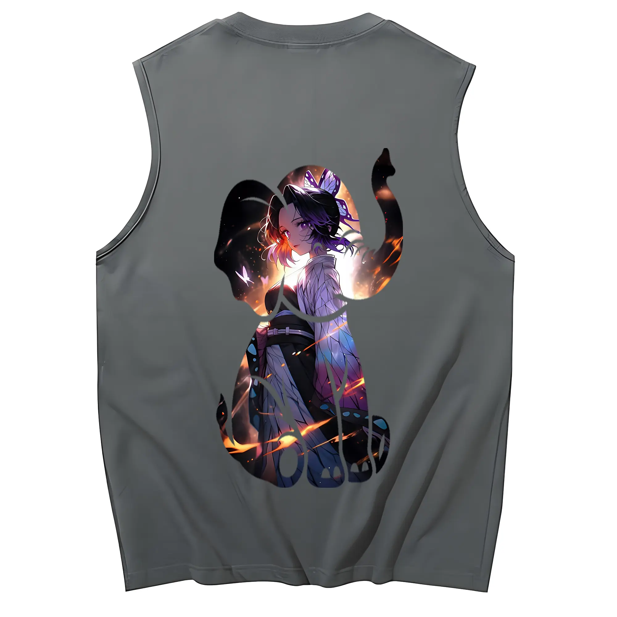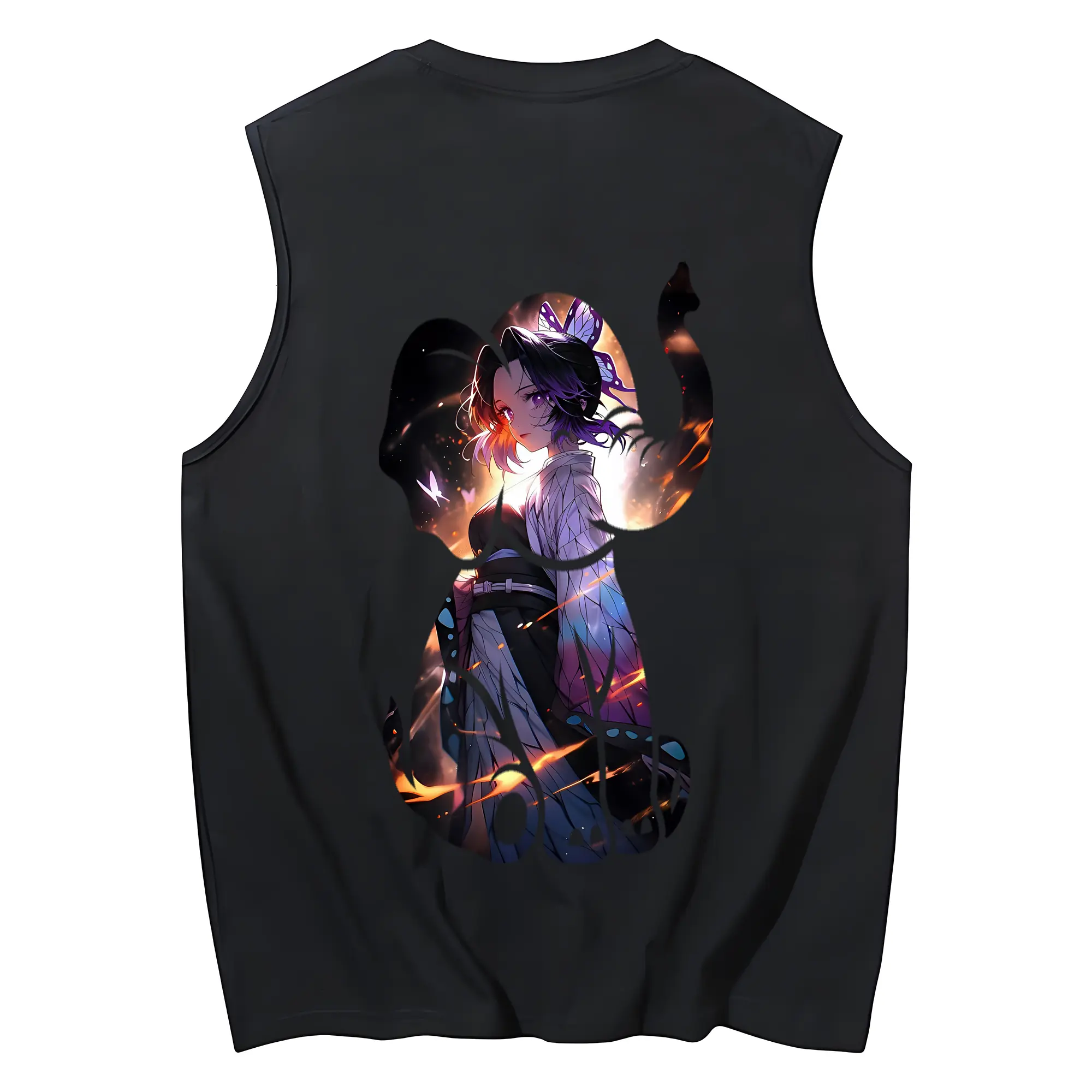 鬼滅の刃 グッズ,胡蝶 しのぶ - コットン100% タンクトップ ・ 背面プリント ・ タイトシルエット ・ 快適 通気性 ・ スポーツ カジュアル 散歩用
