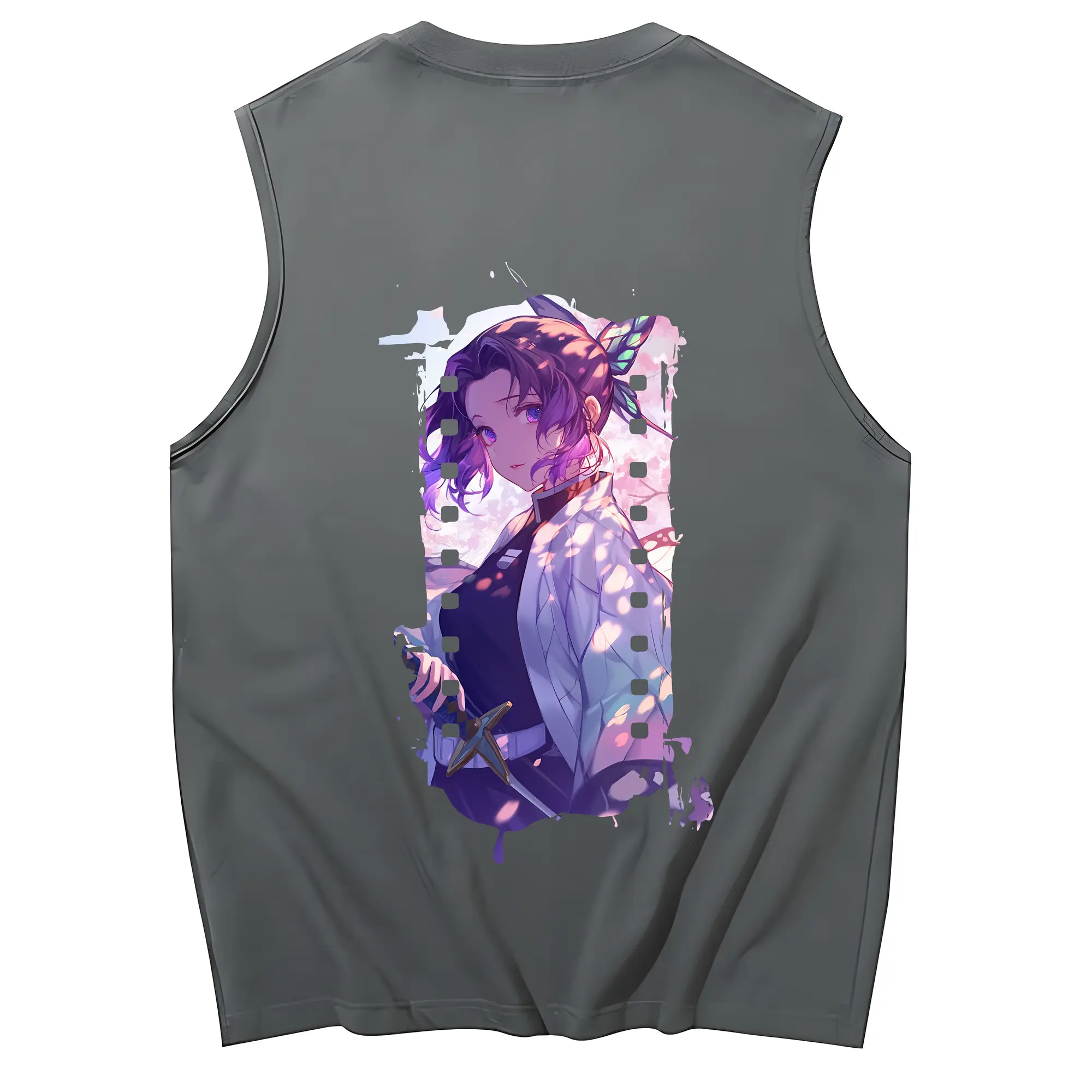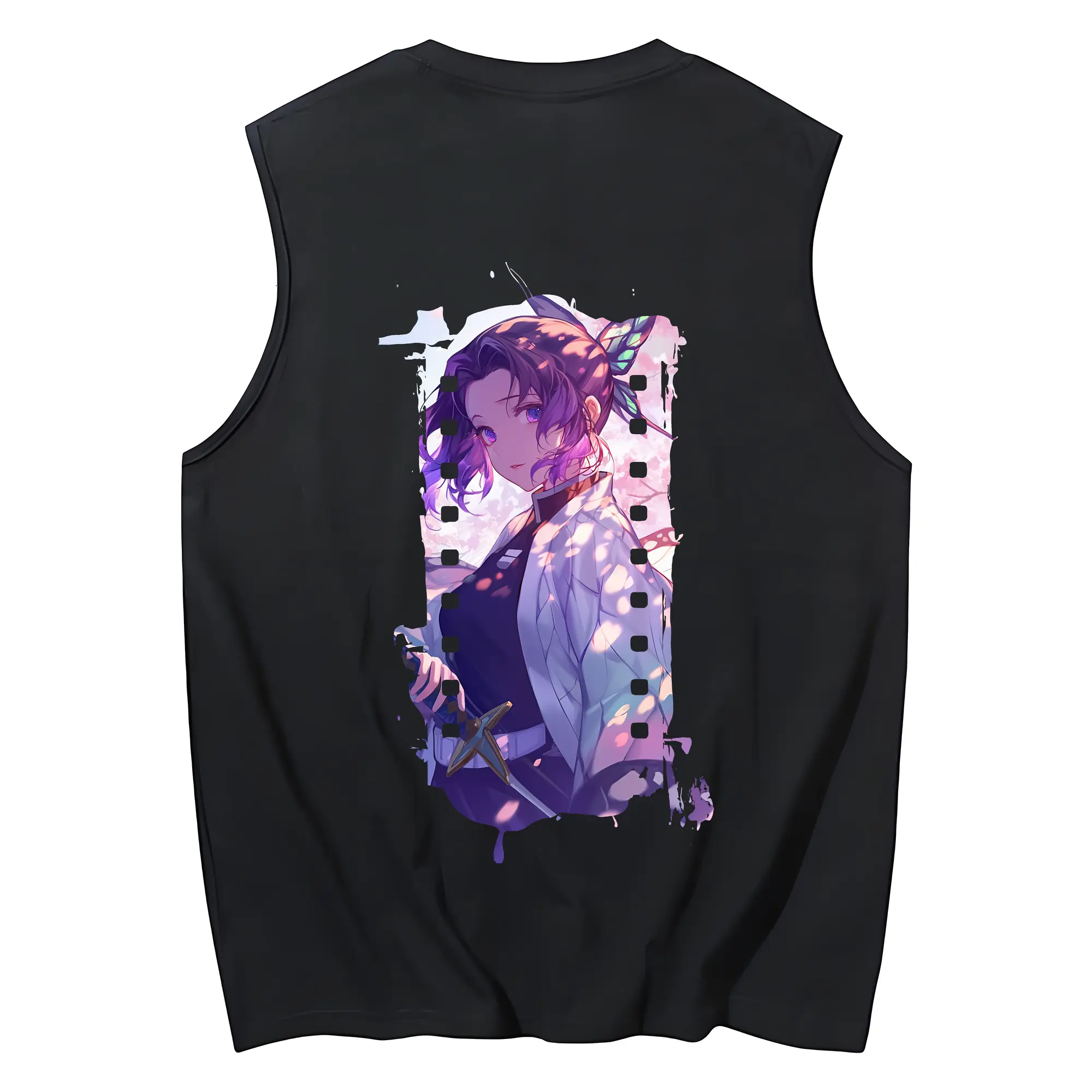 鬼滅の刃 グッズ,胡蝶 しのぶ - コットン100% タンクトップ ・ 背面プリント ・ タイトシルエット ・ 快適 通気性 ・ スポーツ カジュアル 散歩用