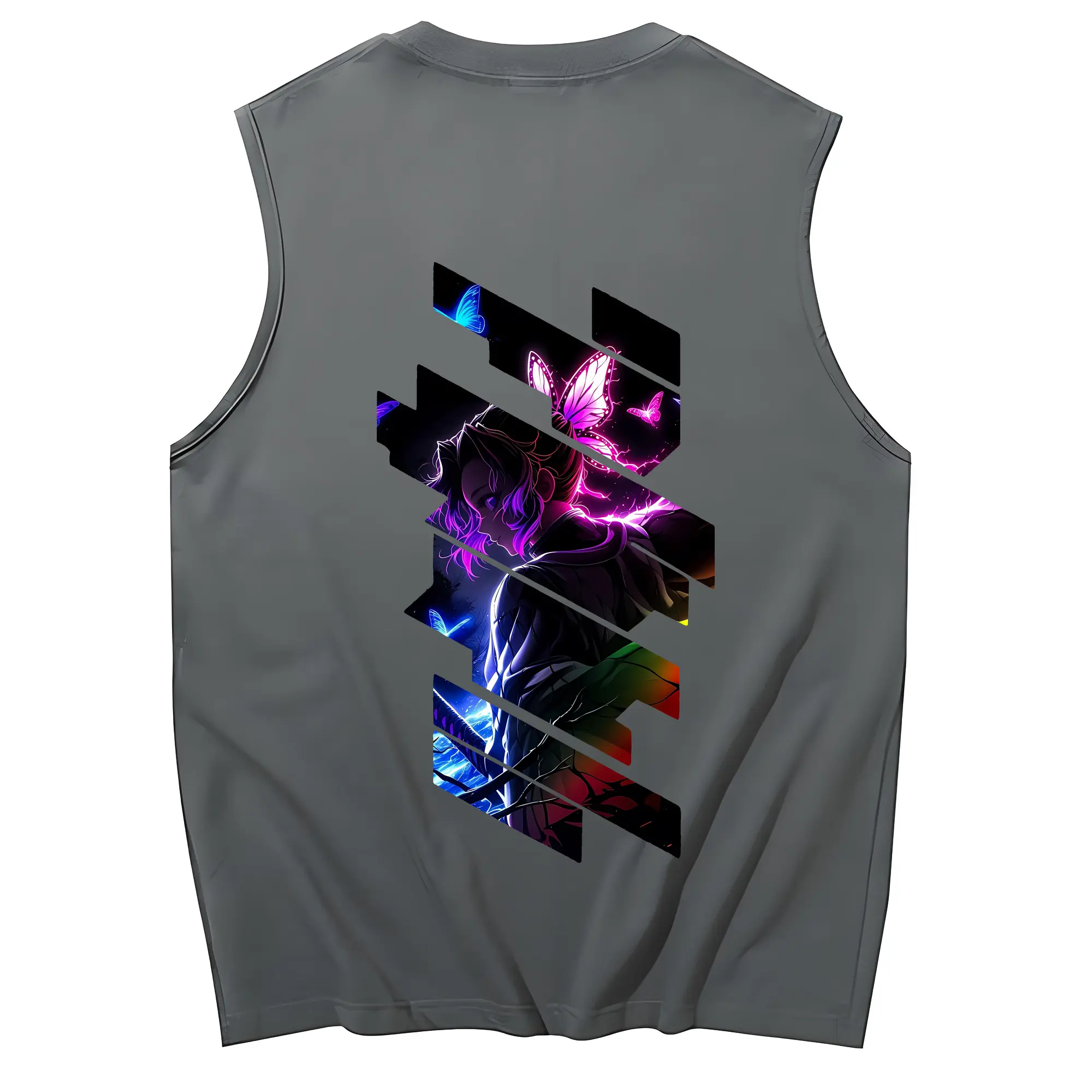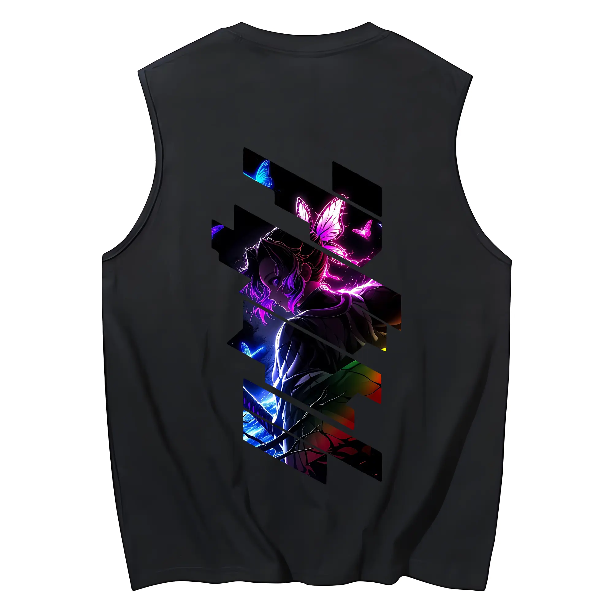 鬼滅の刃 グッズ,胡蝶 しのぶ - コットン100% タンクトップ ・ 背面プリント ・ タイトシルエット ・ 快適 通気性 ・ スポーツ カジュアル 散歩用