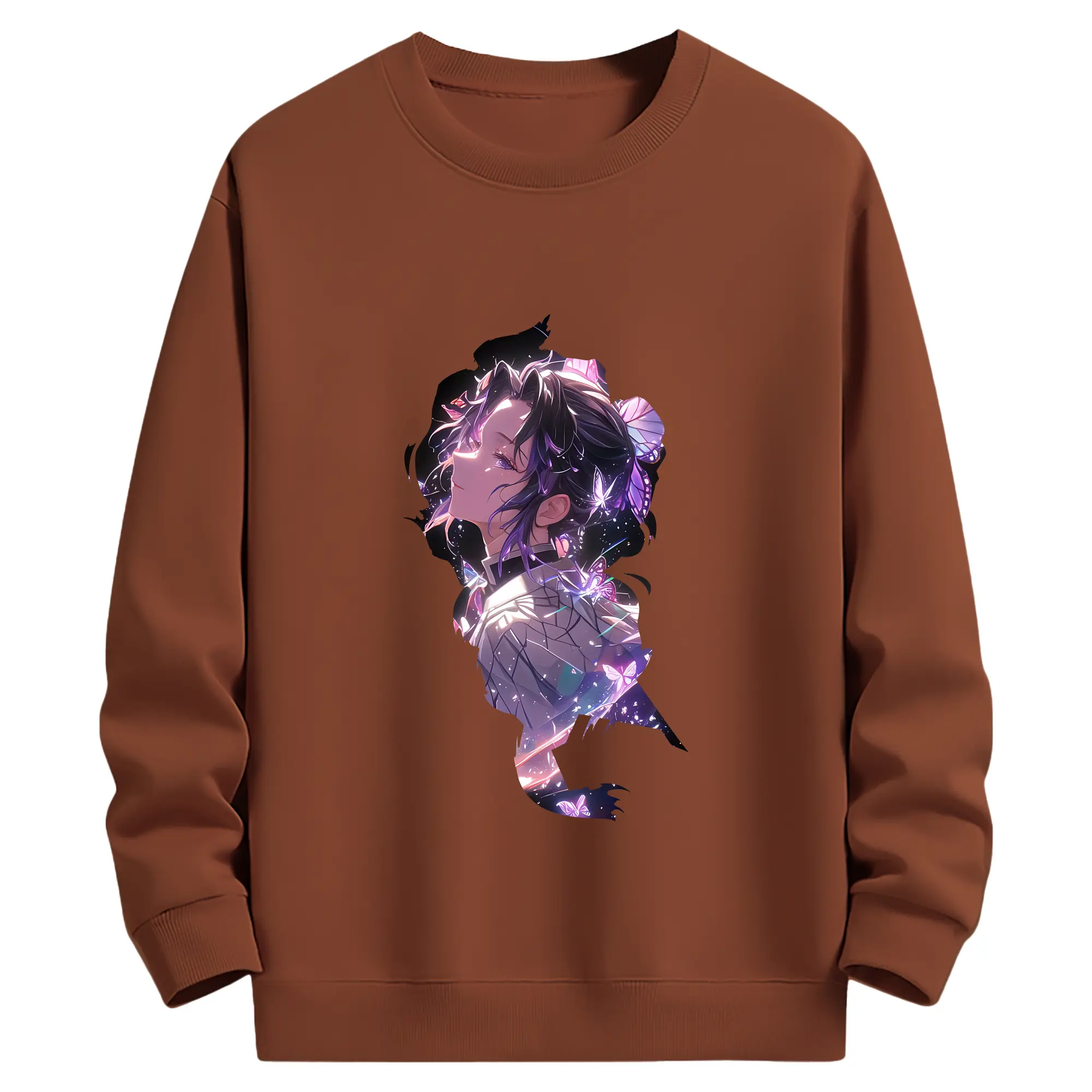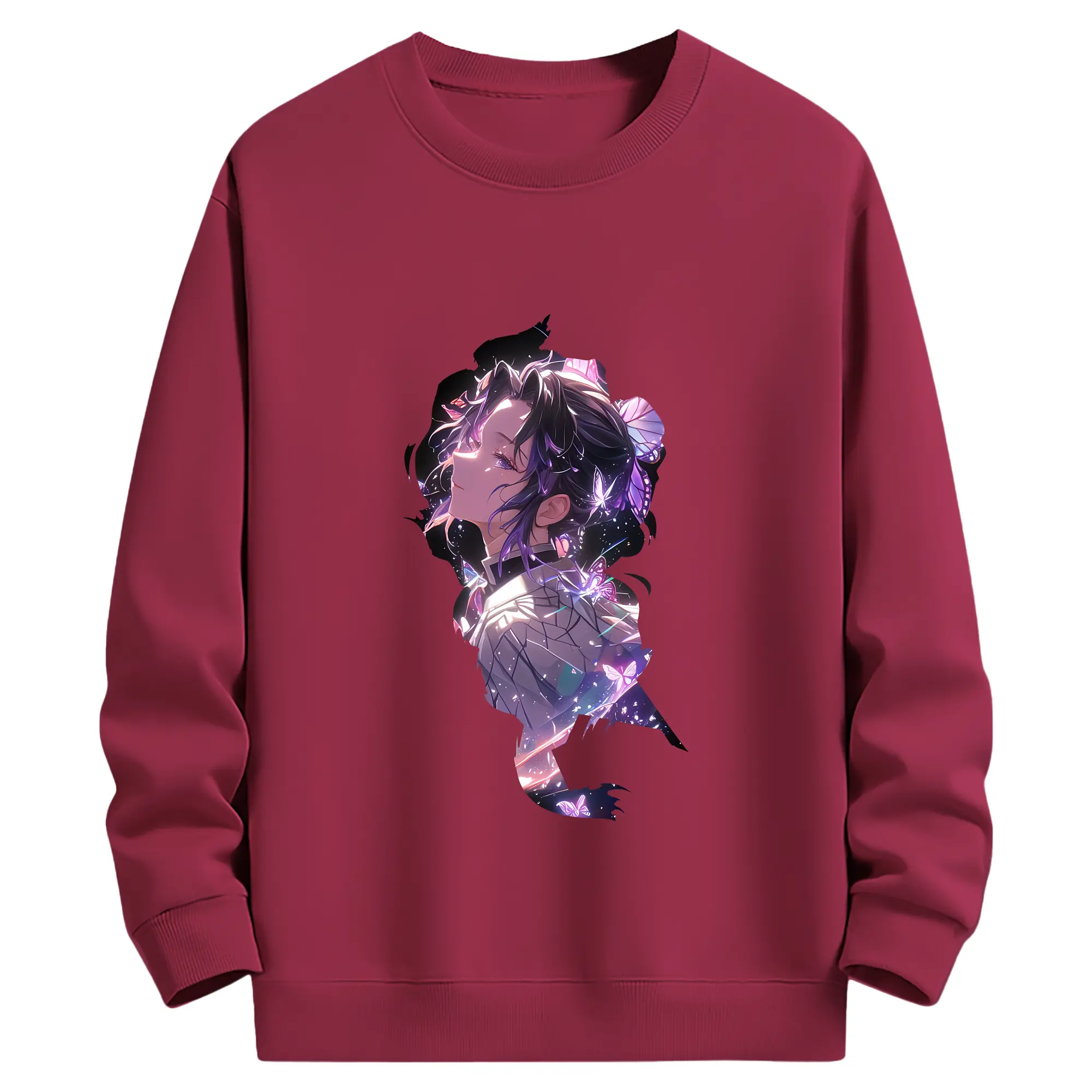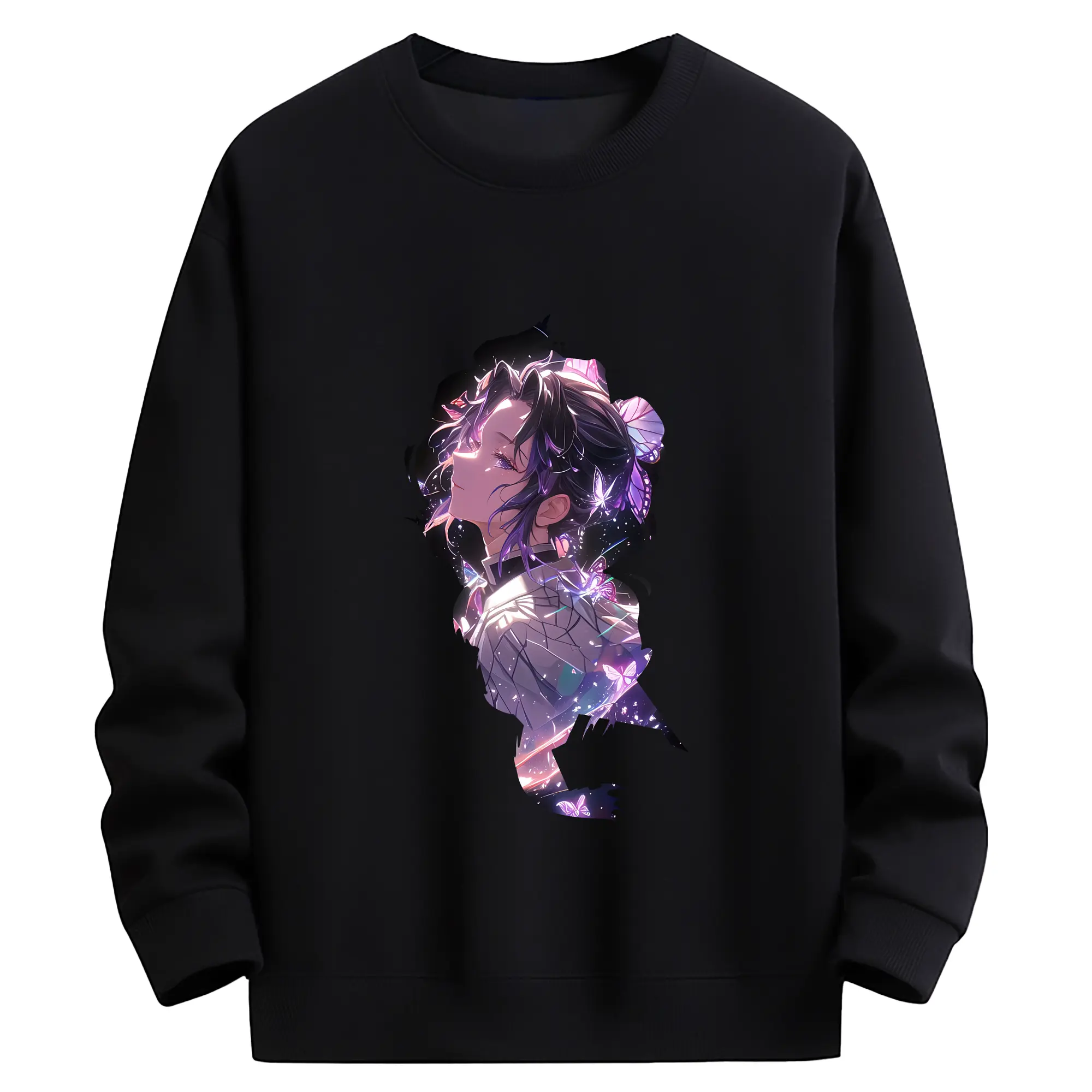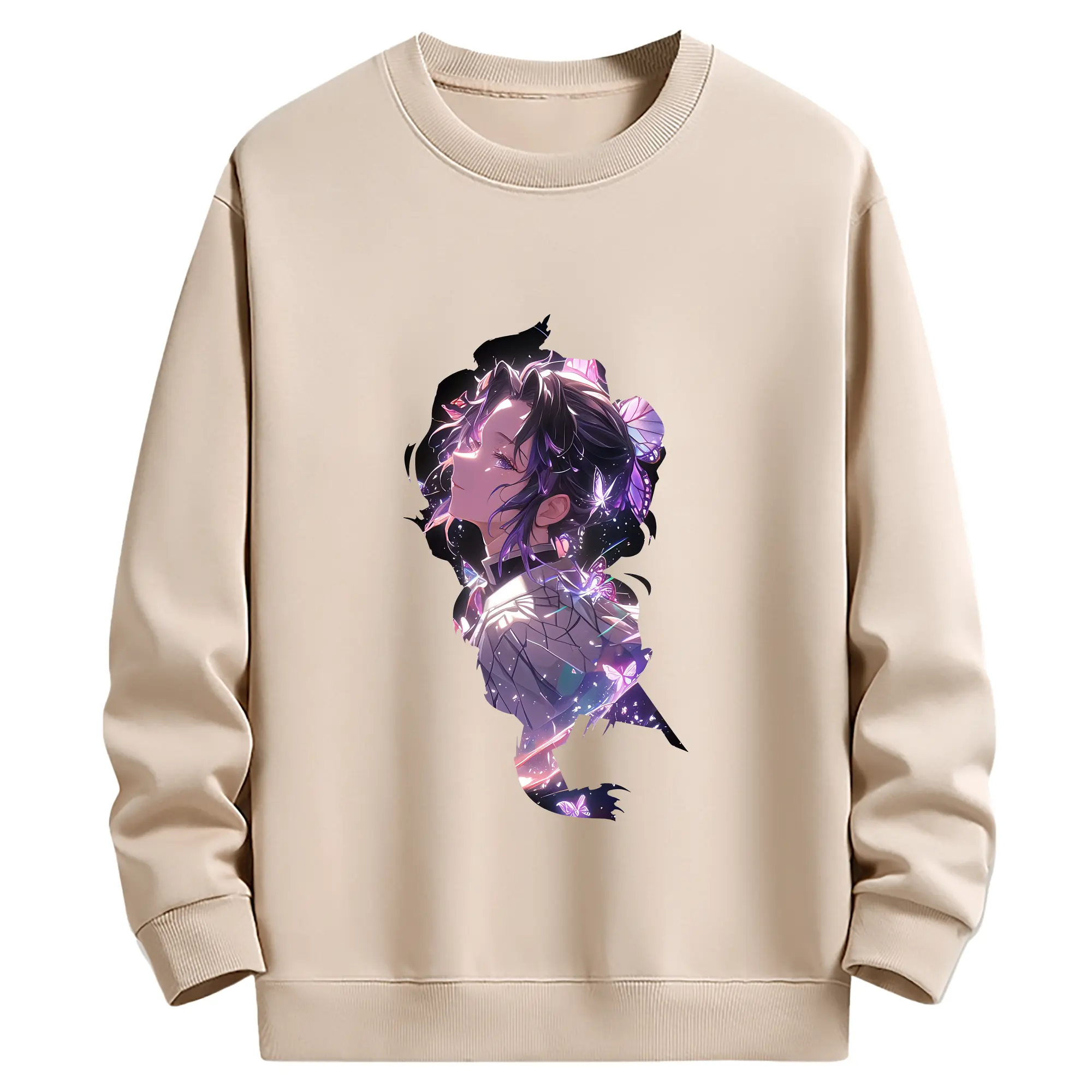 鬼滅の刃 グッズ,胡蝶 しのぶ - 薄手 クルーネック スウェット 裏毛260g · ポリエステル 春秋向け カジュアル 男女兼用 · トレーナー デイリー スポーツ 散歩に最適
