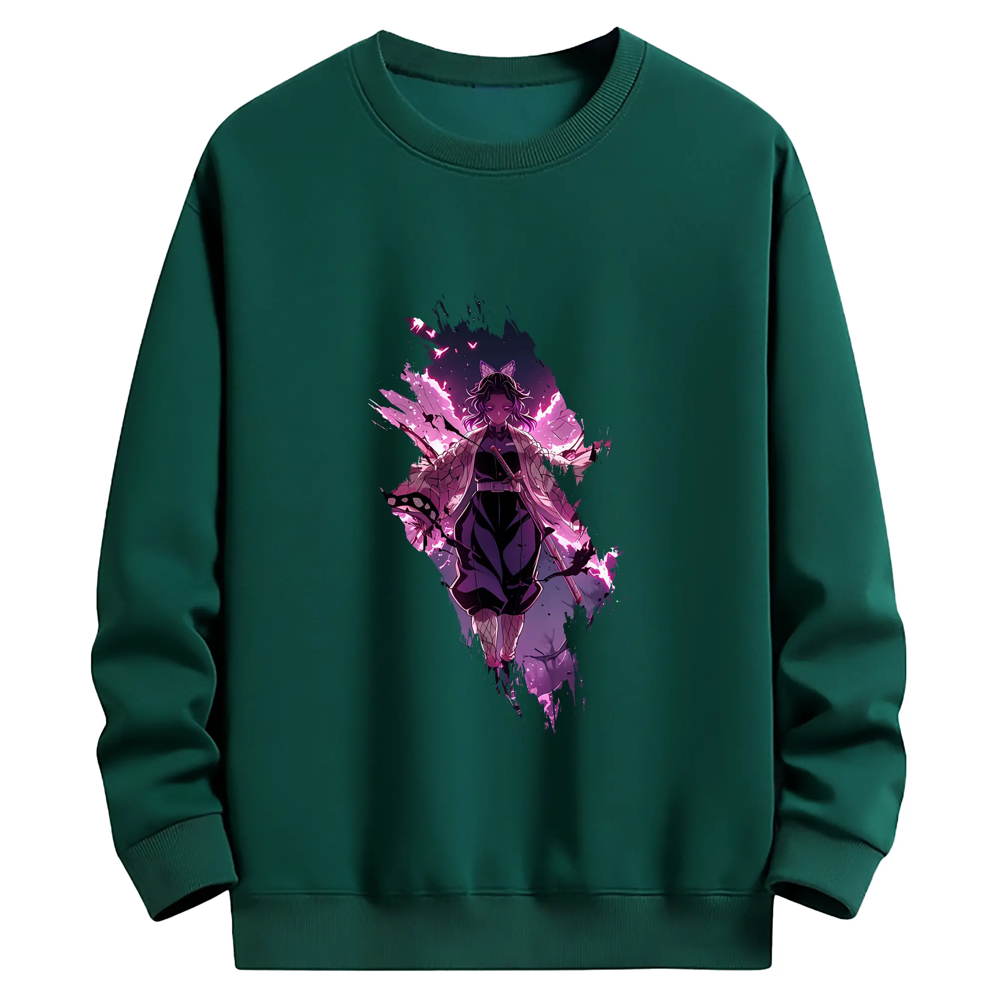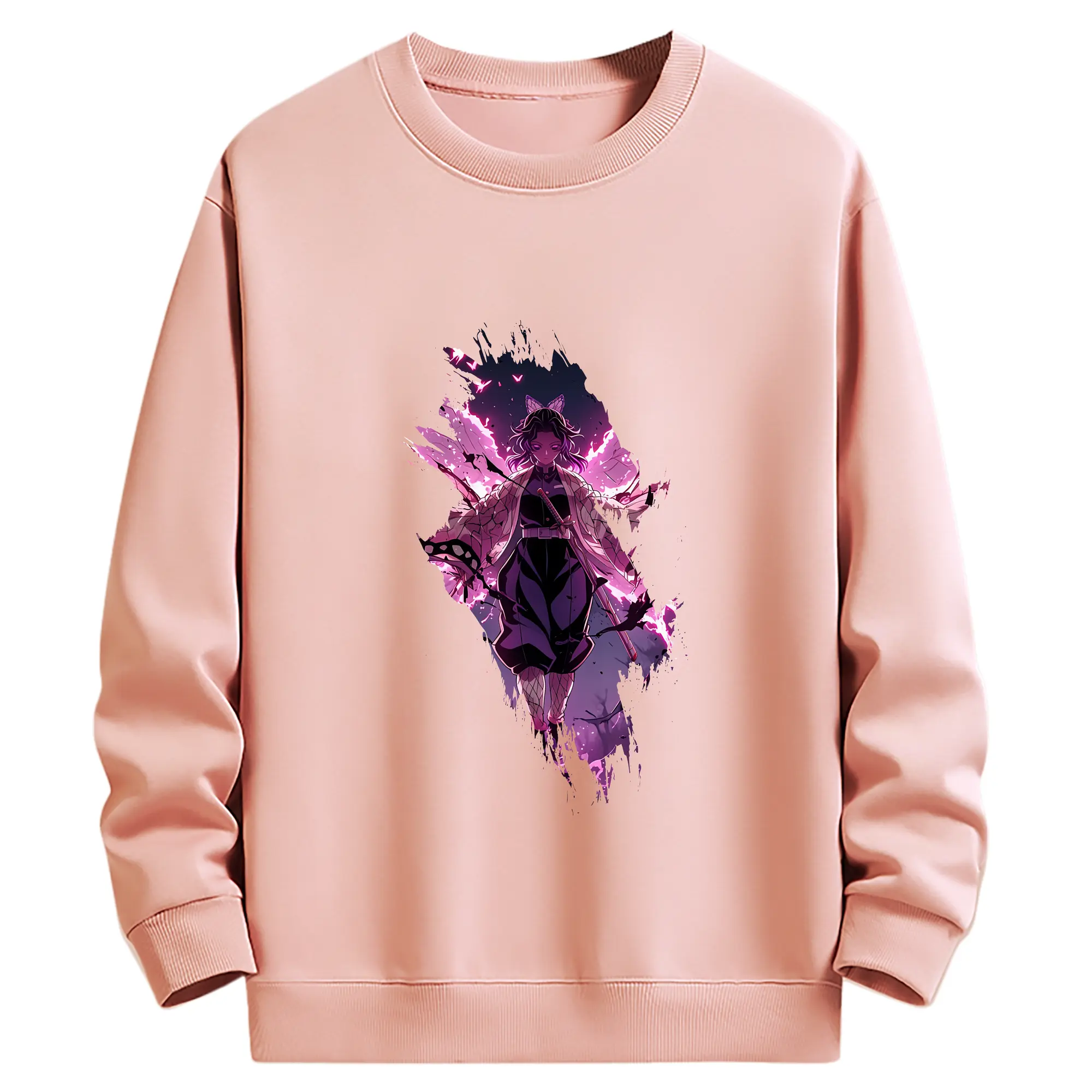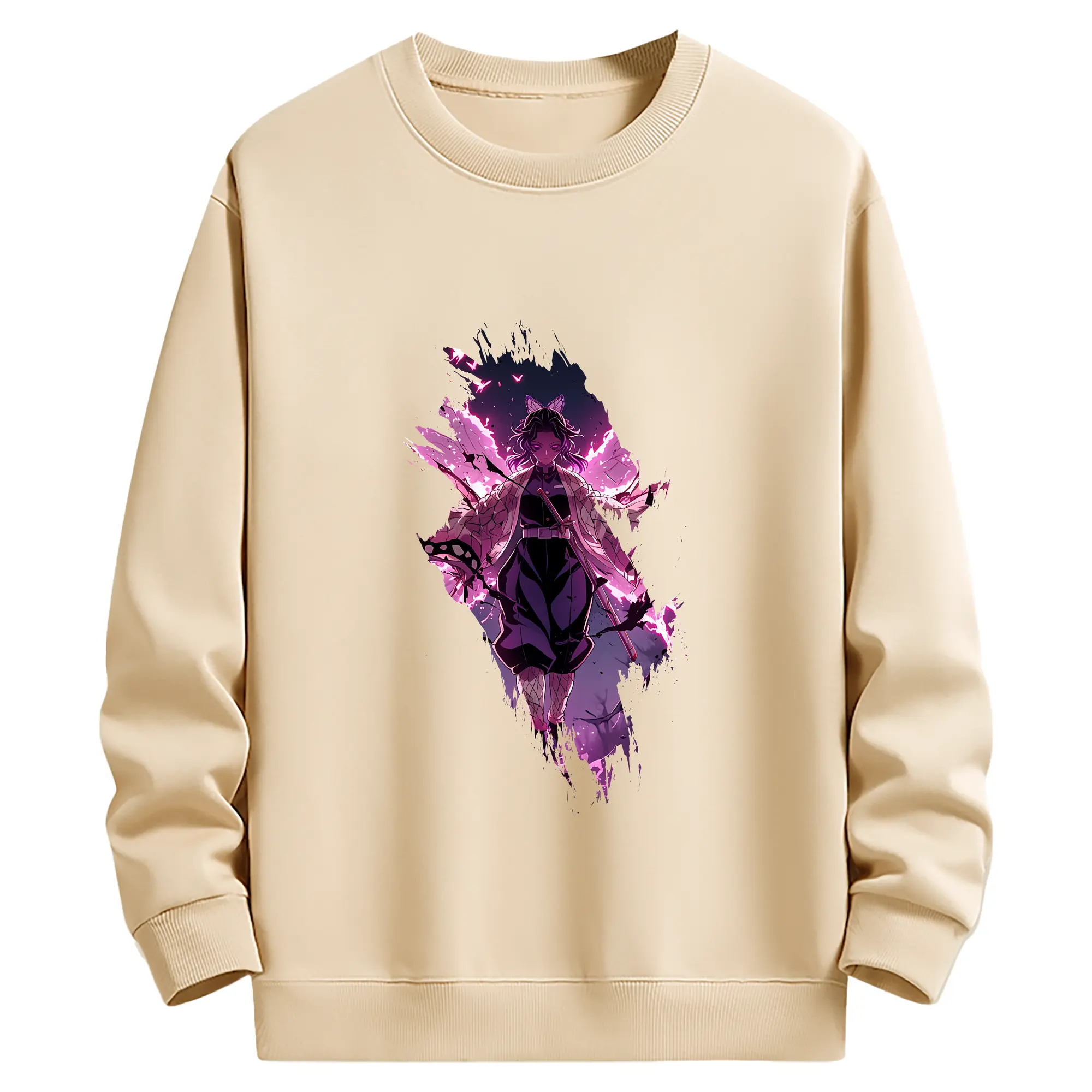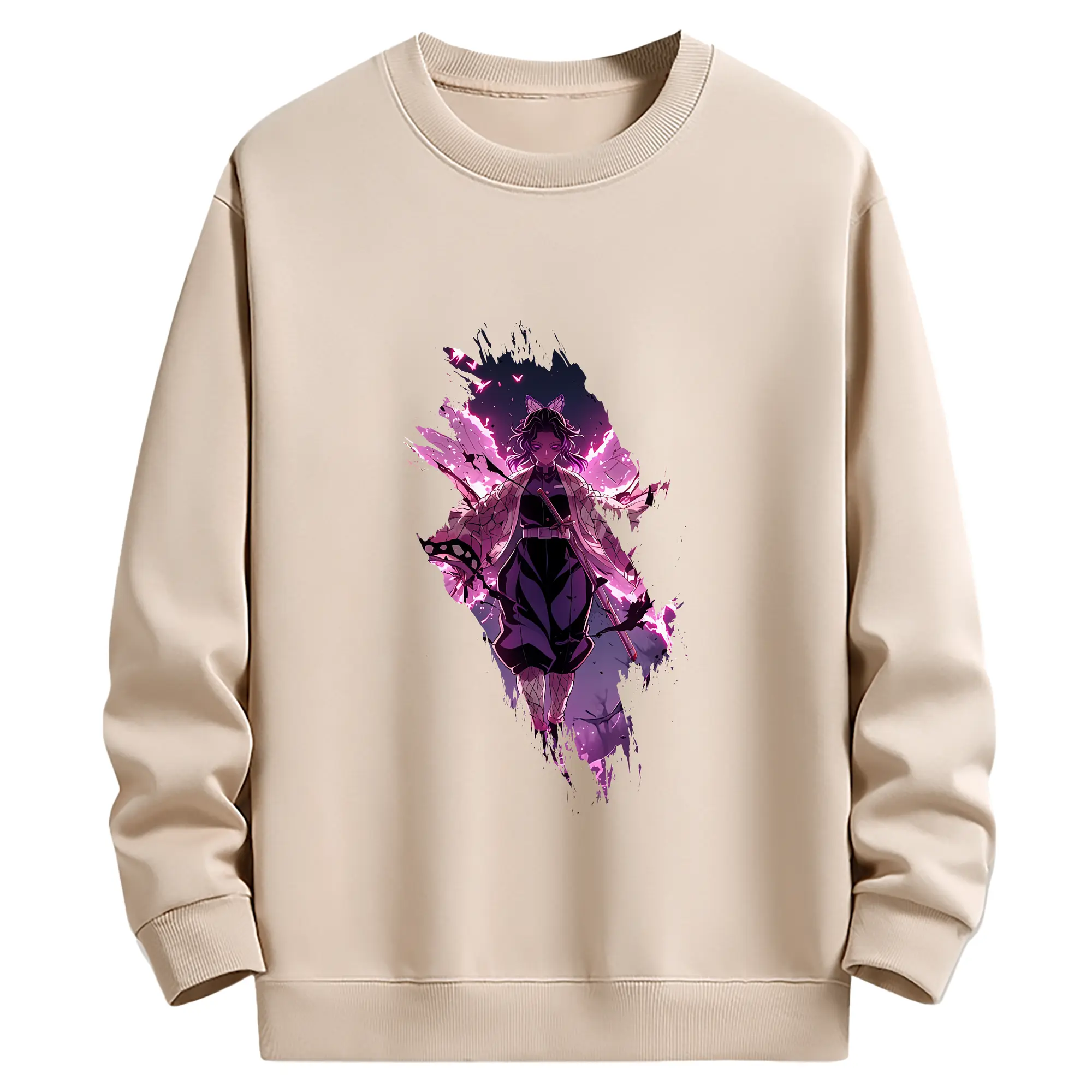 鬼滅の刃 グッズ,胡蝶 しのぶ - 薄手 クルーネック スウェット 裏毛260g · ポリエステル 春秋向け カジュアル 男女兼用 · トレーナー デイリー スポーツ 散歩に最適