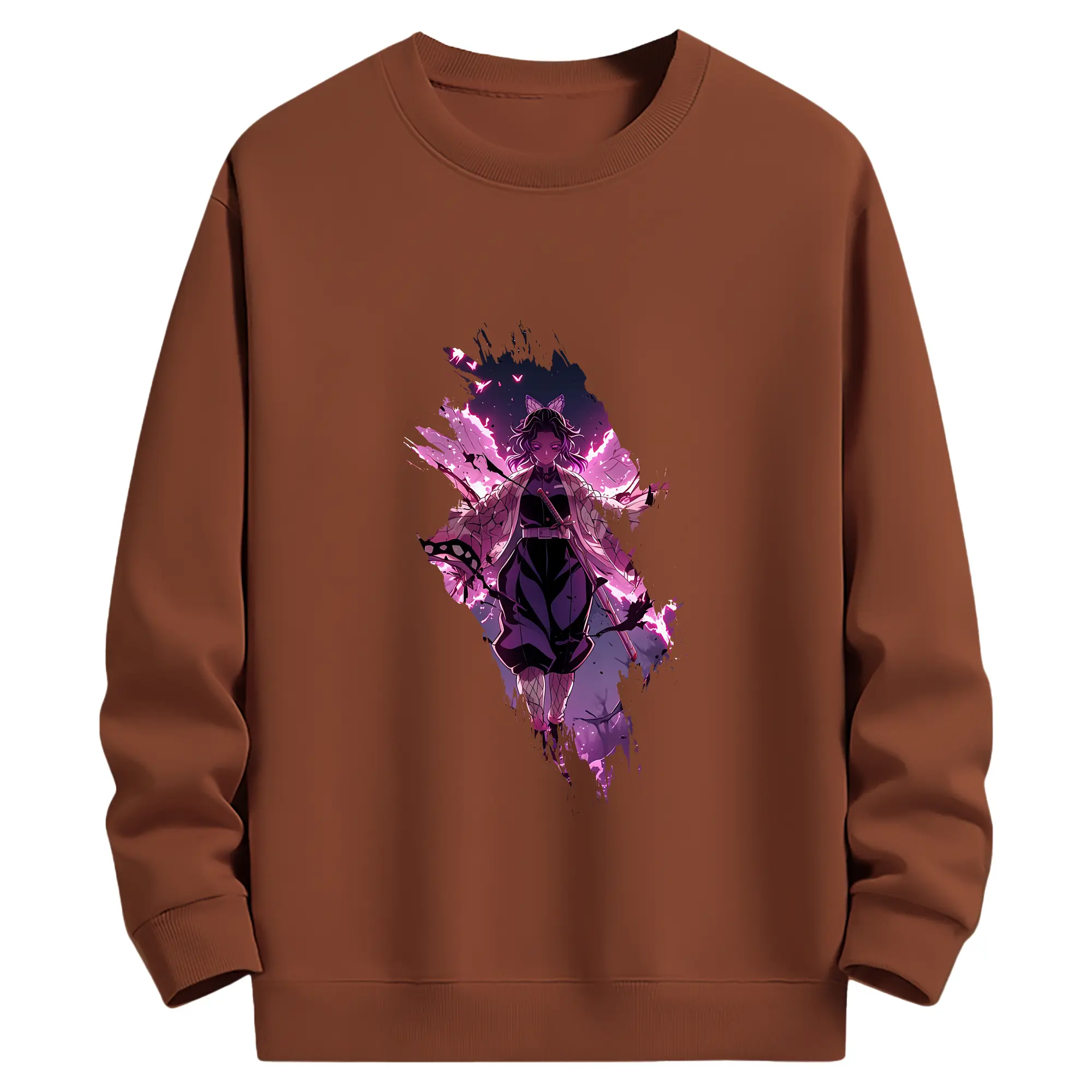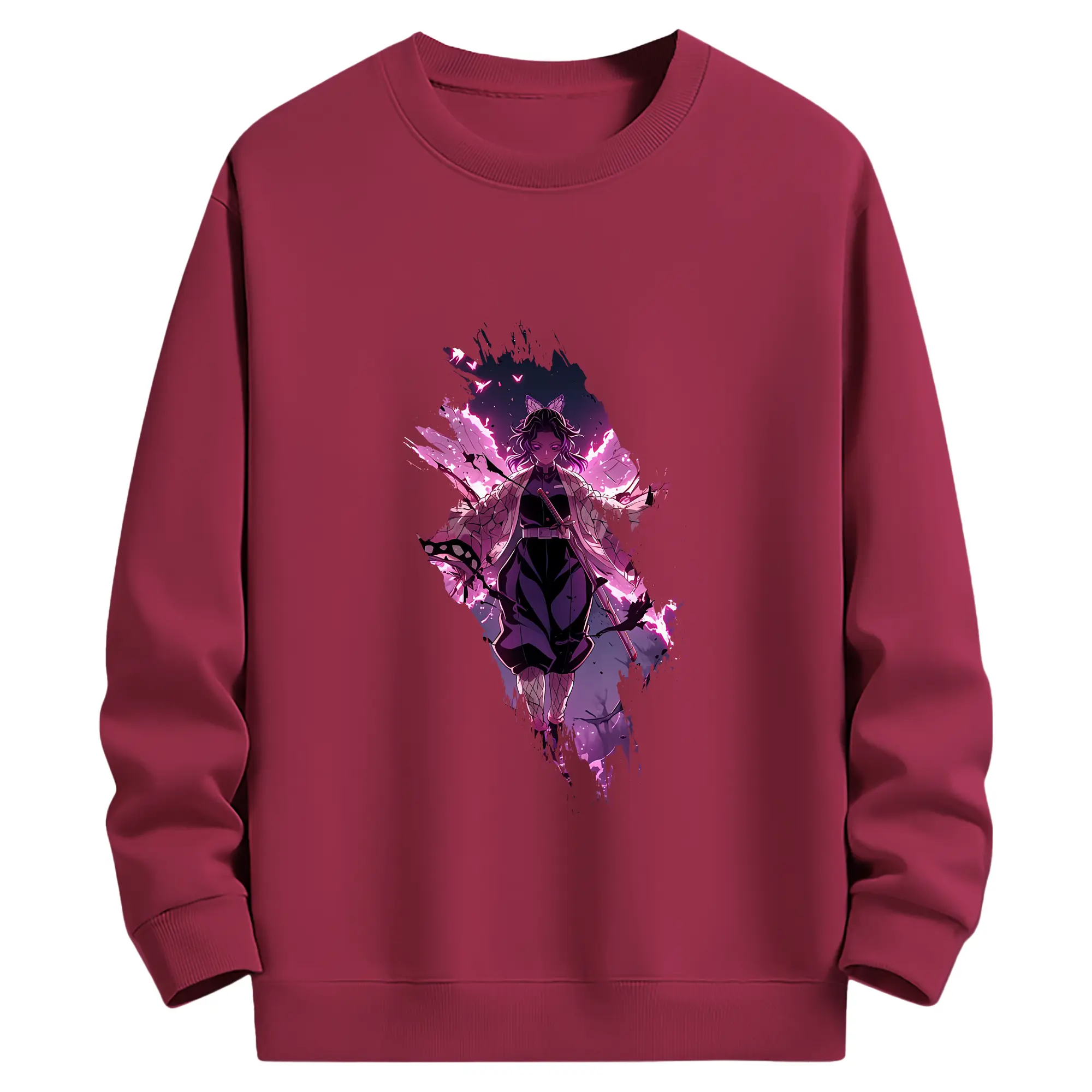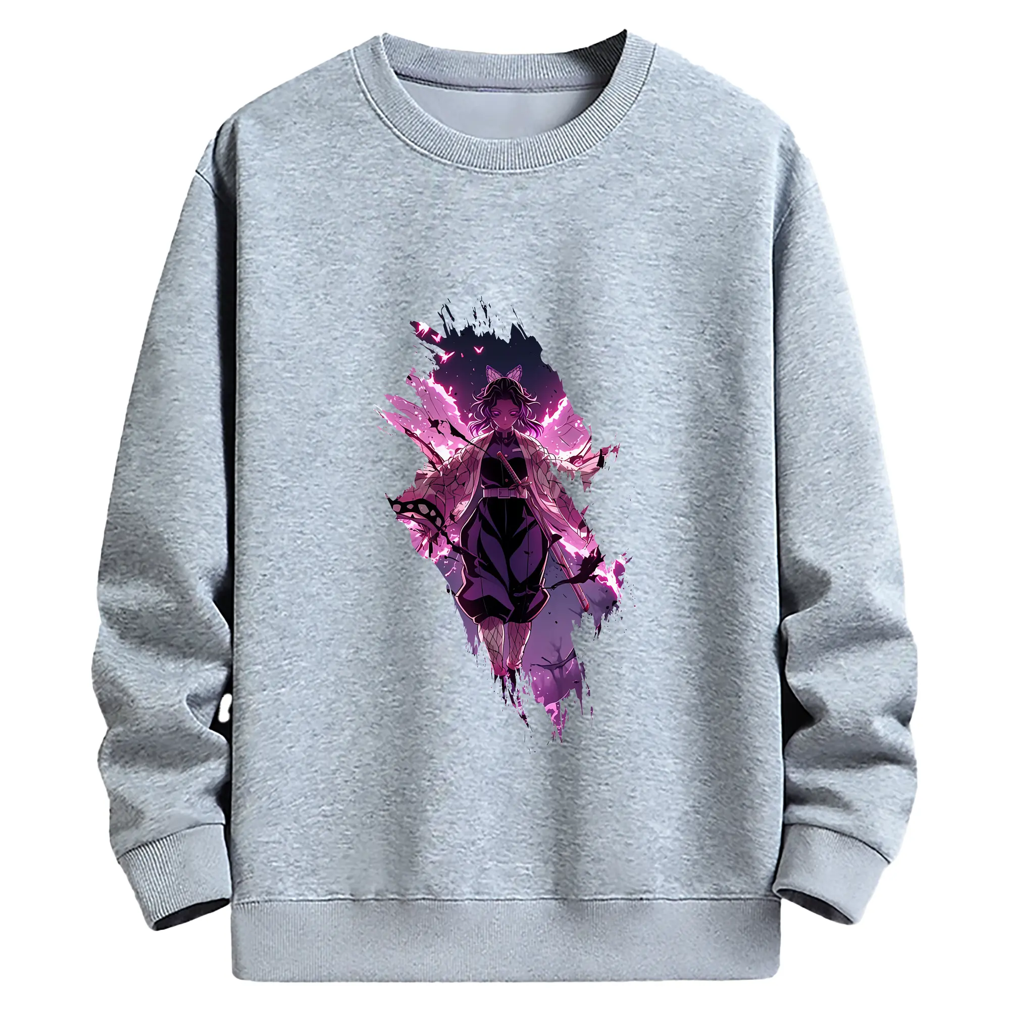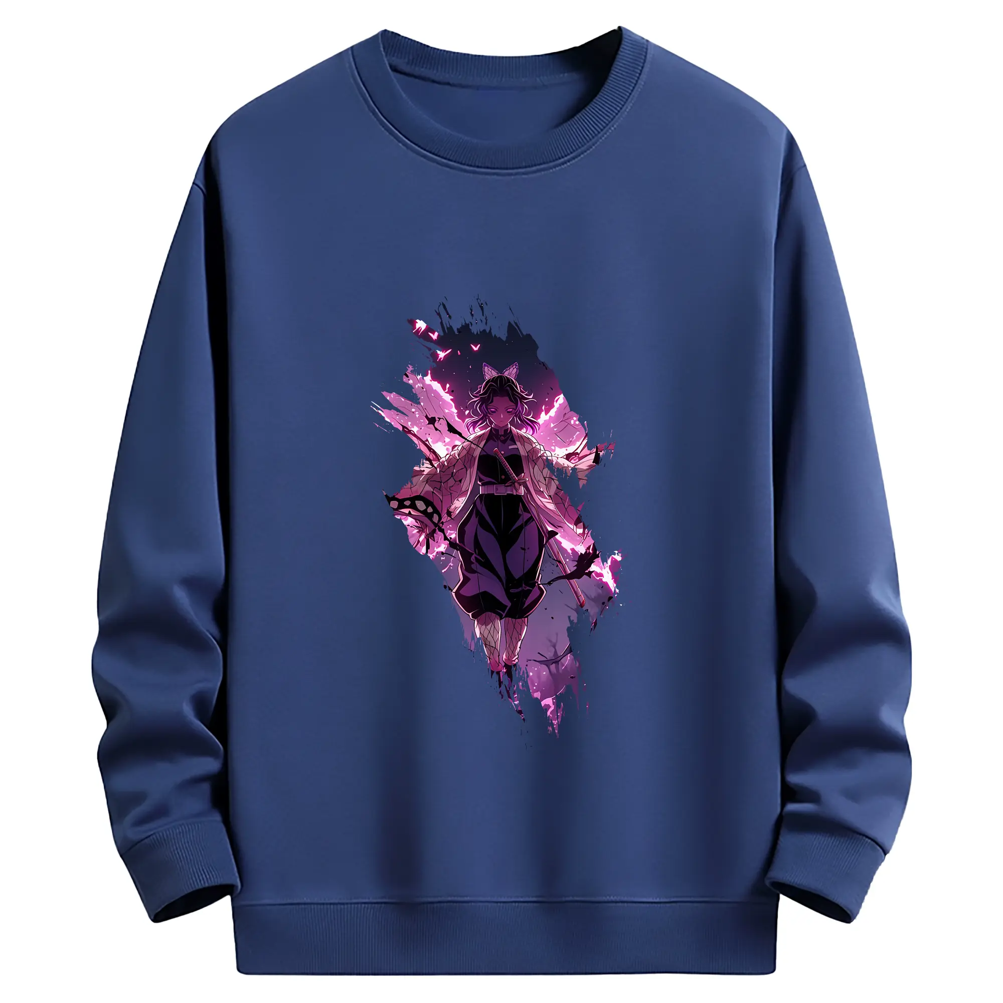 鬼滅の刃 グッズ,胡蝶 しのぶ - 薄手 クルーネック スウェット 裏毛260g · ポリエステル 春秋向け カジュアル 男女兼用 · トレーナー デイリー スポーツ 散歩に最適