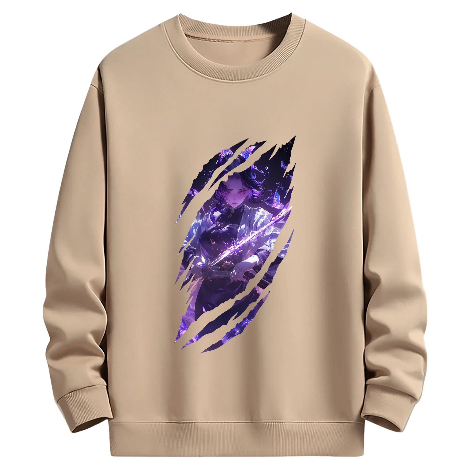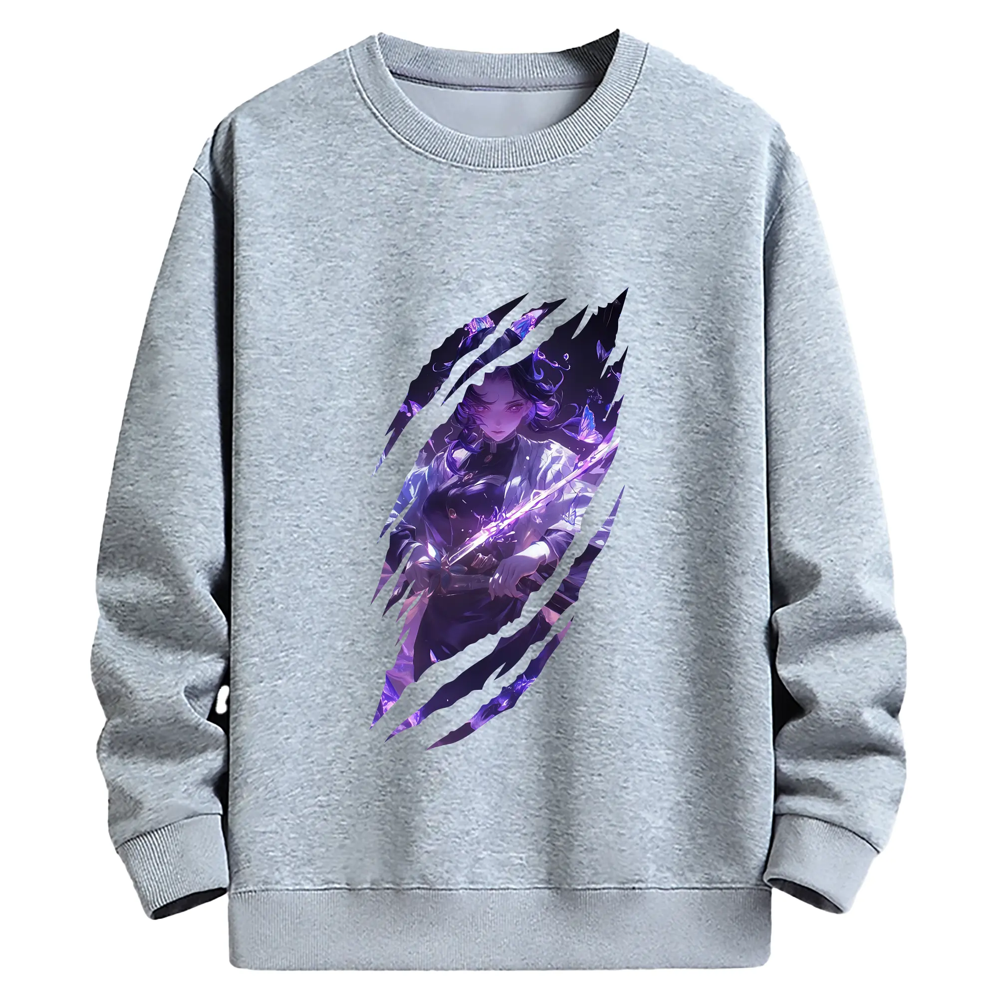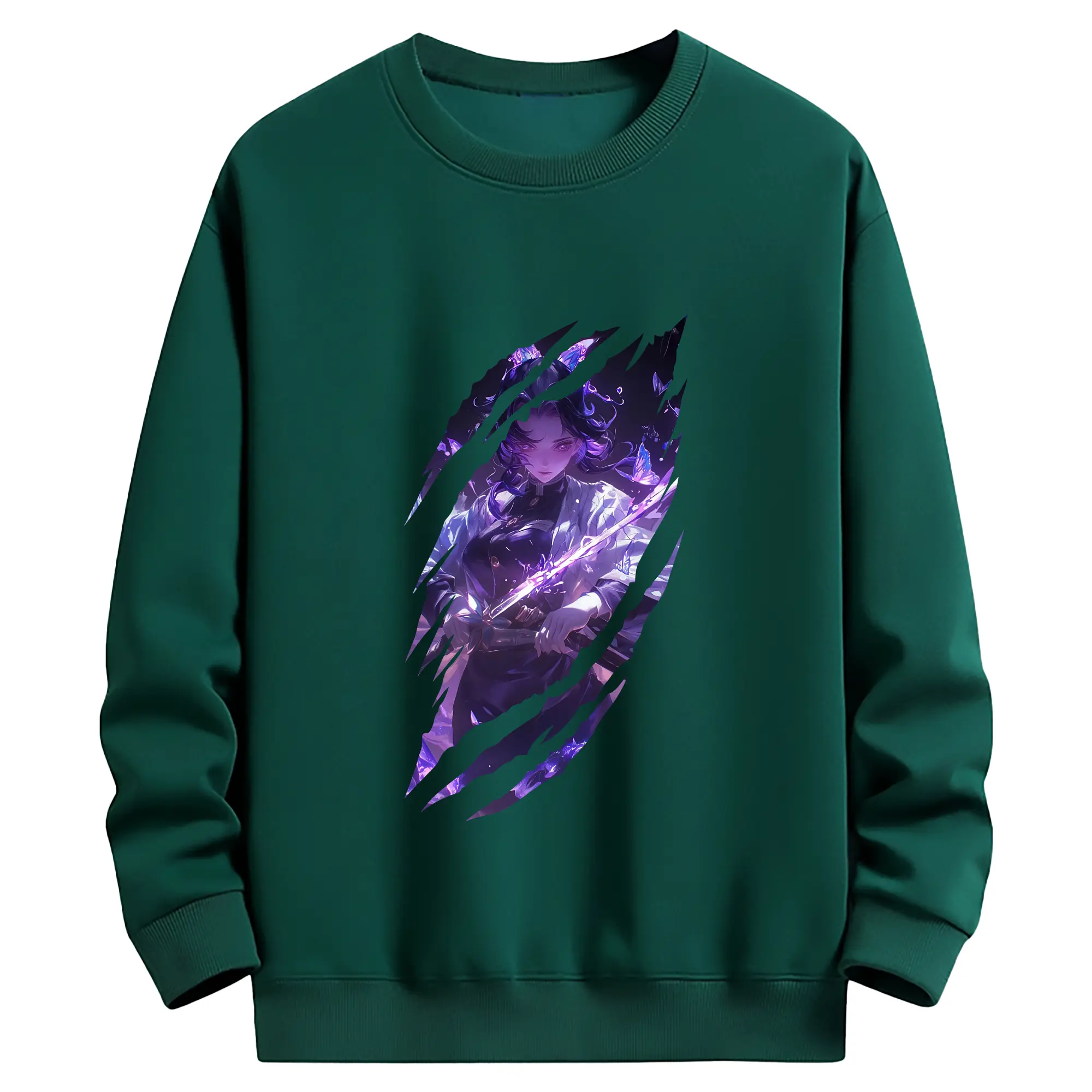 鬼滅の刃 グッズ,胡蝶 しのぶ - 薄手 クルーネック スウェット 裏毛260g · ポリエステル 春秋向け カジュアル 男女兼用 · トレーナー デイリー スポーツ 散歩に最適