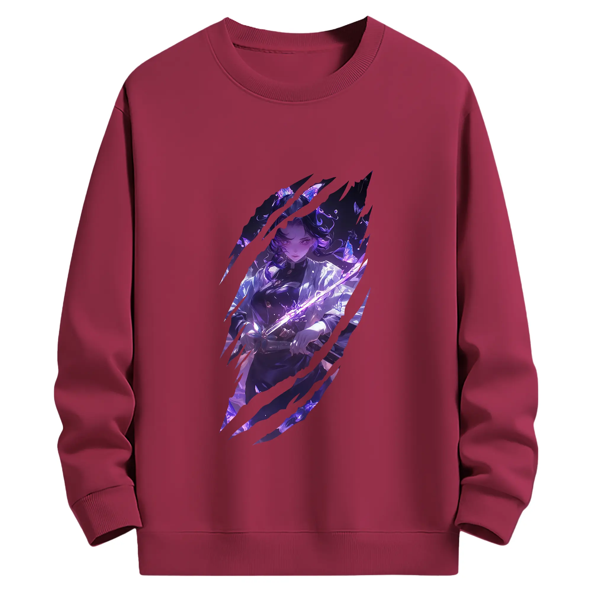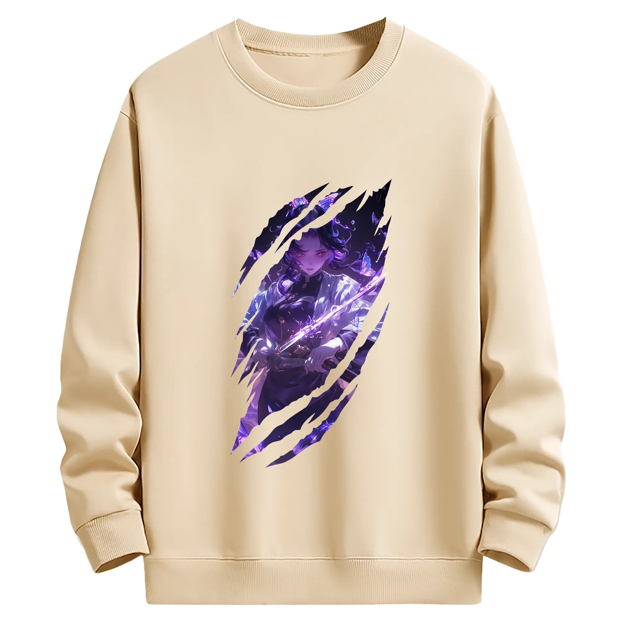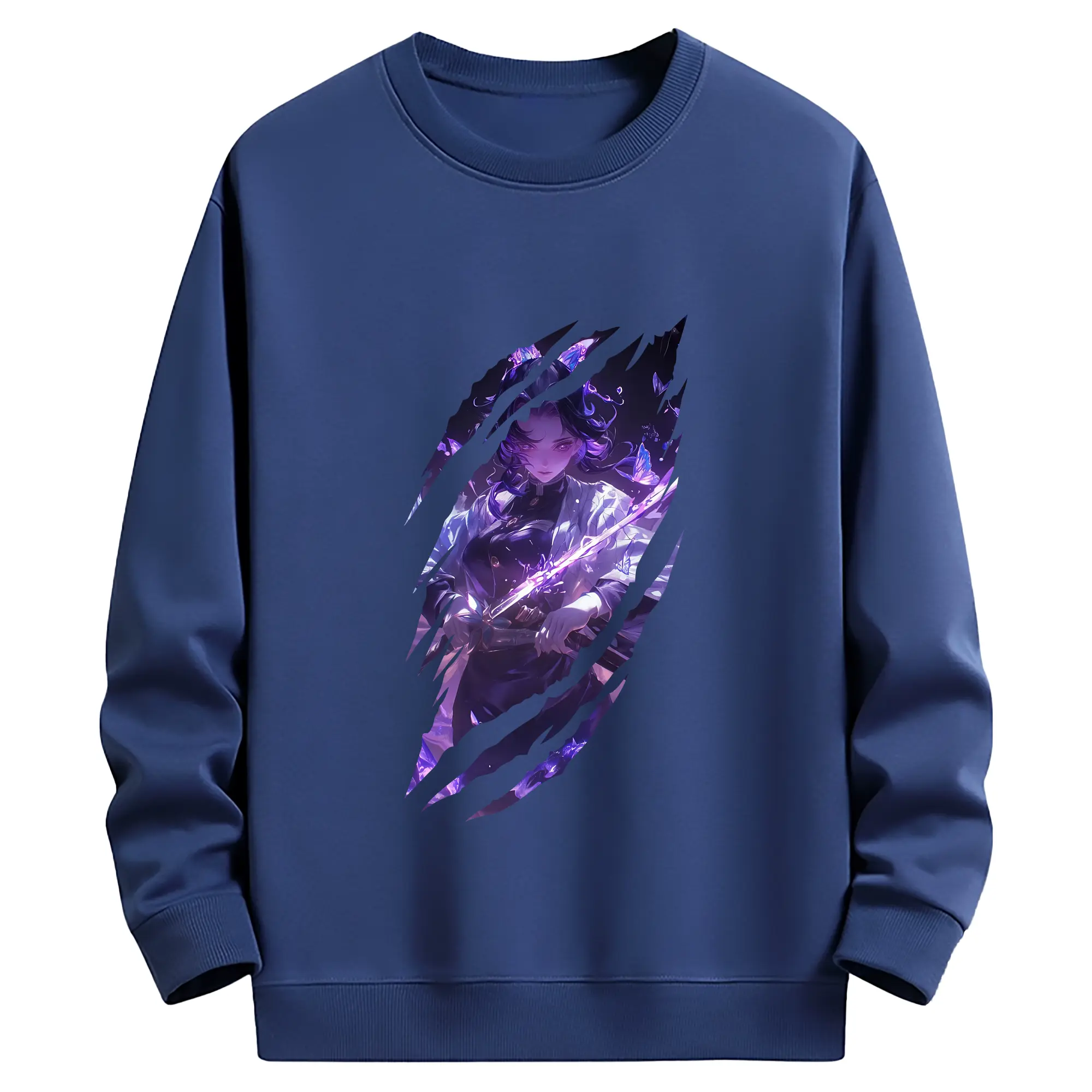 鬼滅の刃 グッズ,胡蝶 しのぶ - 薄手 クルーネック スウェット 裏毛260g · ポリエステル 春秋向け カジュアル 男女兼用 · トレーナー デイリー スポーツ 散歩に最適
