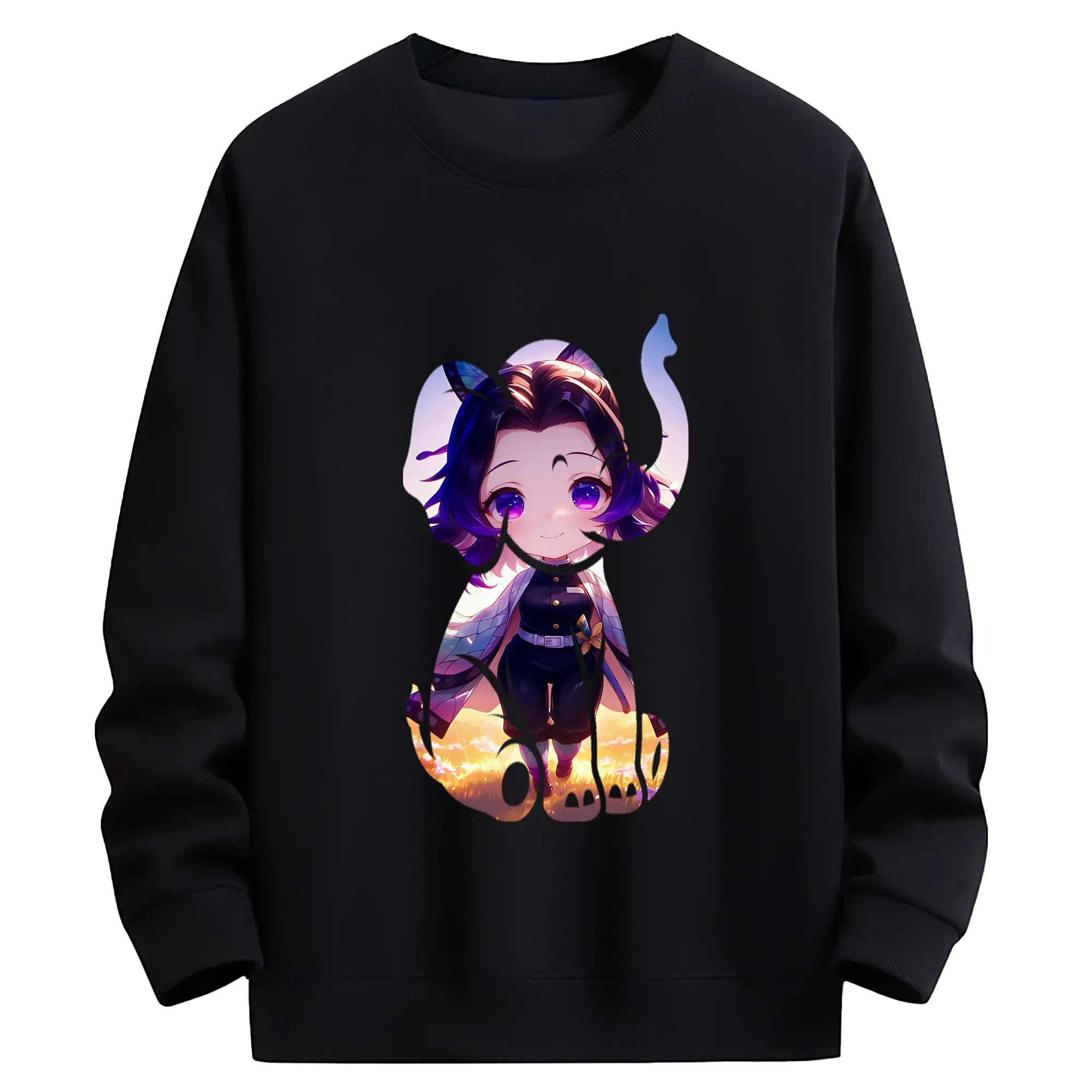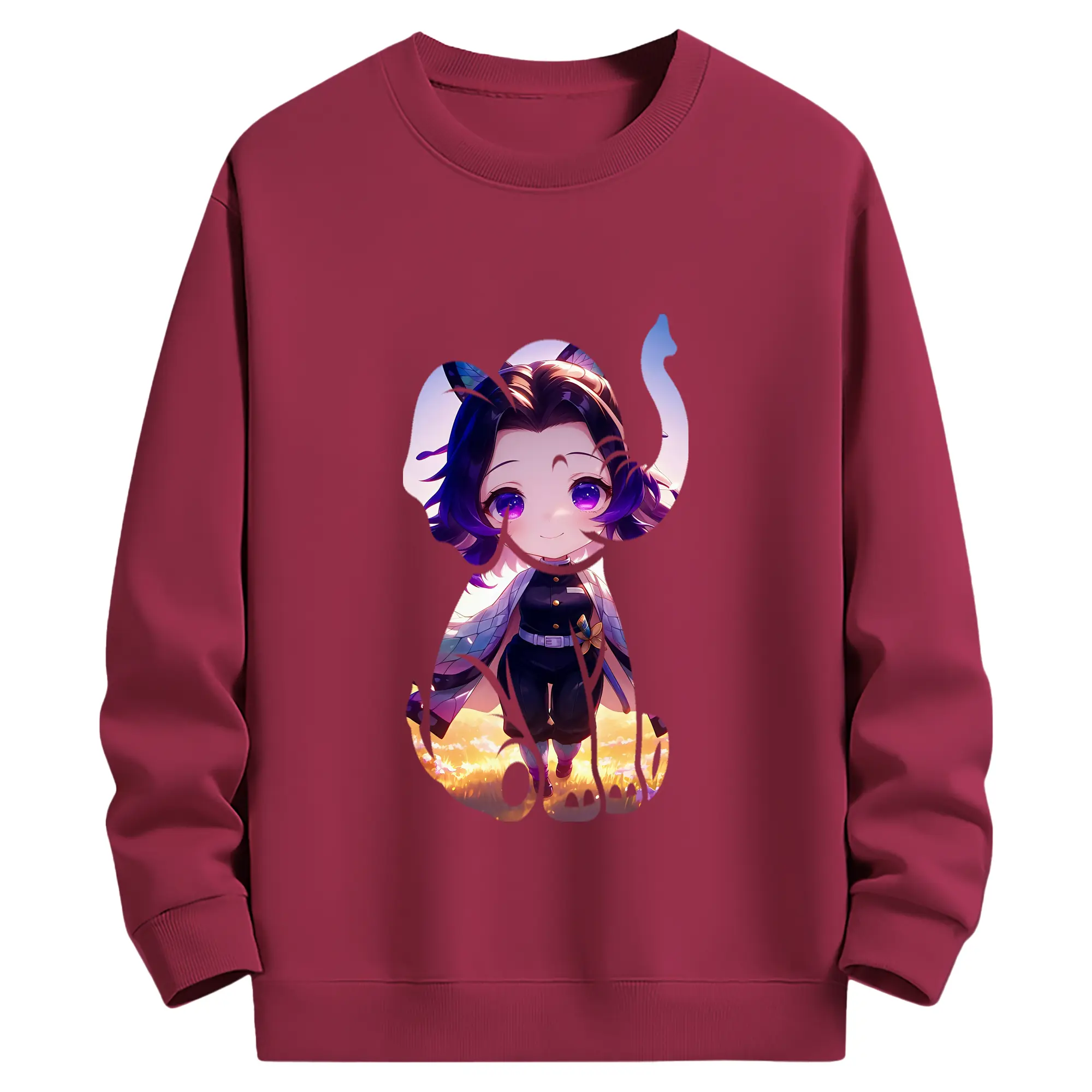 鬼滅の刃 グッズ,胡蝶 しのぶ - 薄手 クルーネック スウェット 裏毛260g · ポリエステル 春秋向け カジュアル 男女兼用 · トレーナー デイリー スポーツ 散歩に最適