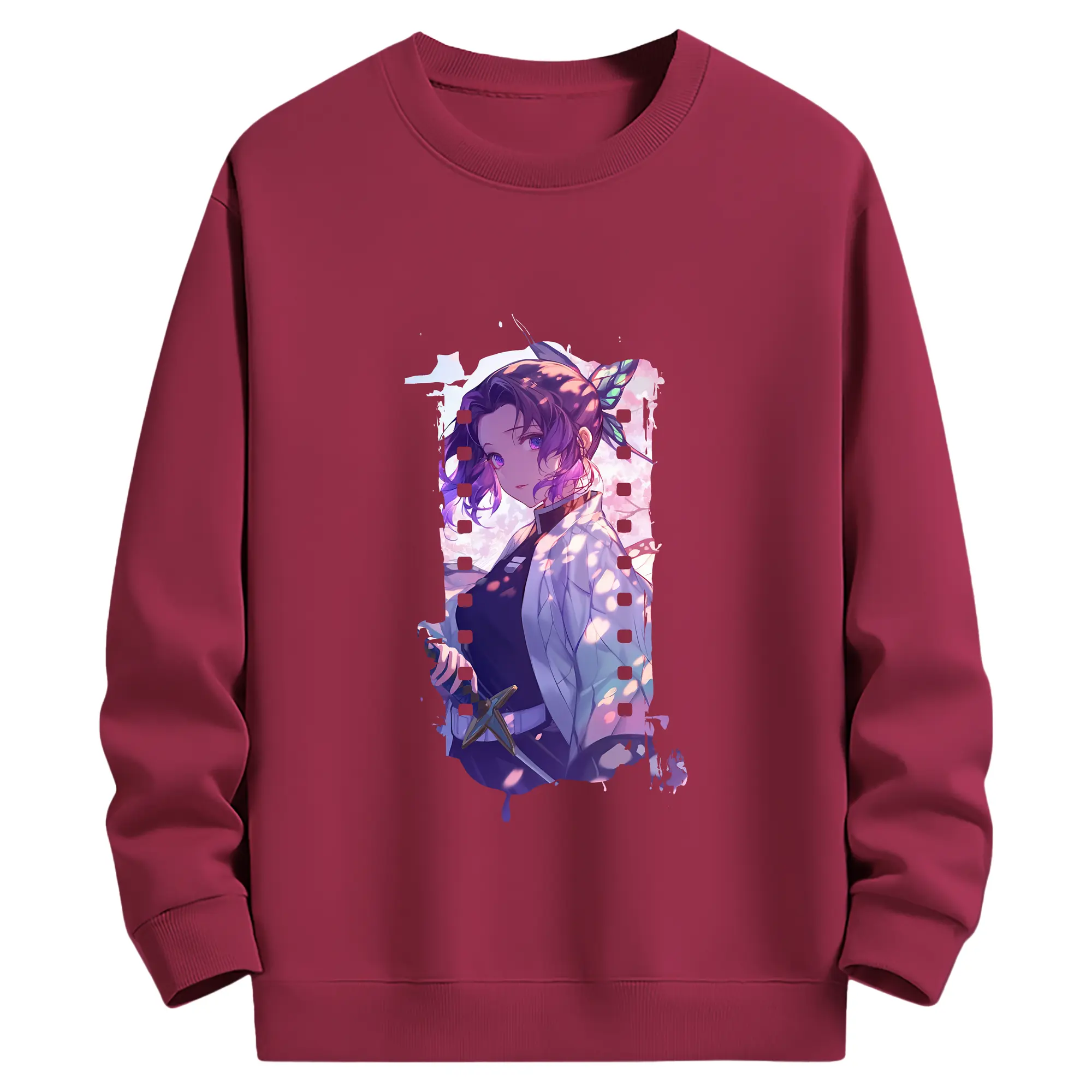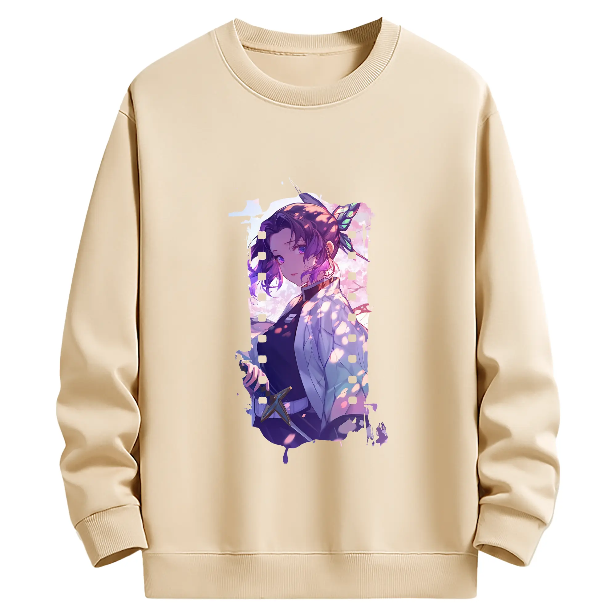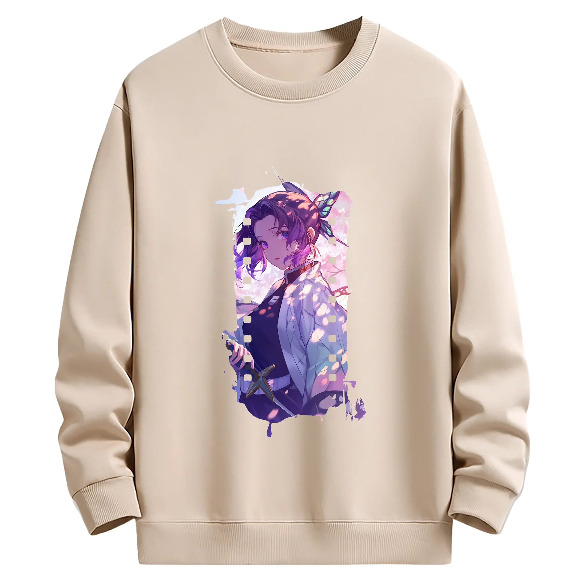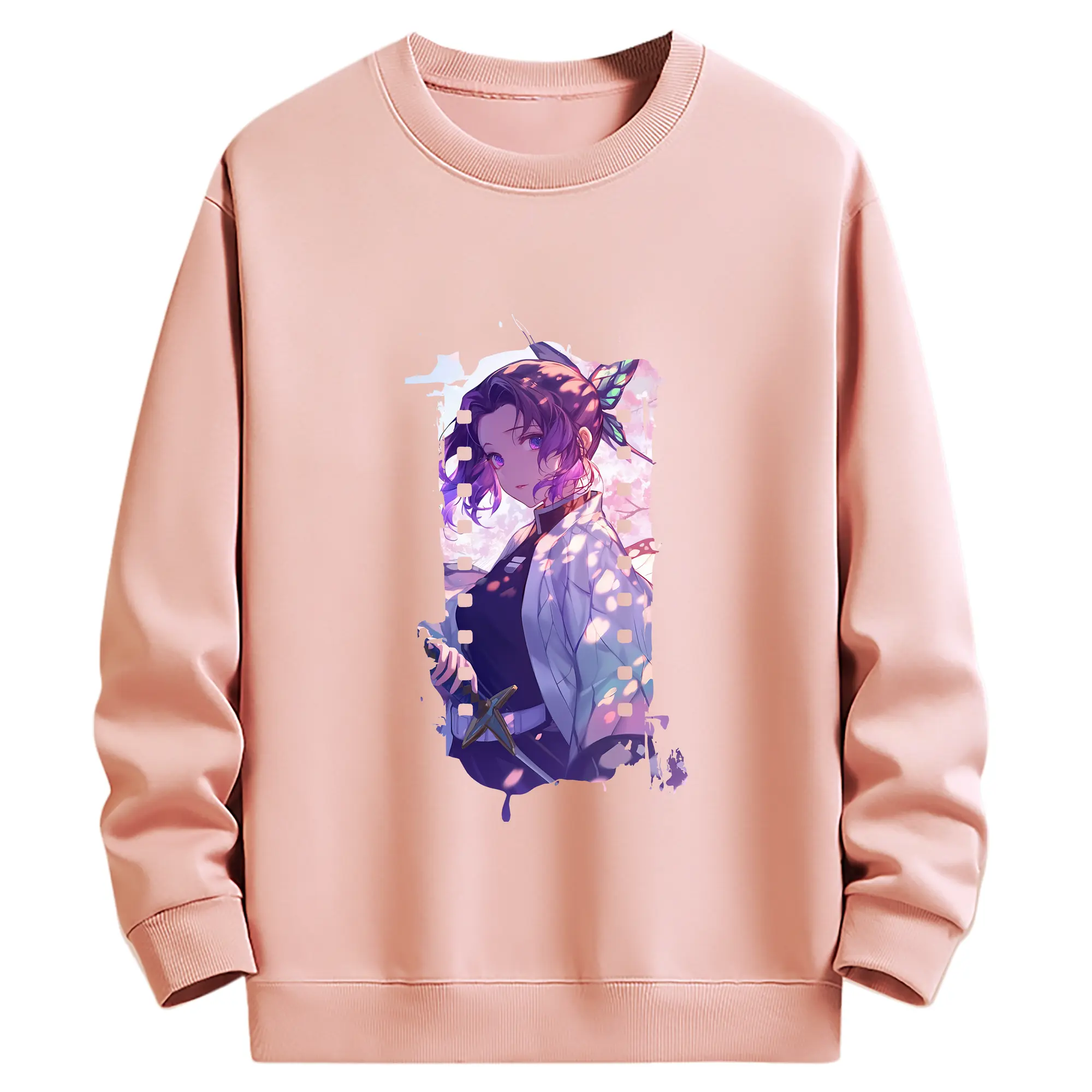 鬼滅の刃 グッズ,胡蝶 しのぶ - 薄手 クルーネック スウェット 裏毛260g · ポリエステル 春秋向け カジュアル 男女兼用 · トレーナー デイリー スポーツ 散歩に最適