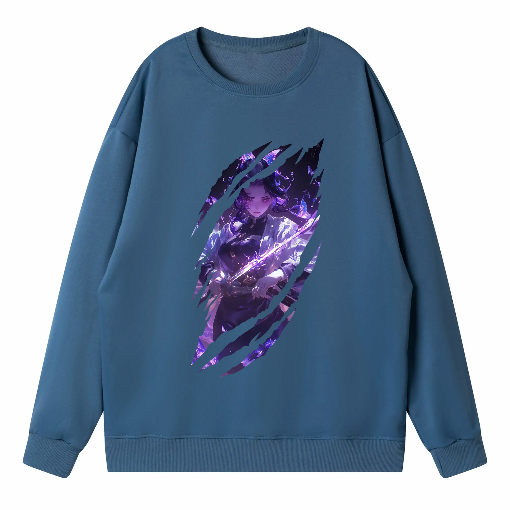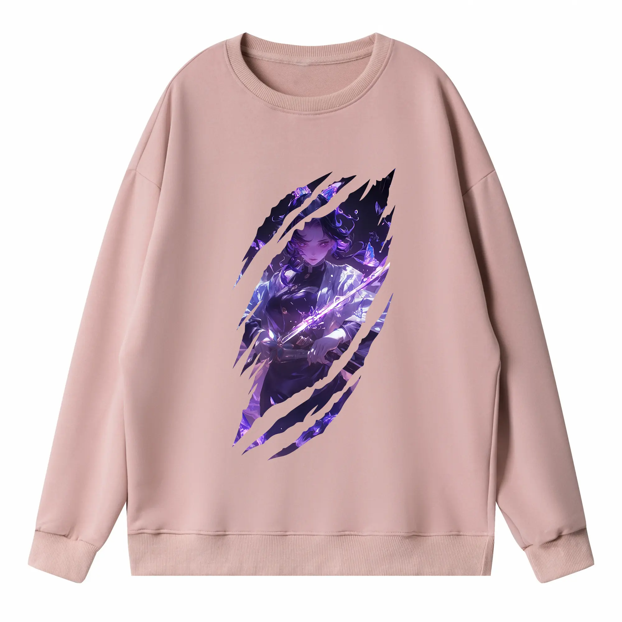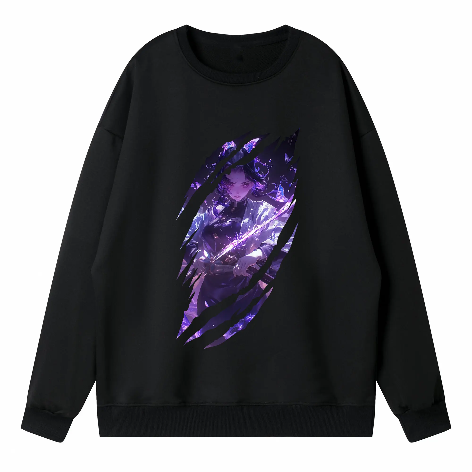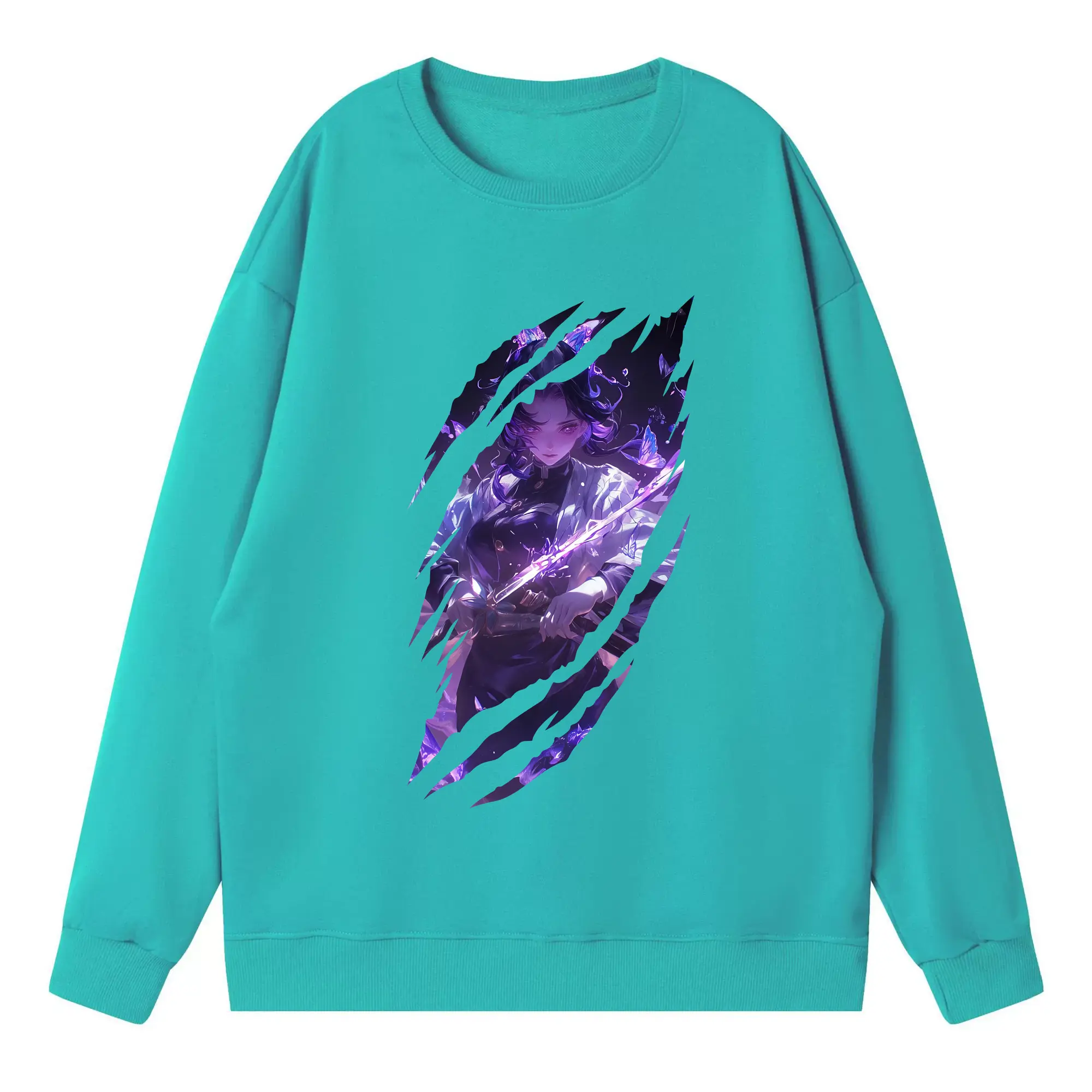 鬼滅の刃 グッズ,胡蝶 しのぶ - 高品質 クルーネック スウェット ・ コットン59% ポリエステル41% ・ ユニセックス 長袖 トレーナー ・ カジュアル デイリー スポーツ 散歩用
