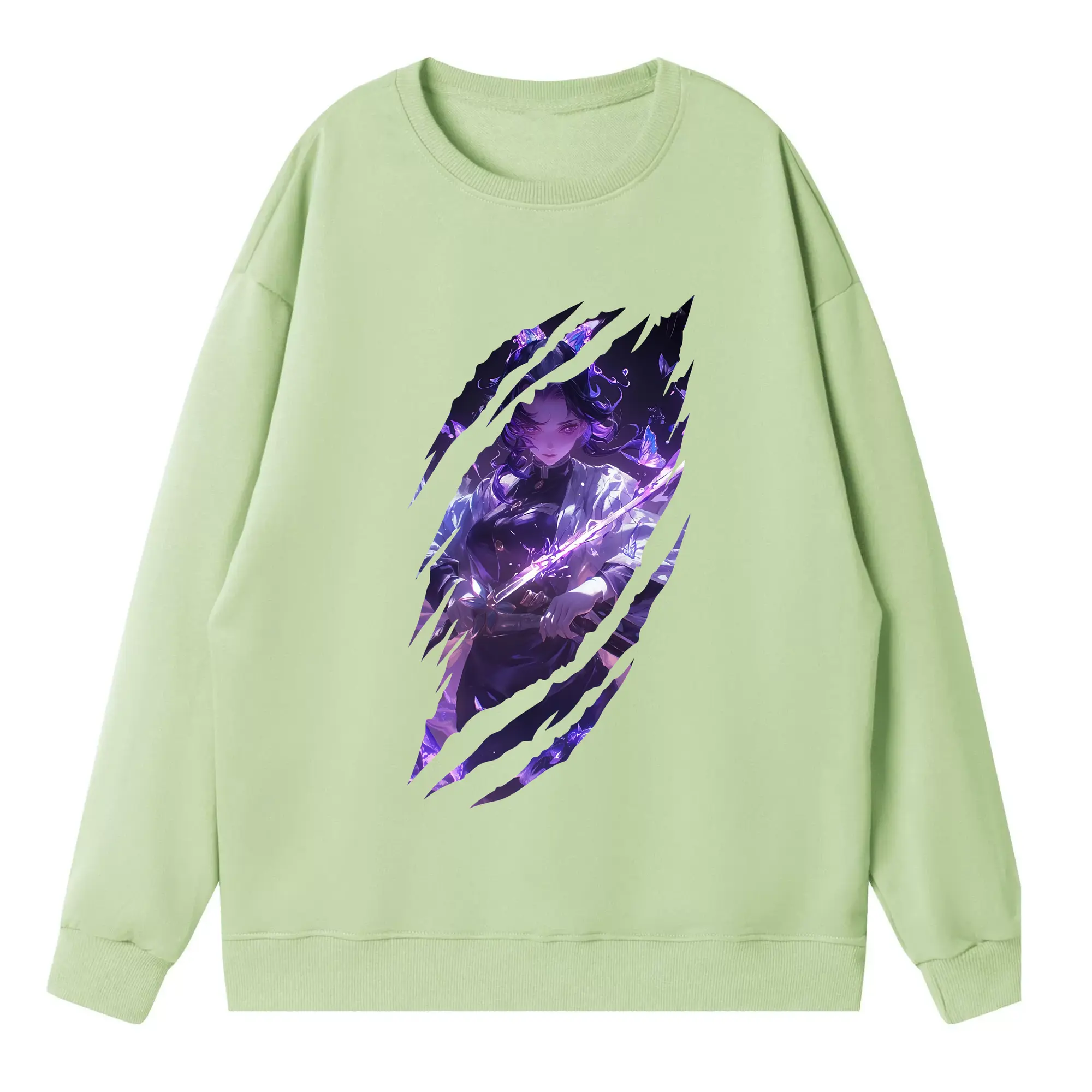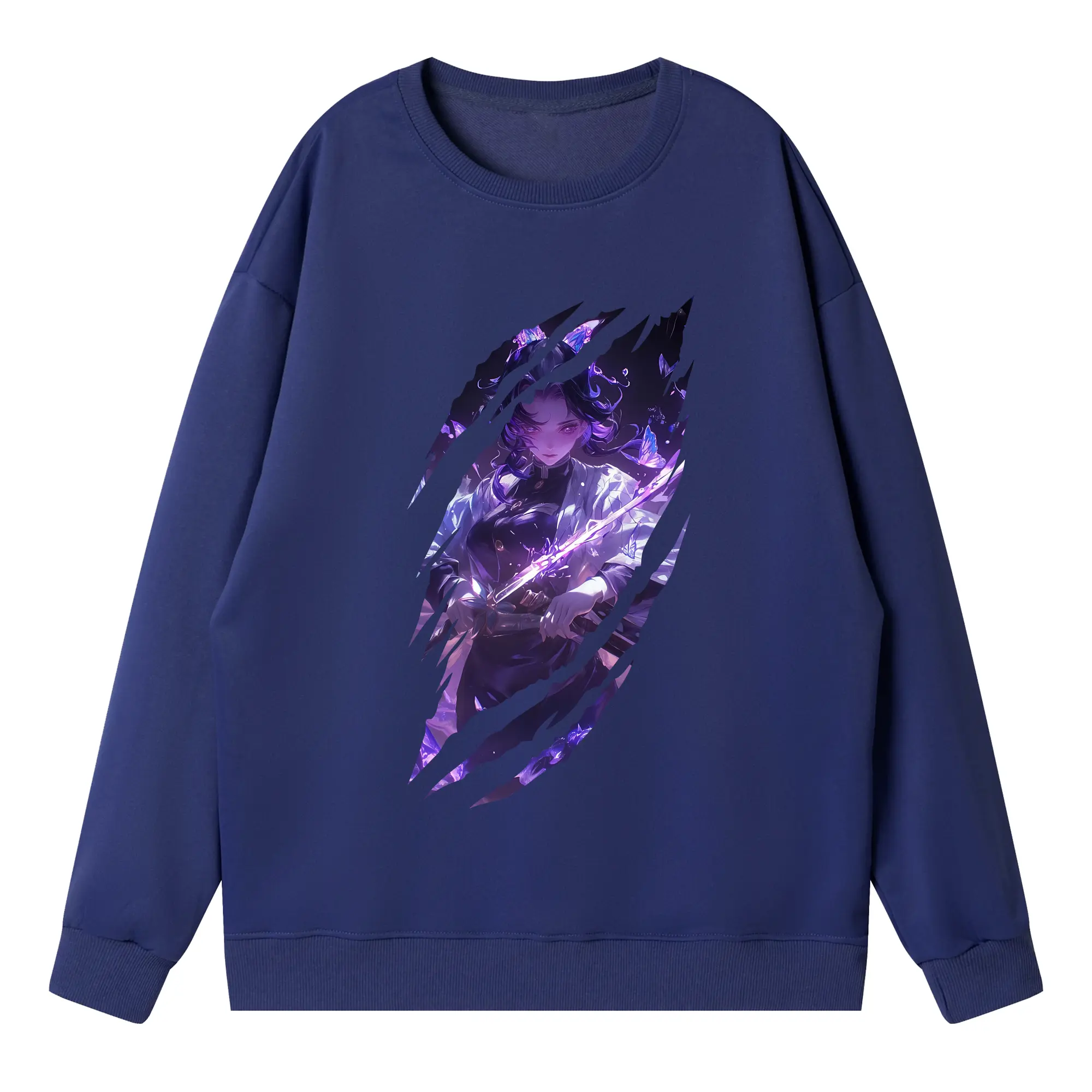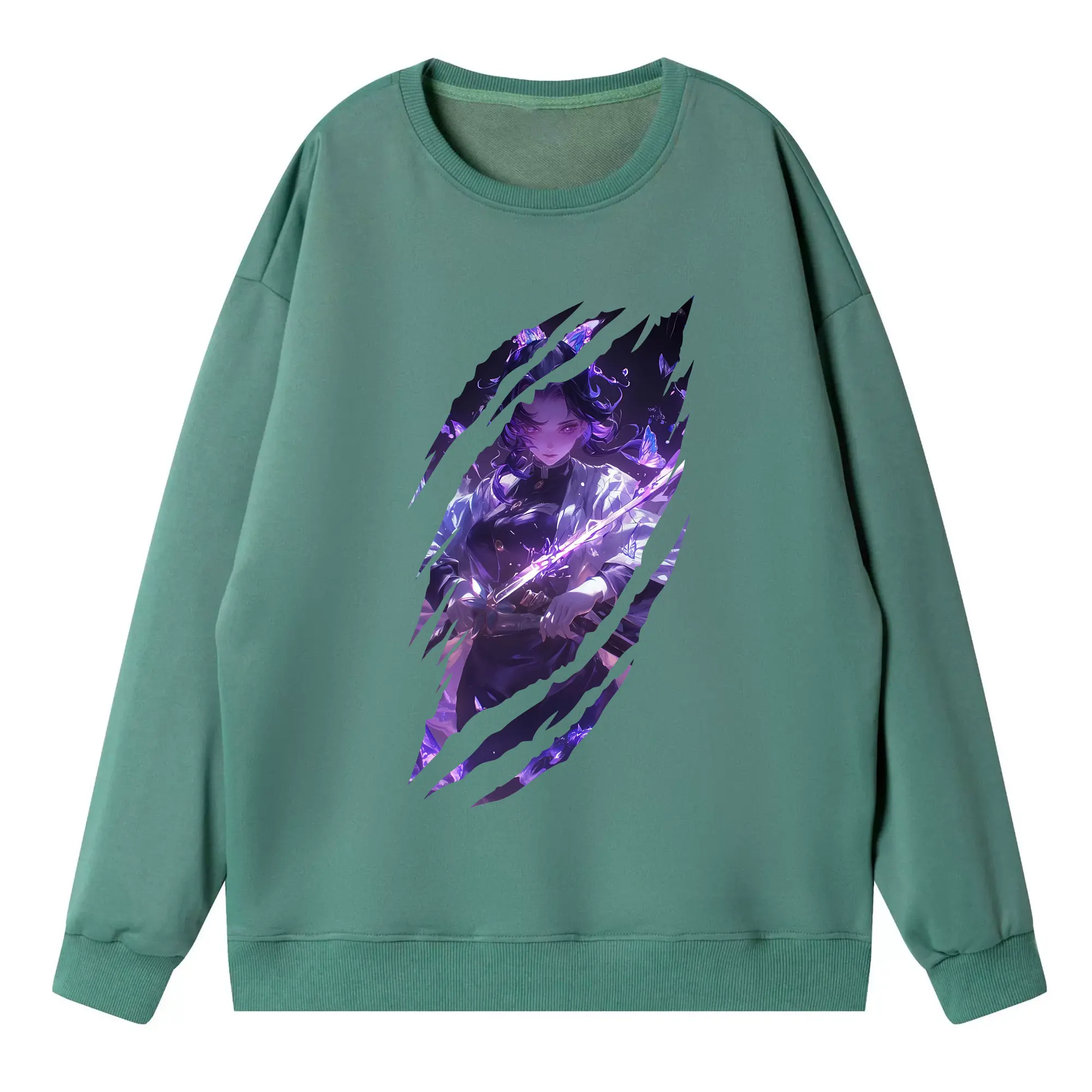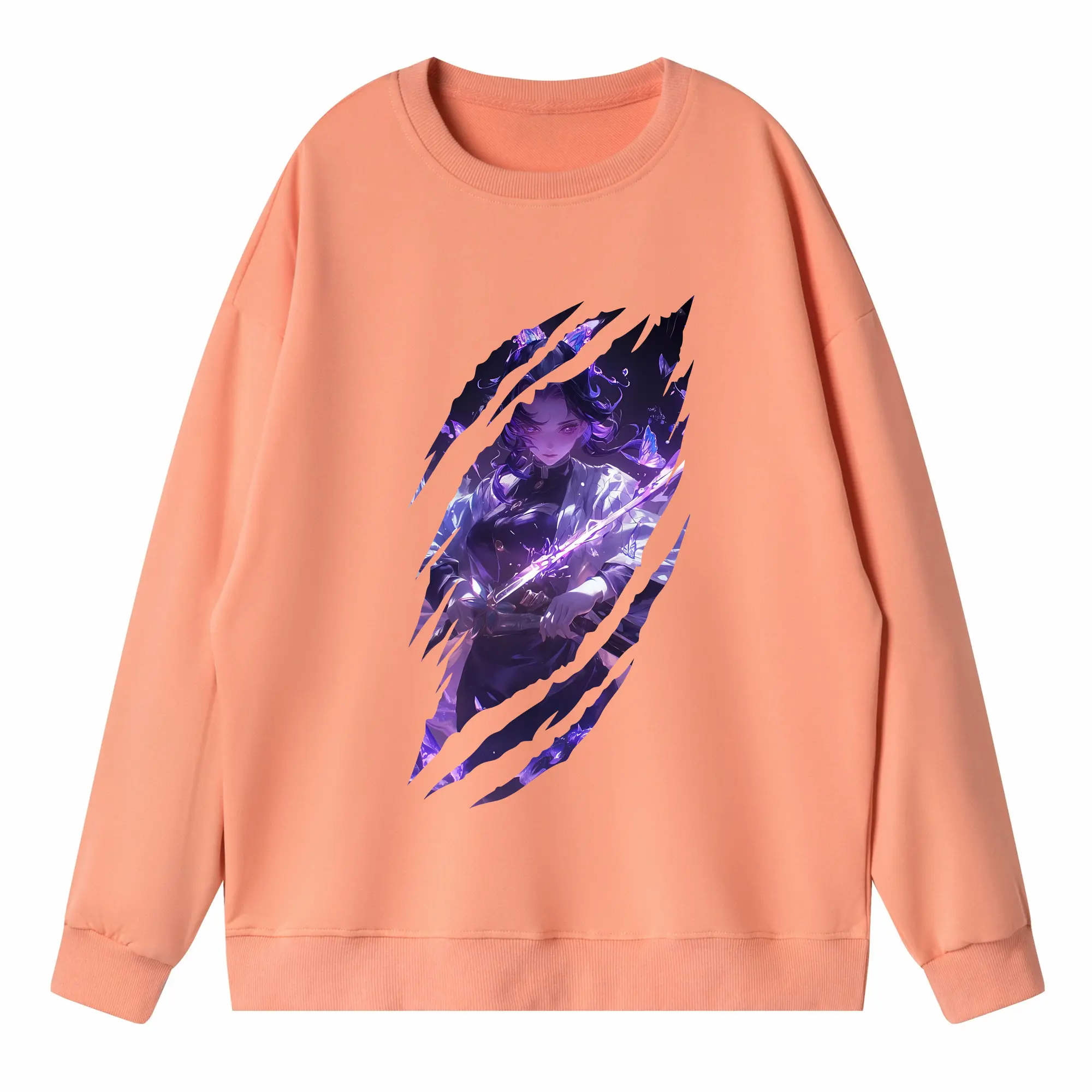 鬼滅の刃 グッズ,胡蝶 しのぶ - 高品質 クルーネック スウェット ・ コットン59% ポリエステル41% ・ ユニセックス 長袖 トレーナー ・ カジュアル デイリー スポーツ 散歩用