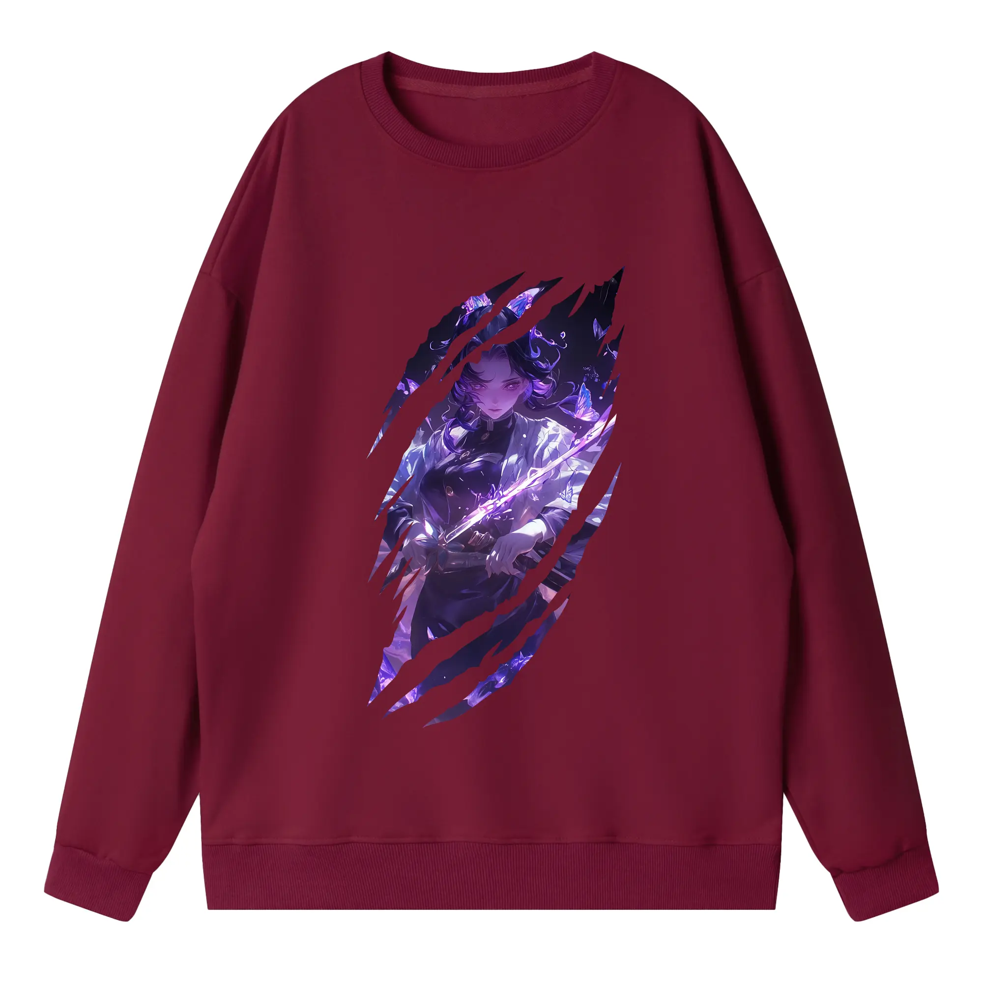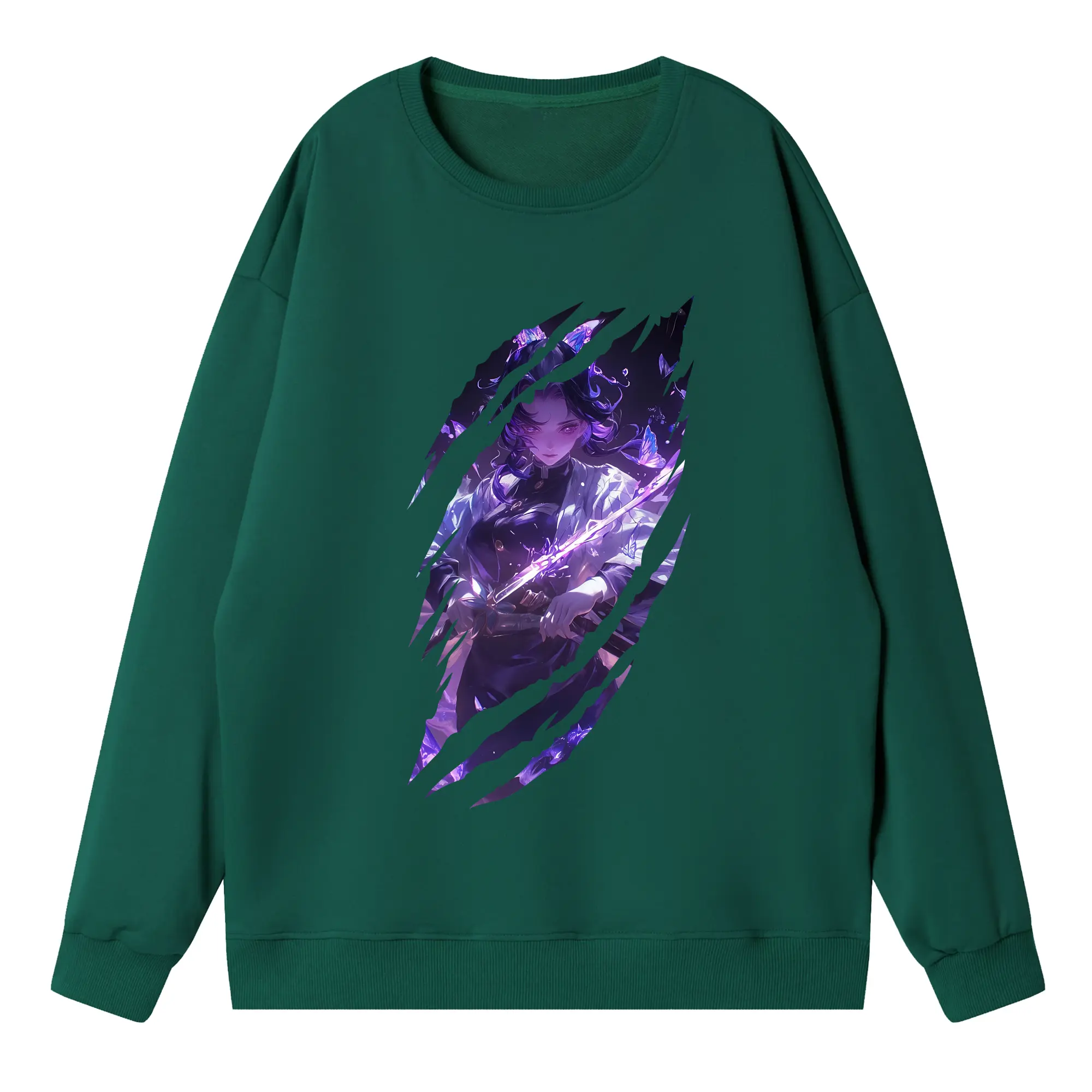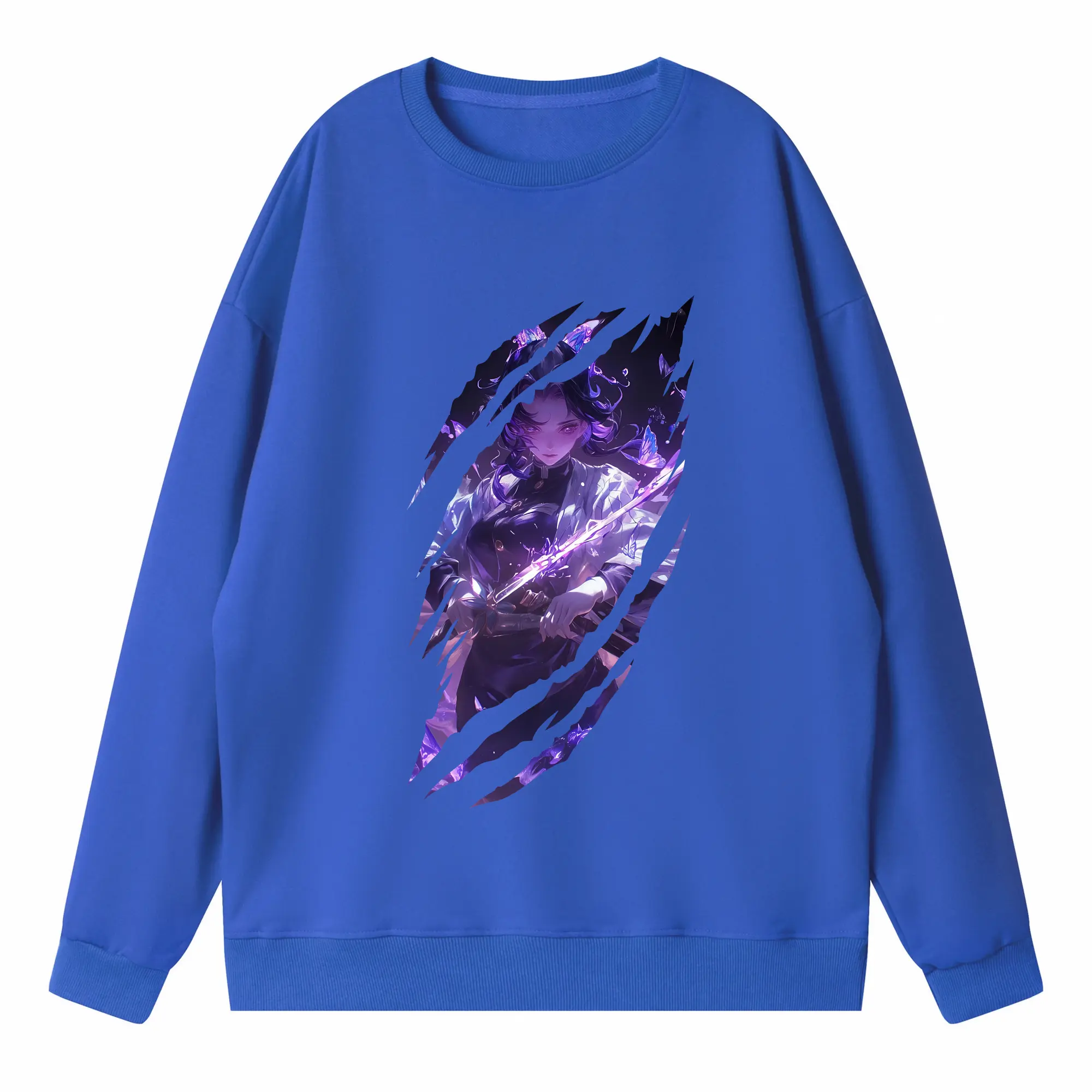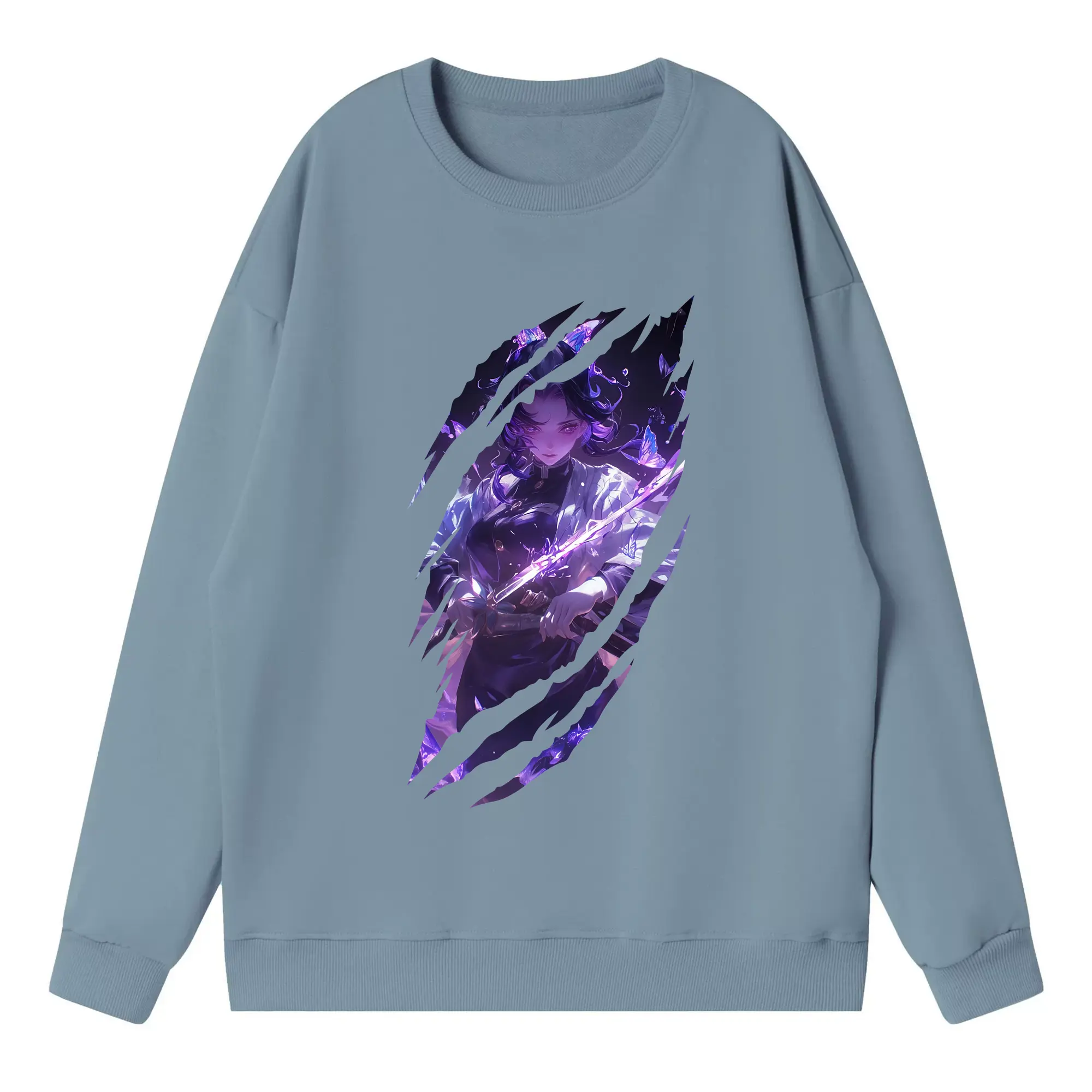 鬼滅の刃 グッズ,胡蝶 しのぶ - 高品質 クルーネック スウェット ・ コットン59% ポリエステル41% ・ ユニセックス 長袖 トレーナー ・ カジュアル デイリー スポーツ 散歩用