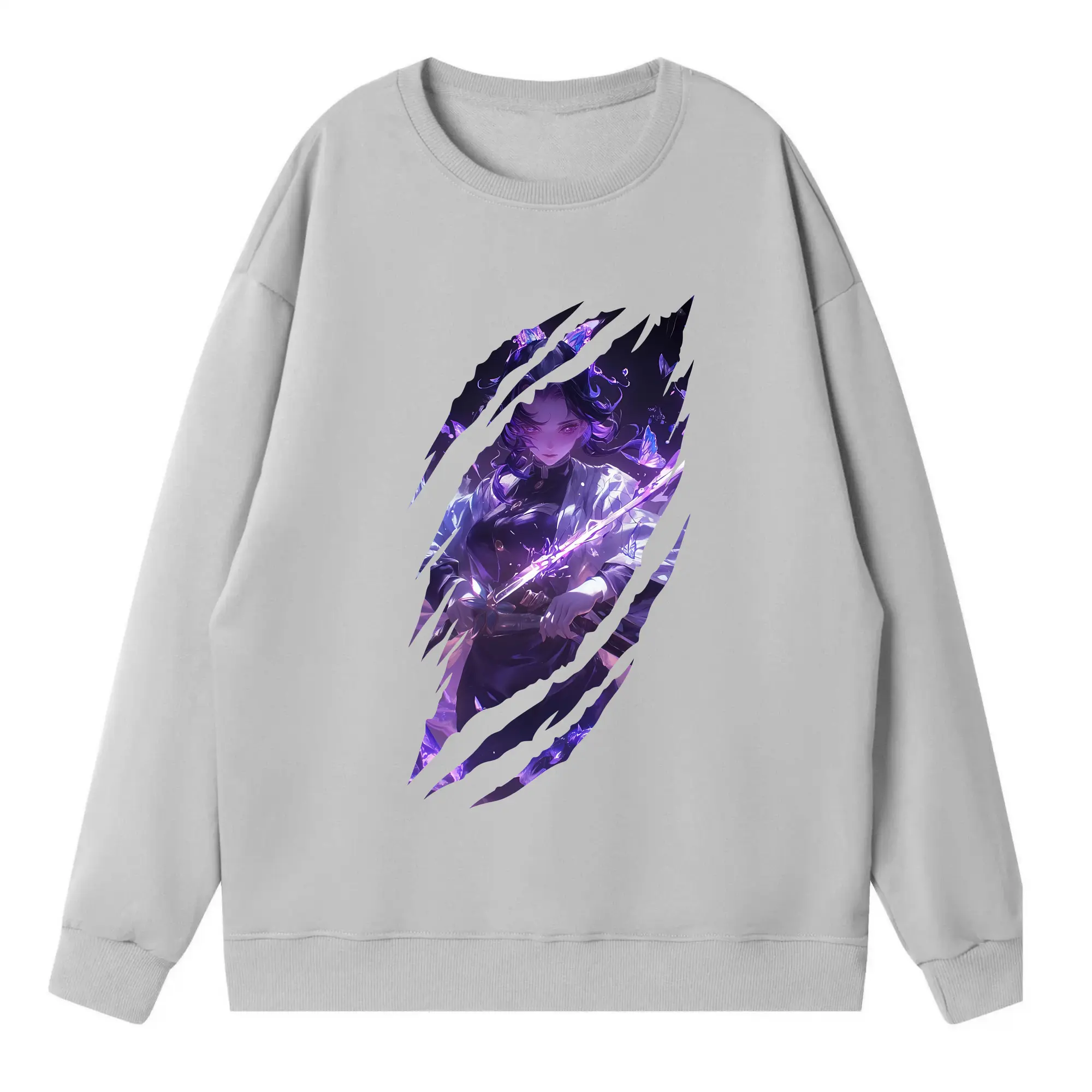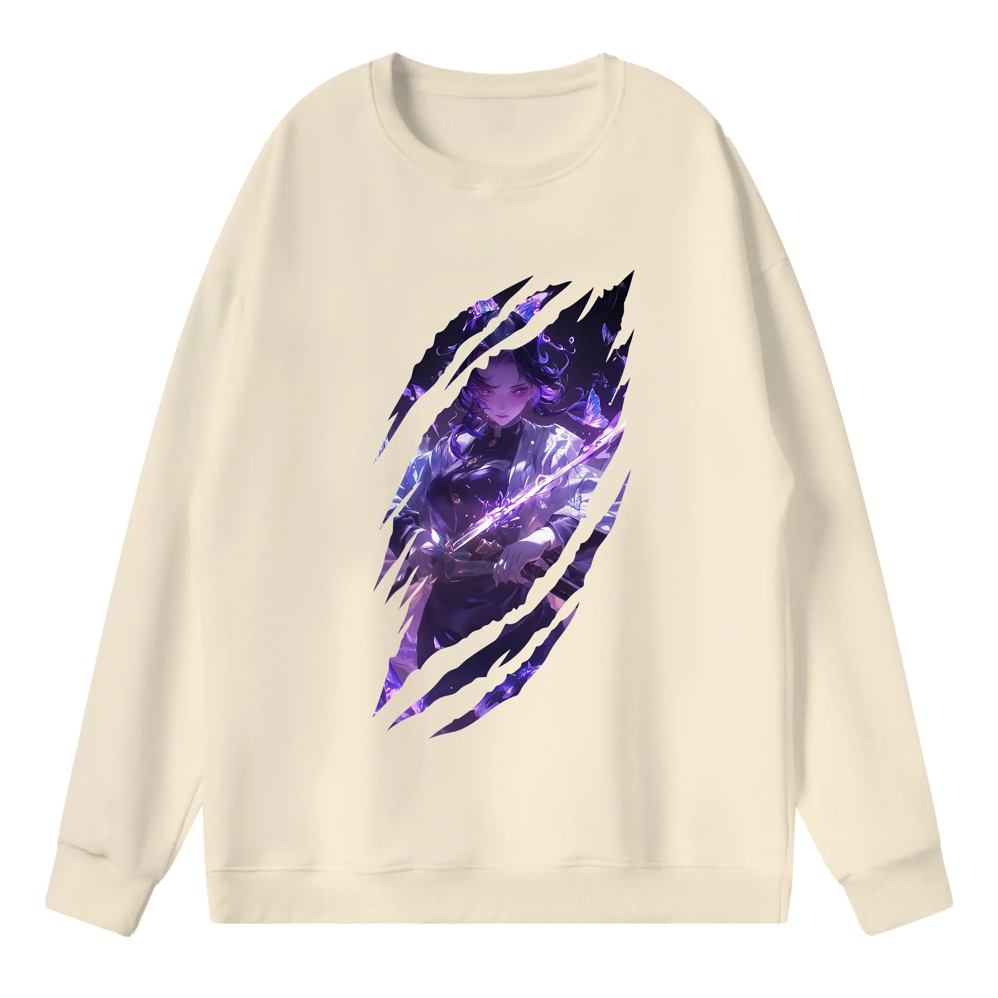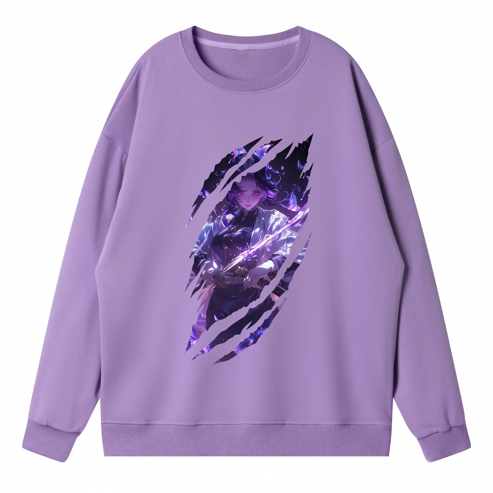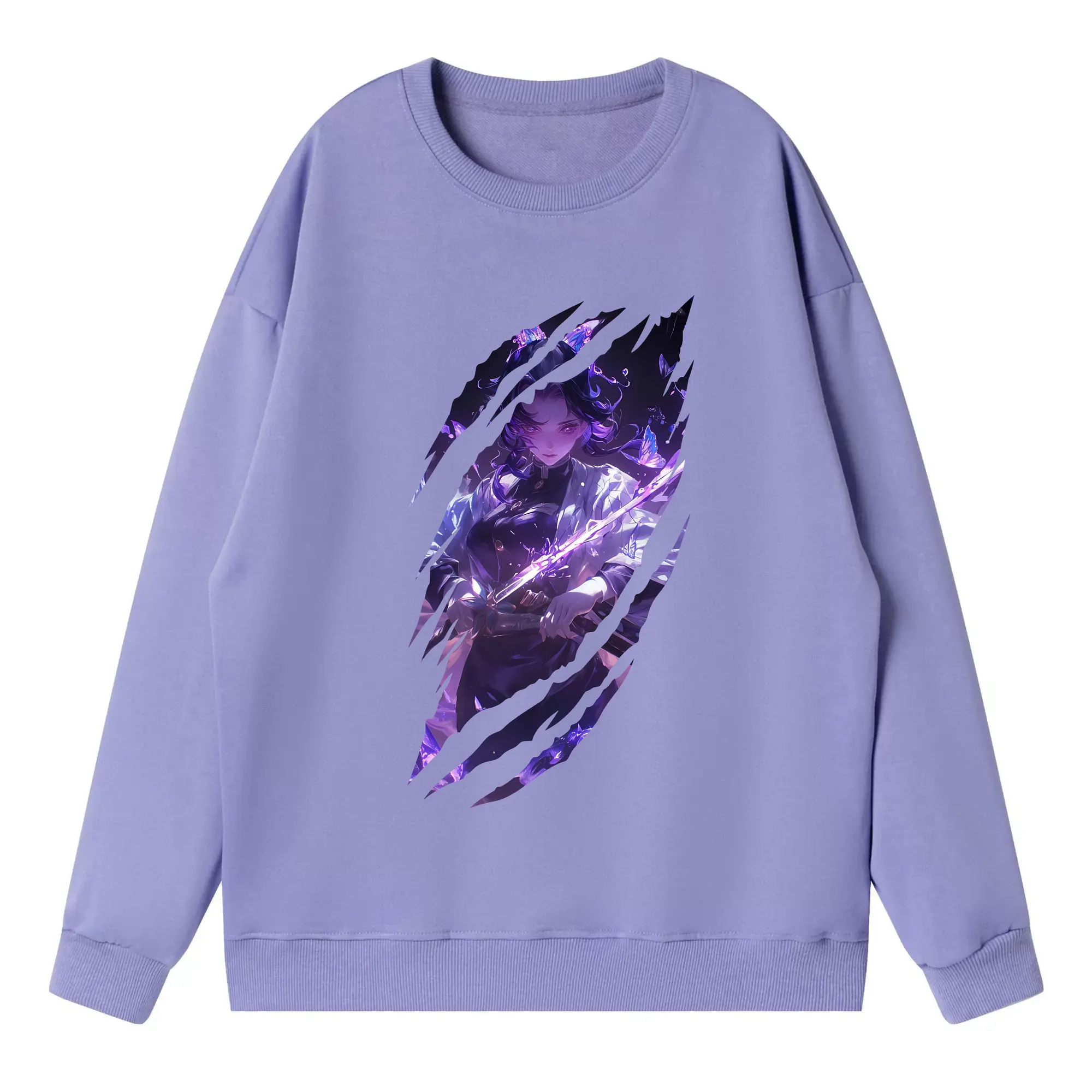 鬼滅の刃 グッズ,胡蝶 しのぶ - 高品質 クルーネック スウェット ・ コットン59% ポリエステル41% ・ ユニセックス 長袖 トレーナー ・ カジュアル デイリー スポーツ 散歩用