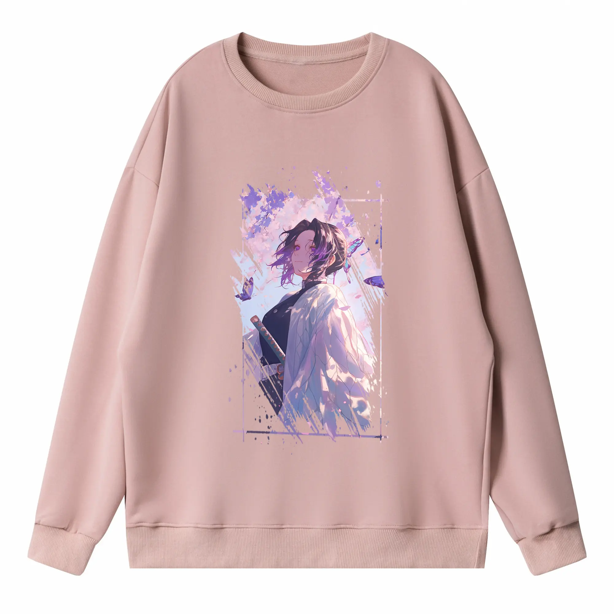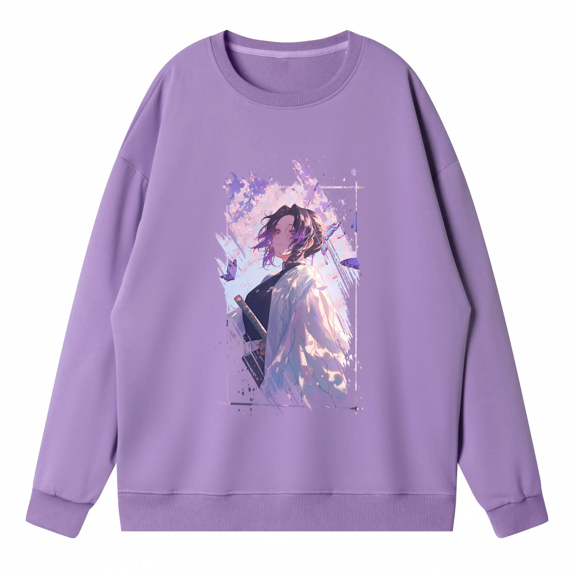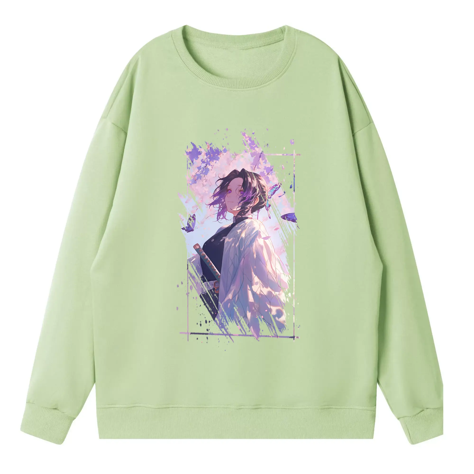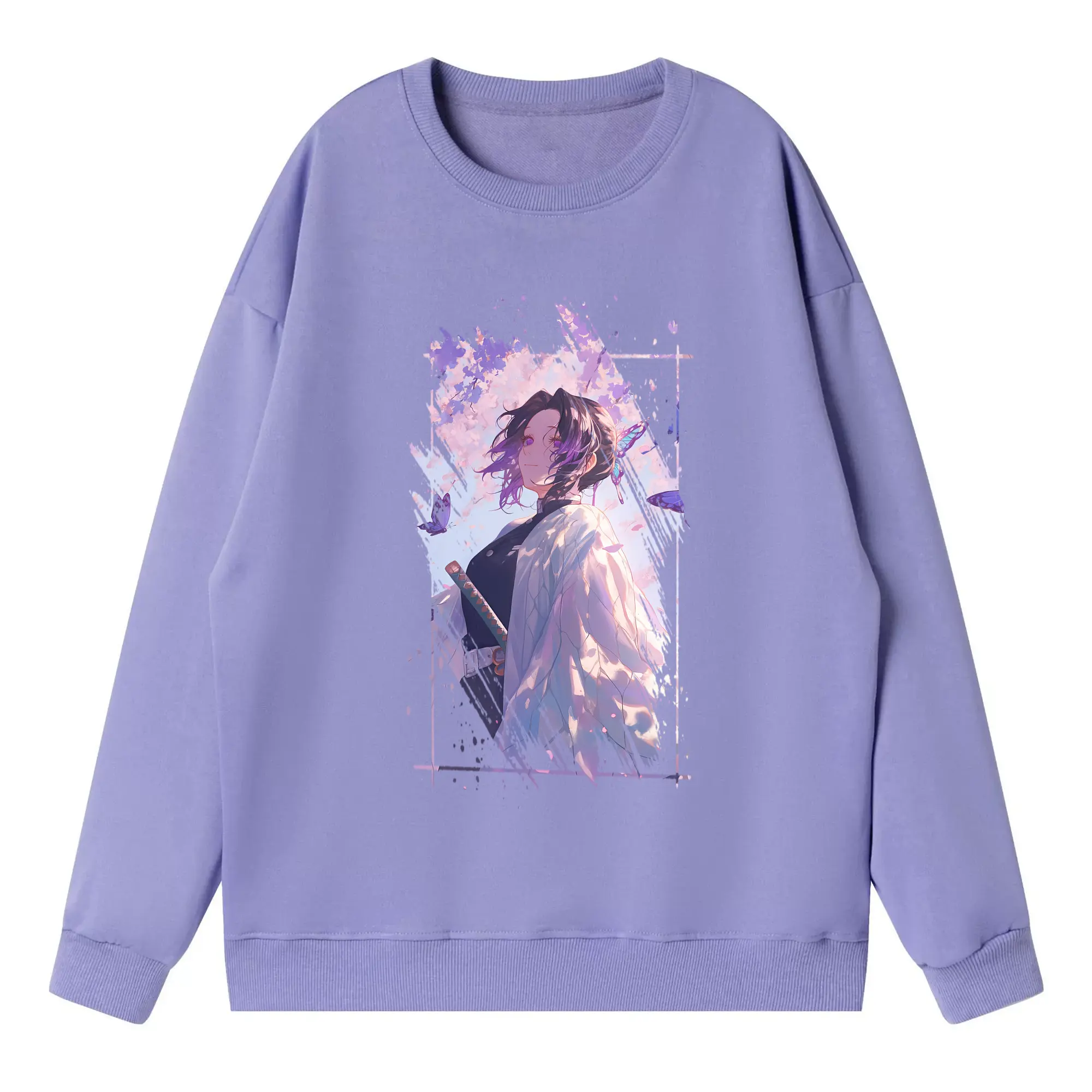 鬼滅の刃 グッズ,胡蝶 しのぶ - 高品質 クルーネック スウェット ・ コットン59% ポリエステル41% ・ ユニセックス 長袖 トレーナー ・ カジュアル デイリー スポーツ 散歩用