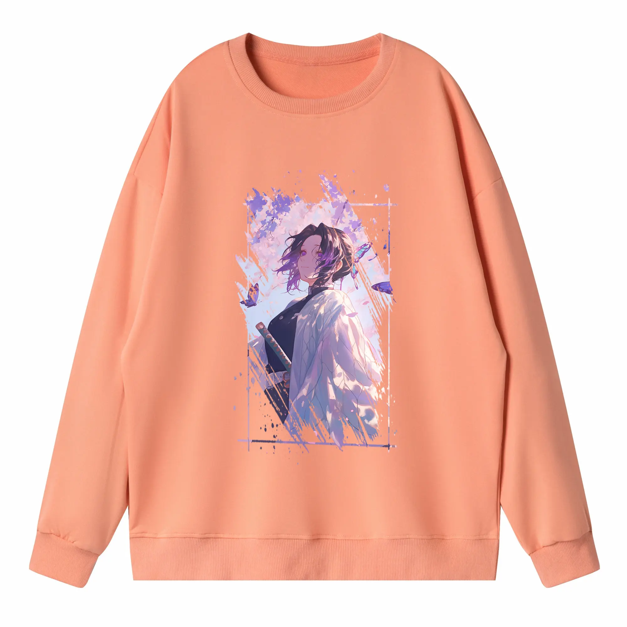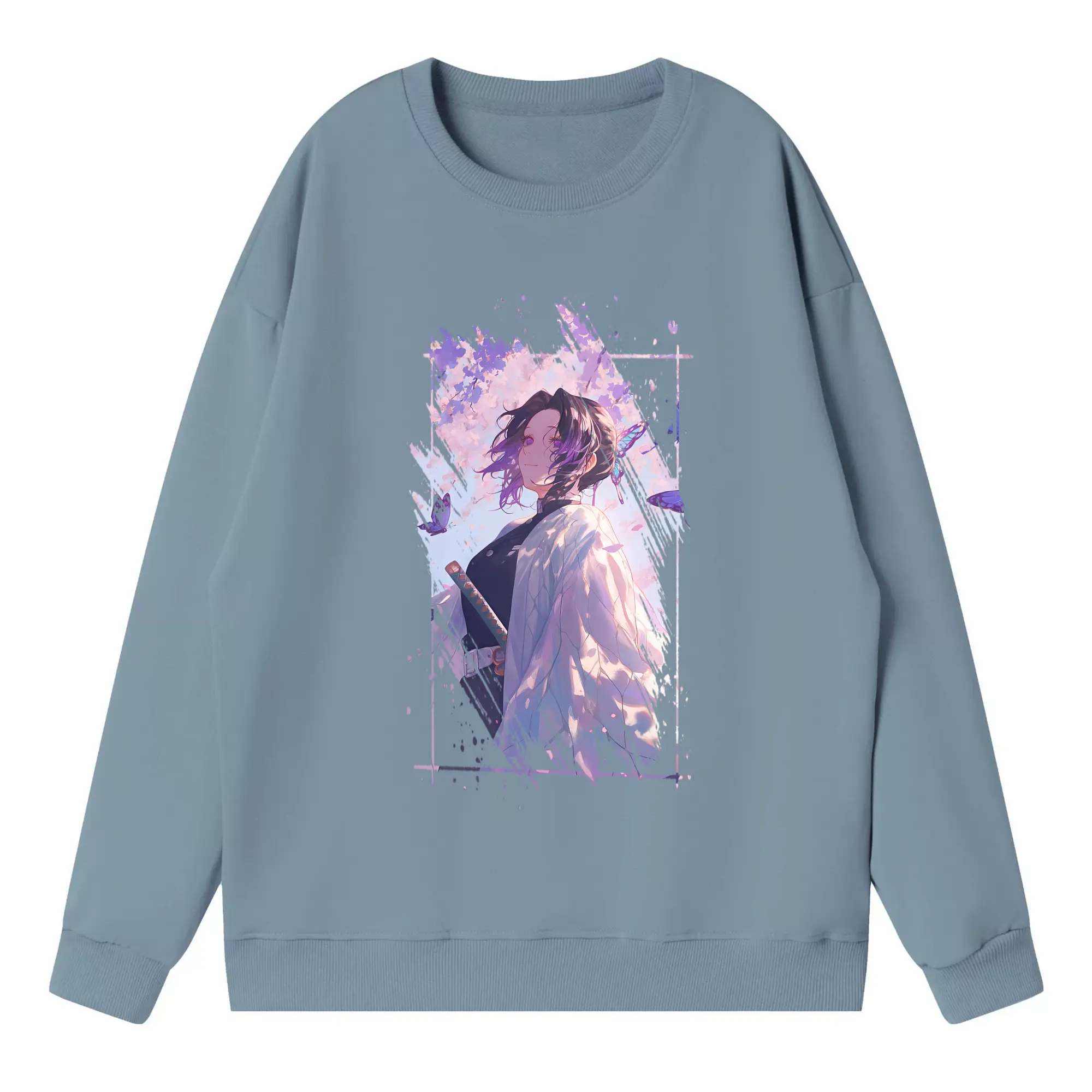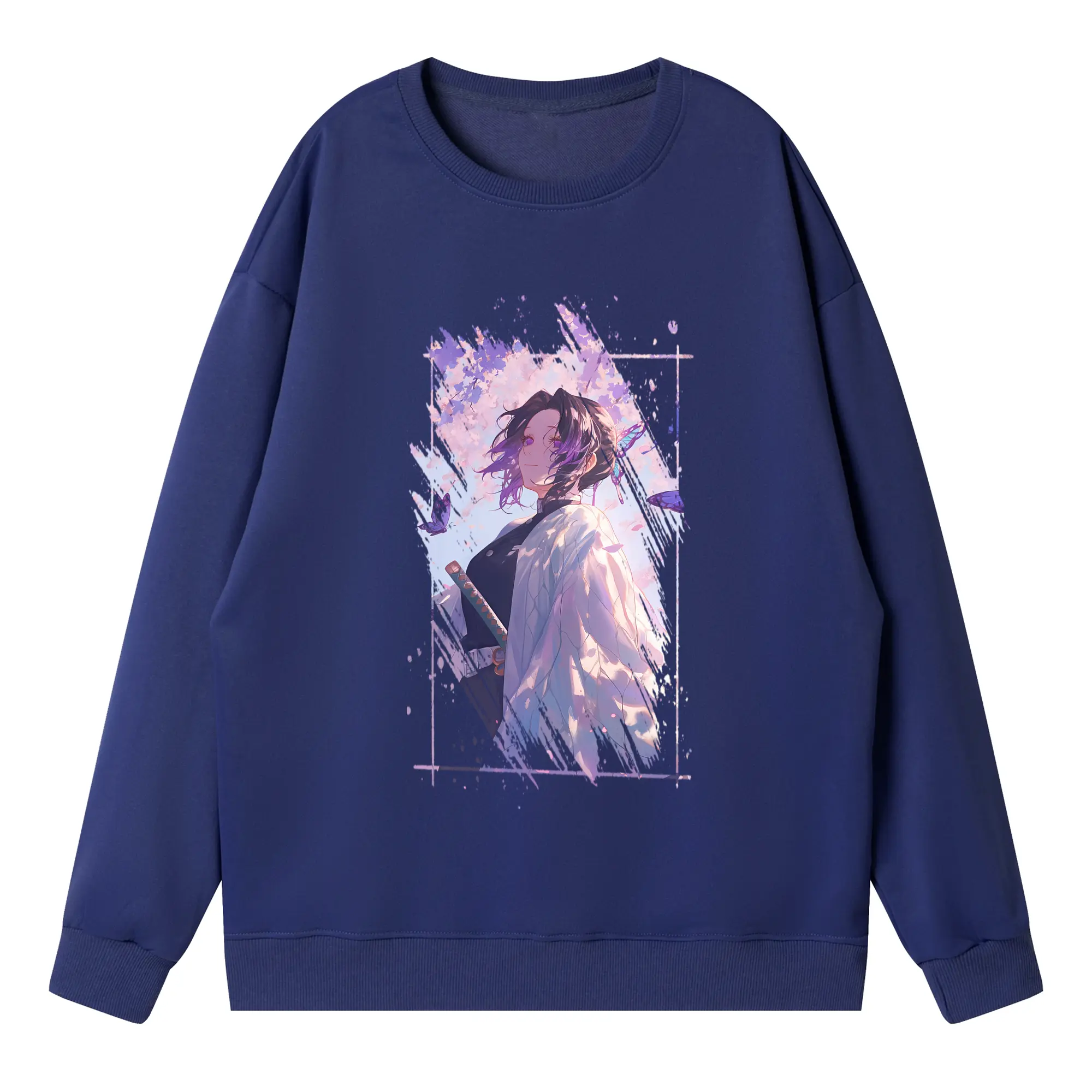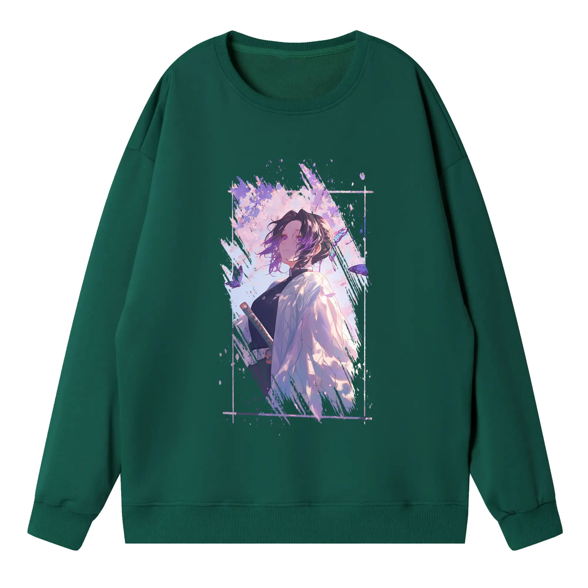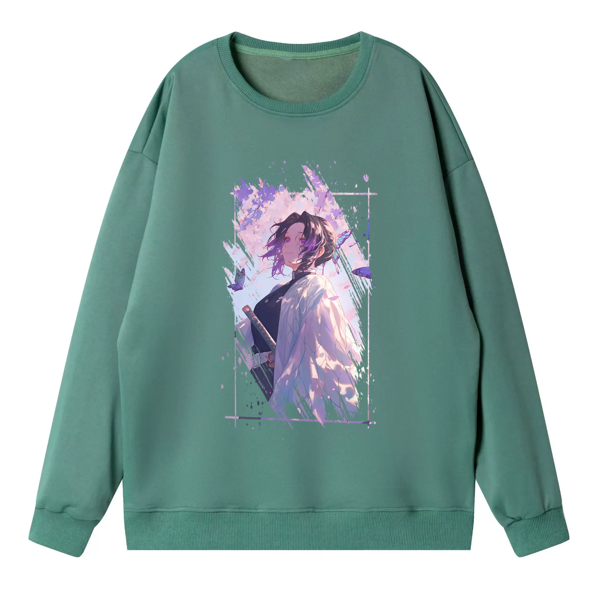 鬼滅の刃 グッズ,胡蝶 しのぶ - 高品質 クルーネック スウェット ・ コットン59% ポリエステル41% ・ ユニセックス 長袖 トレーナー ・ カジュアル デイリー スポーツ 散歩用