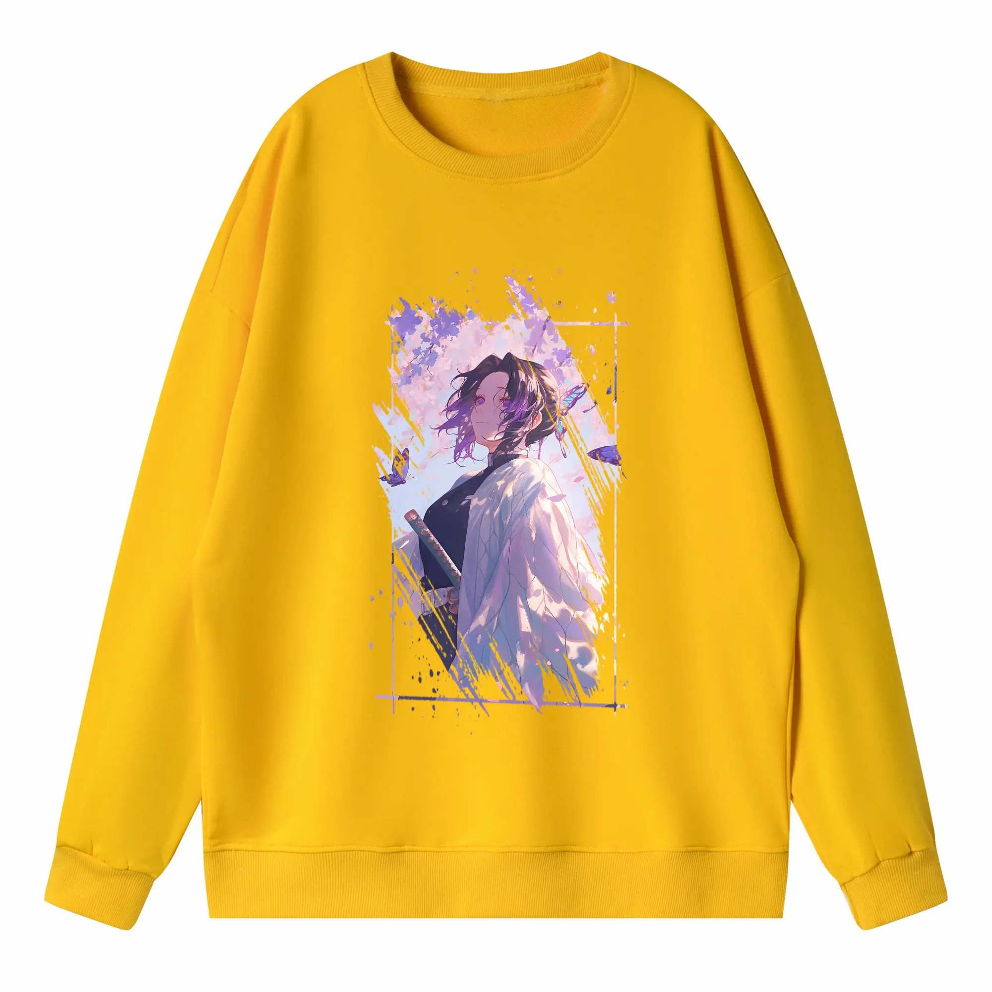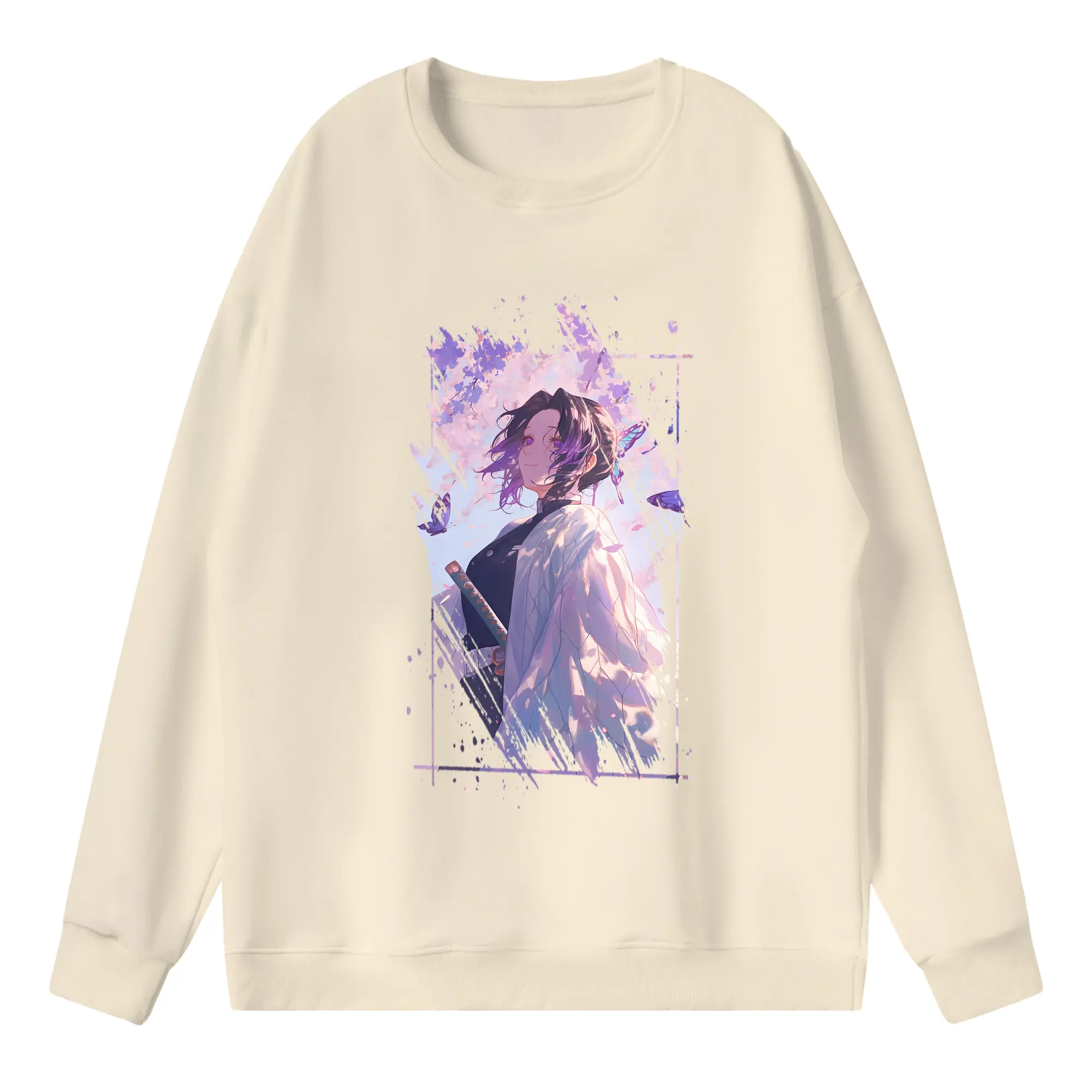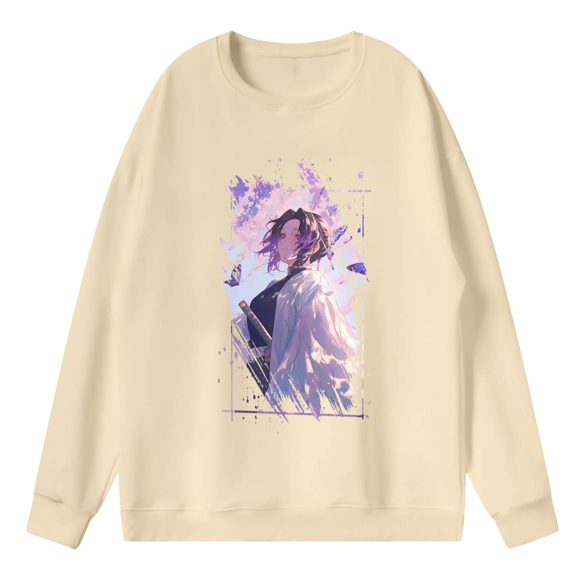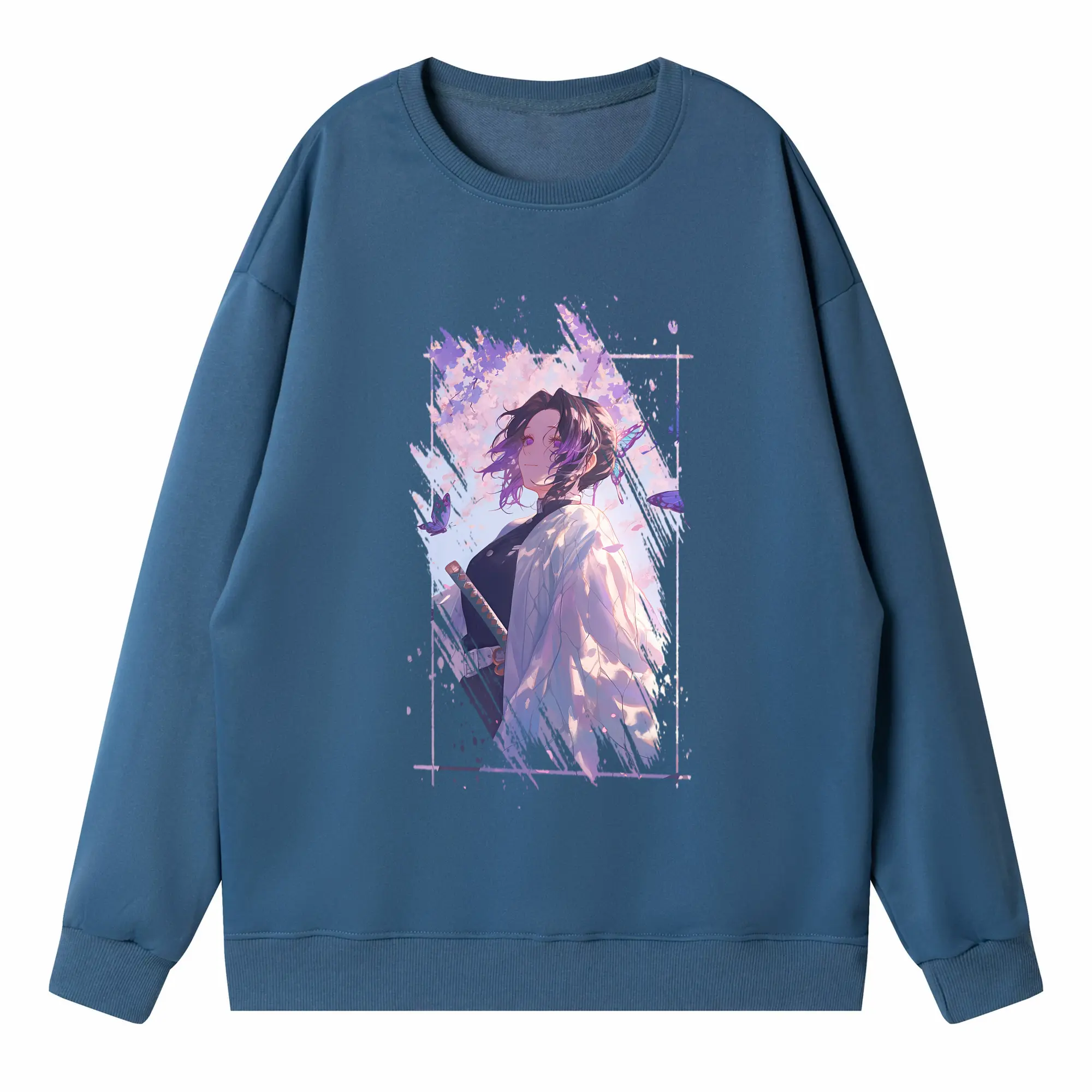 鬼滅の刃 グッズ,胡蝶 しのぶ - 高品質 クルーネック スウェット ・ コットン59% ポリエステル41% ・ ユニセックス 長袖 トレーナー ・ カジュアル デイリー スポーツ 散歩用