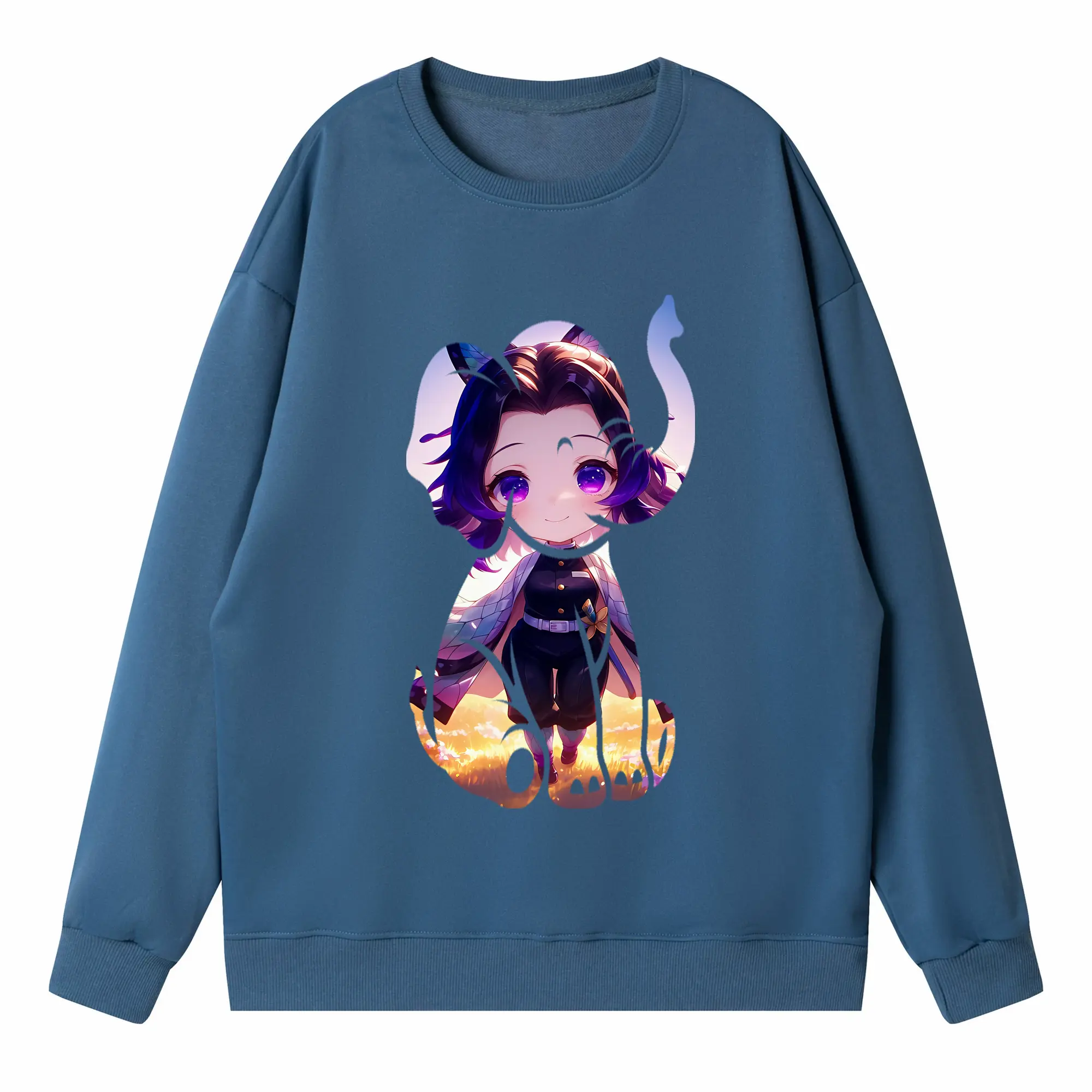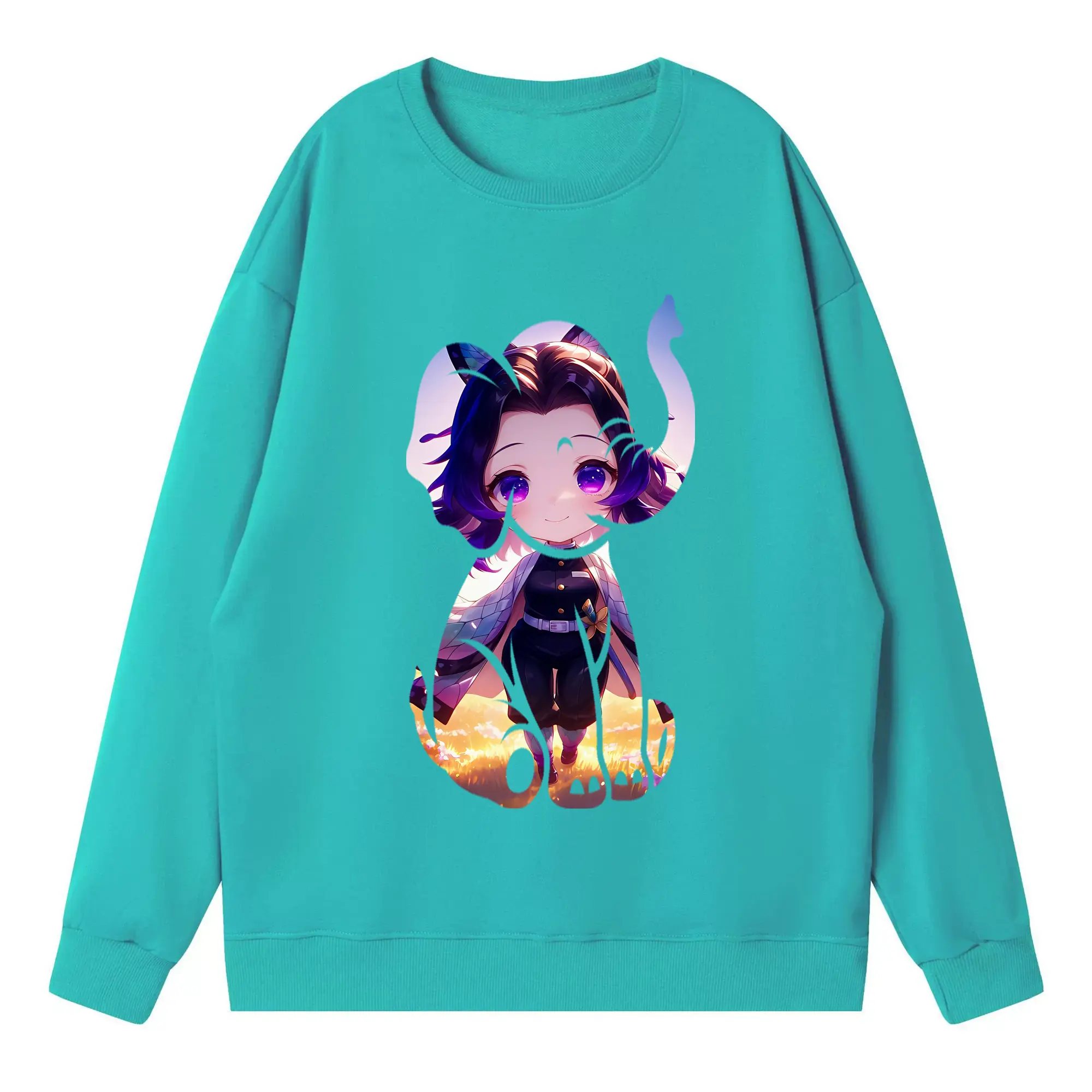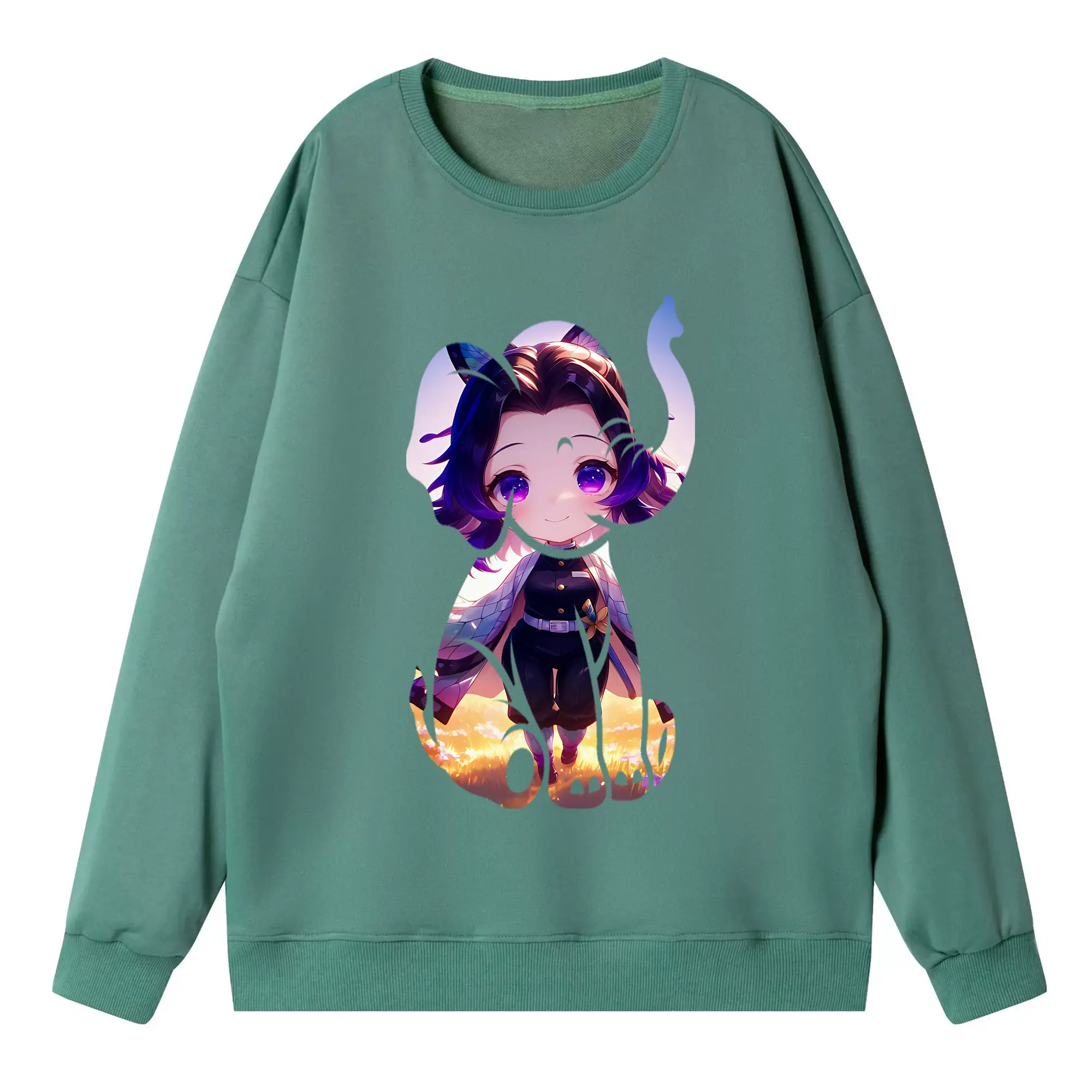 鬼滅の刃 グッズ,胡蝶 しのぶ - 高品質 クルーネック スウェット ・ コットン59% ポリエステル41% ・ ユニセックス 長袖 トレーナー ・ カジュアル デイリー スポーツ 散歩用