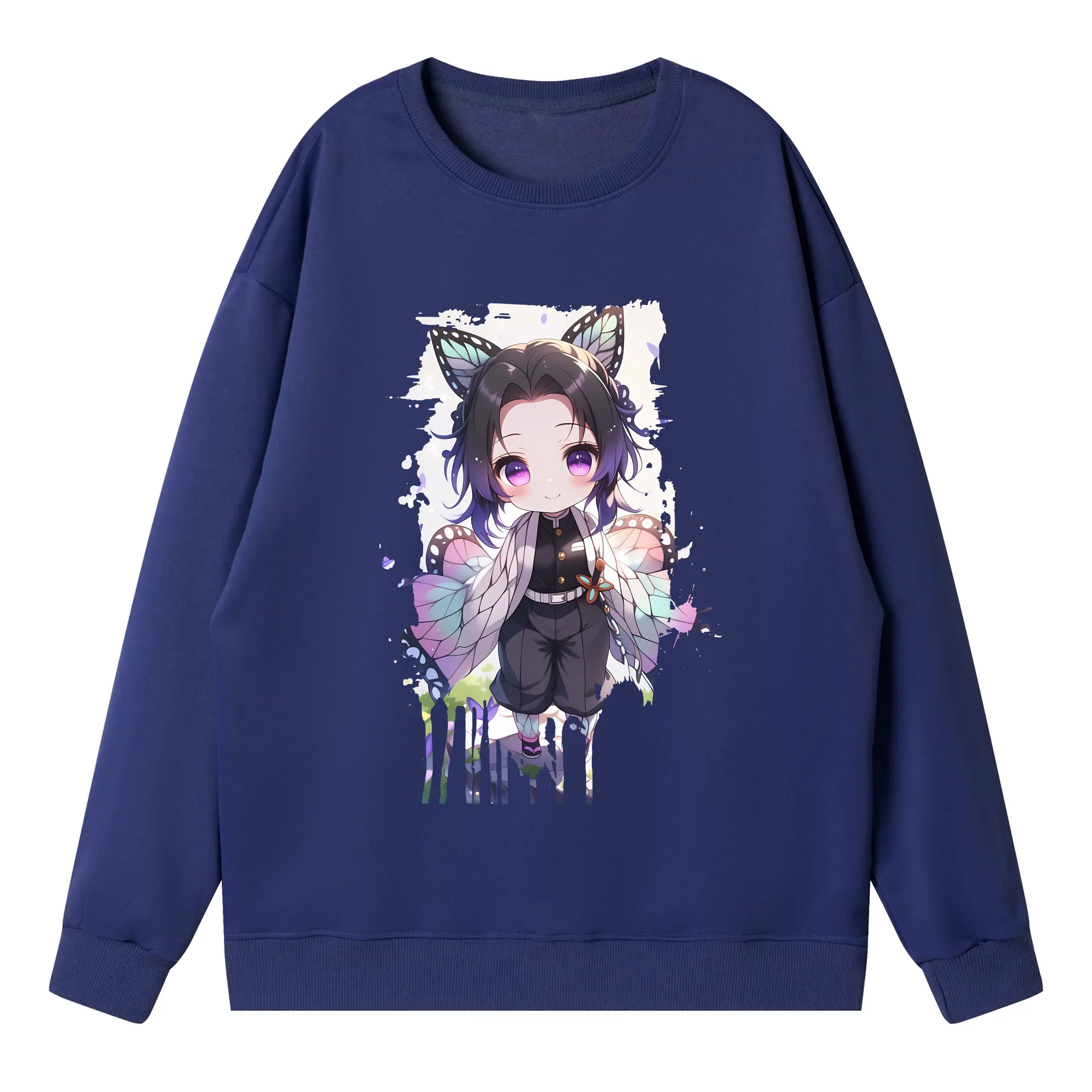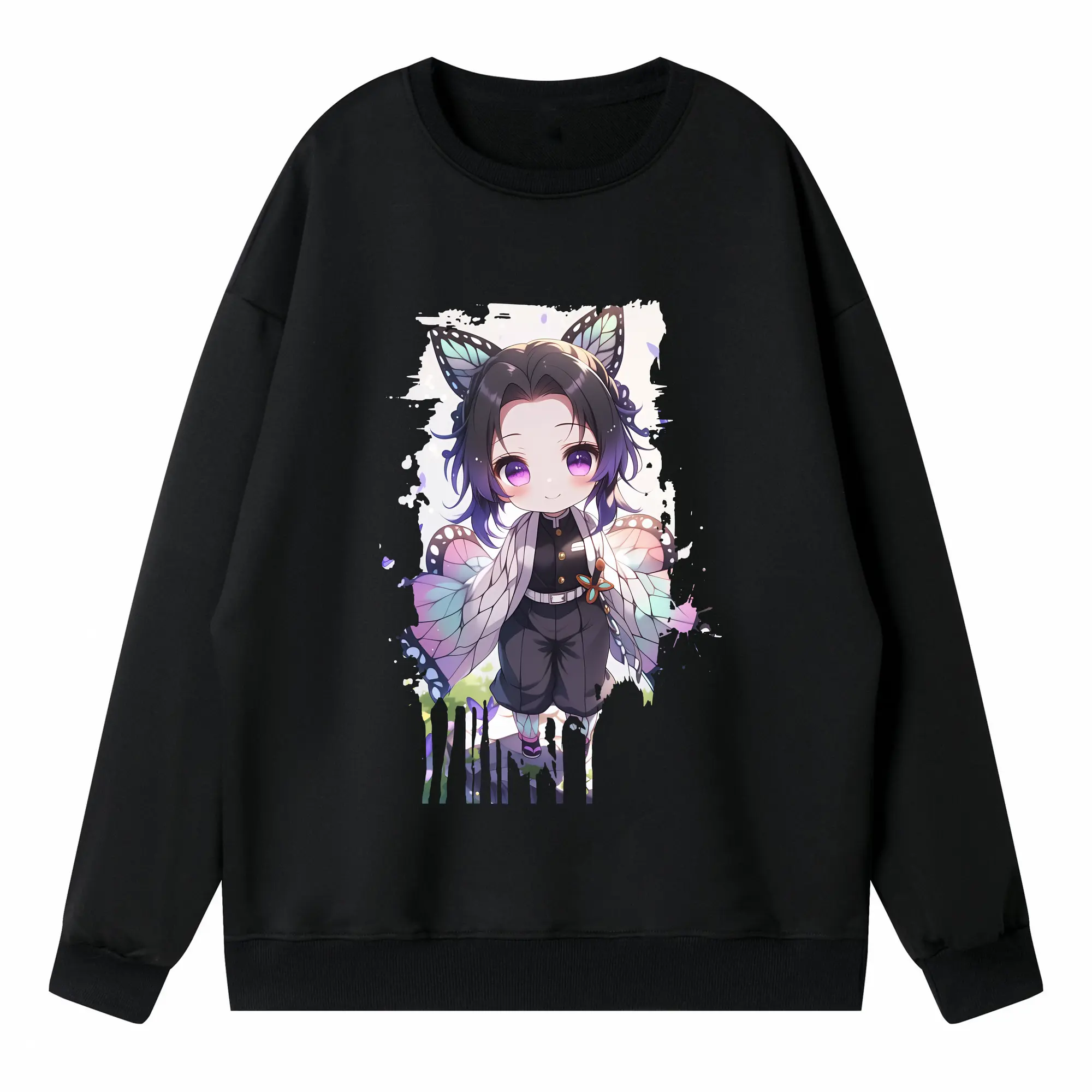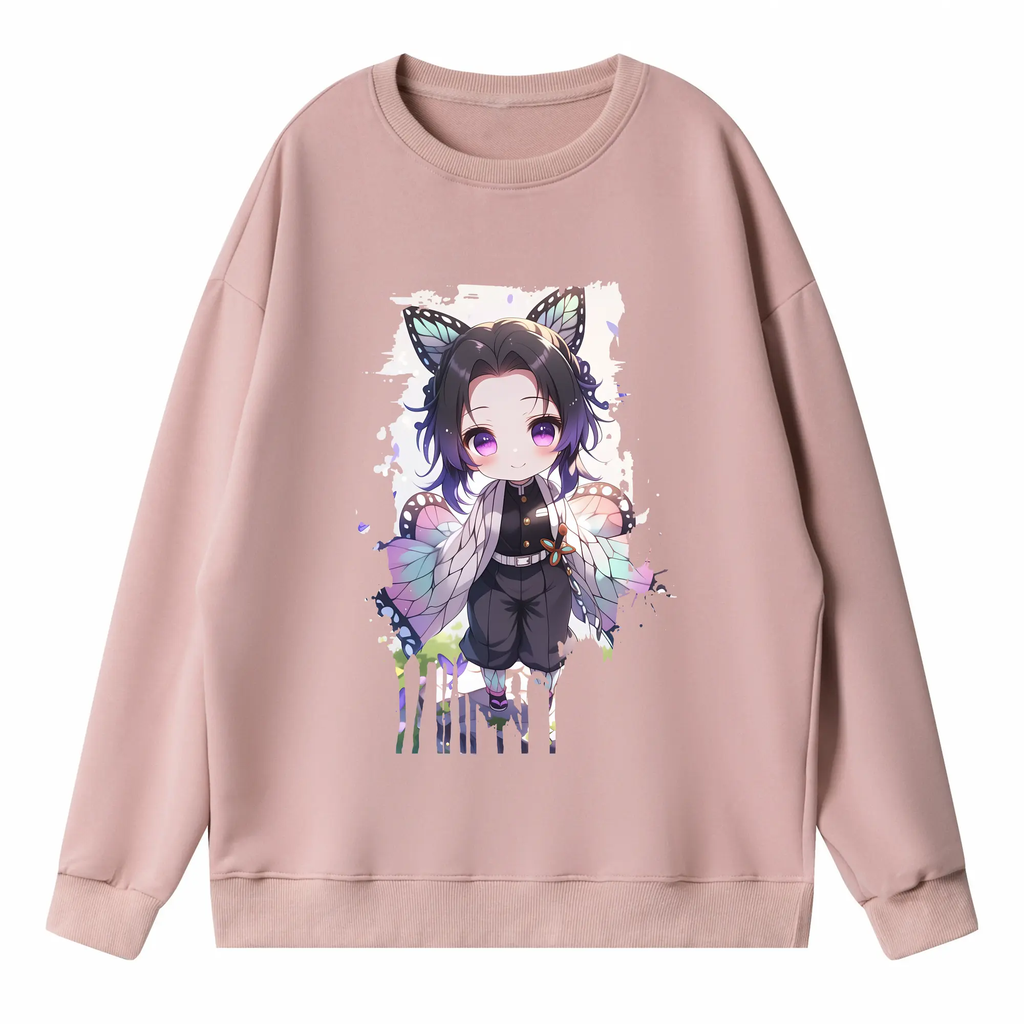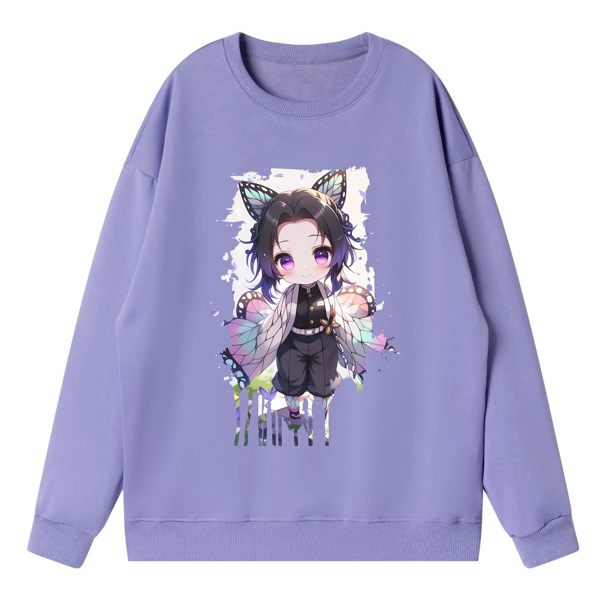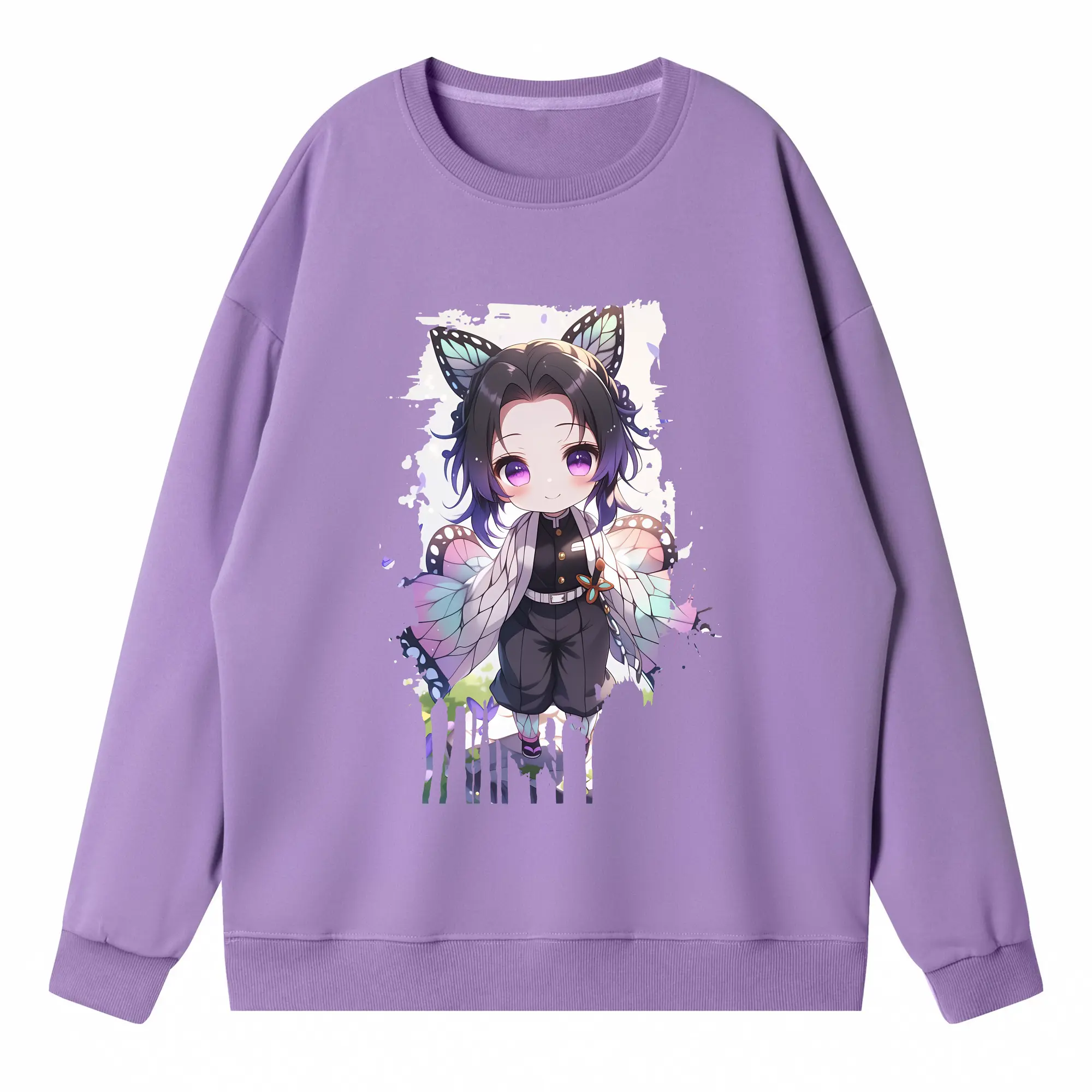 鬼滅の刃 グッズ,胡蝶 しのぶ - 高品質 クルーネック スウェット ・ コットン59% ポリエステル41% ・ ユニセックス 長袖 トレーナー ・ カジュアル デイリー スポーツ 散歩用