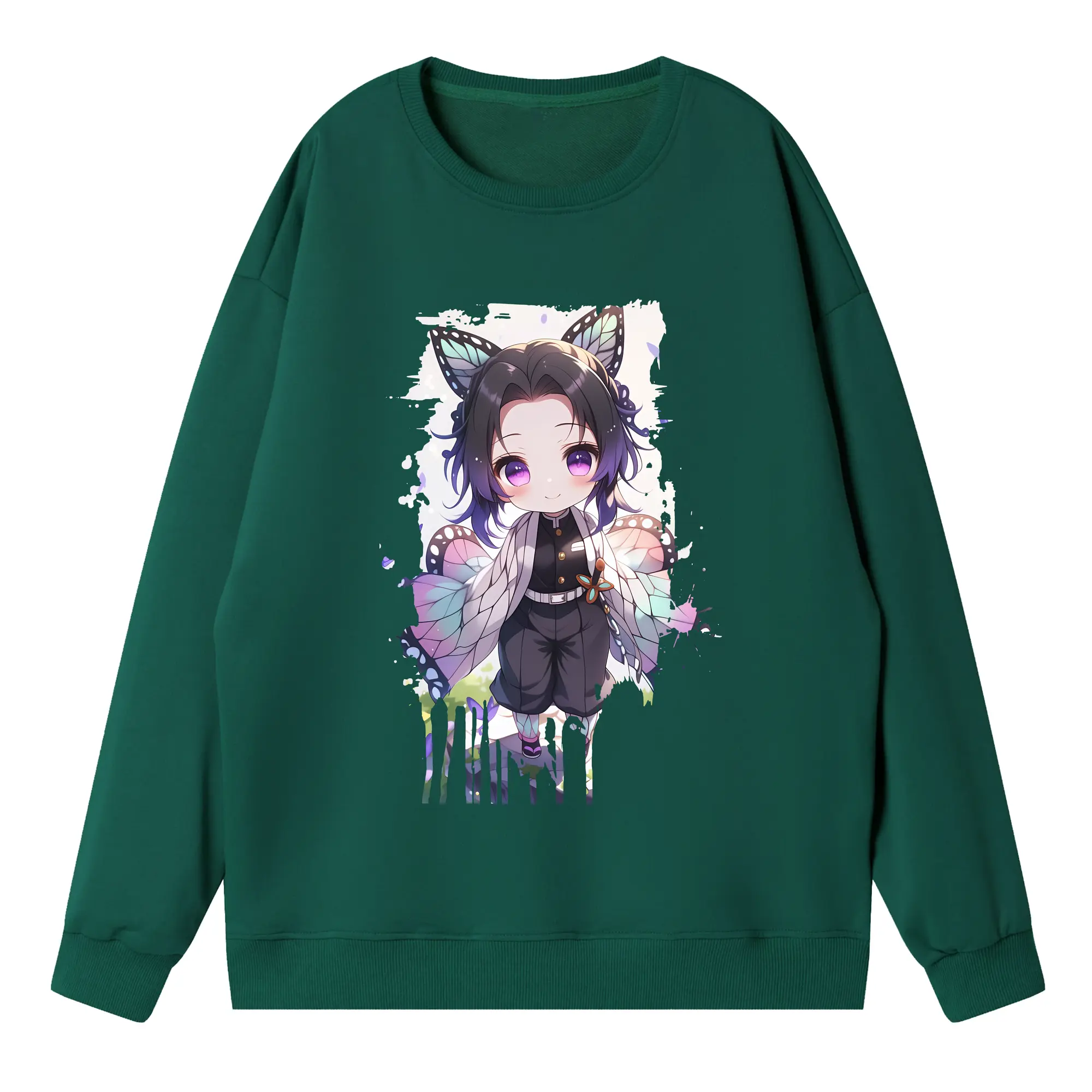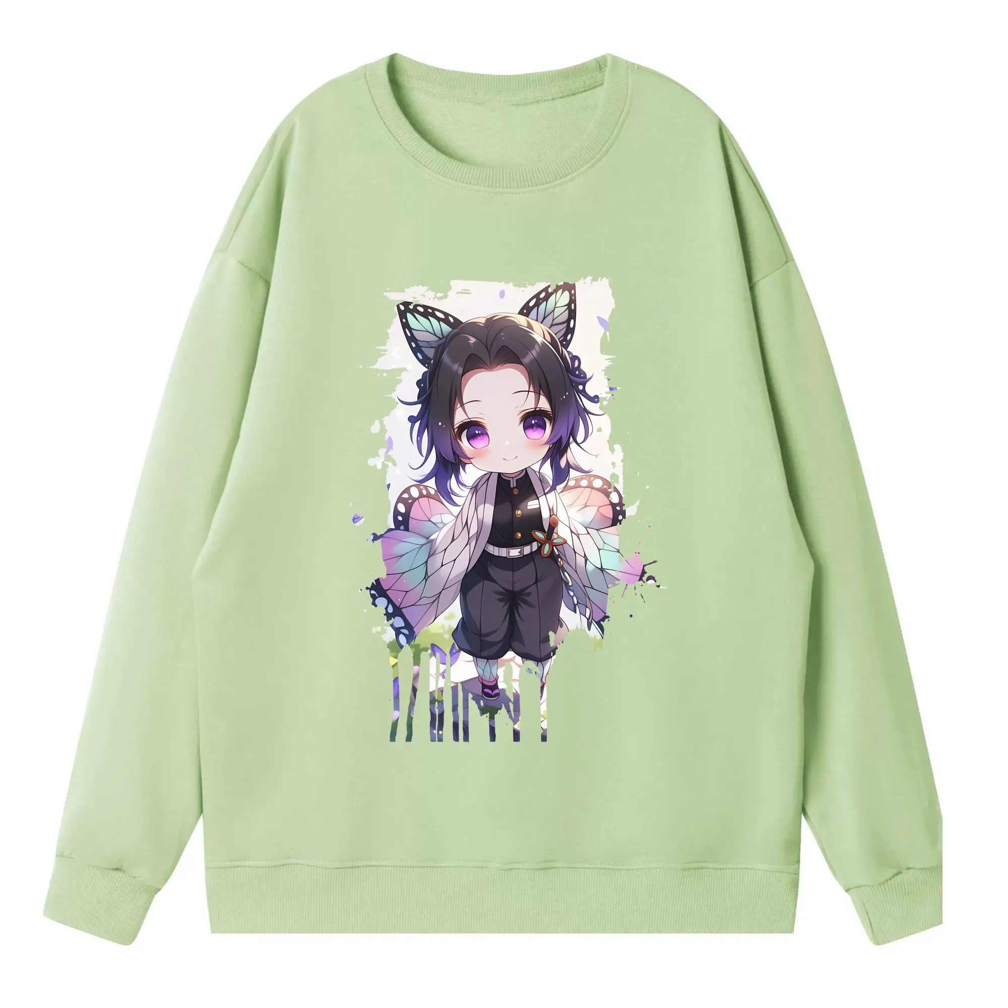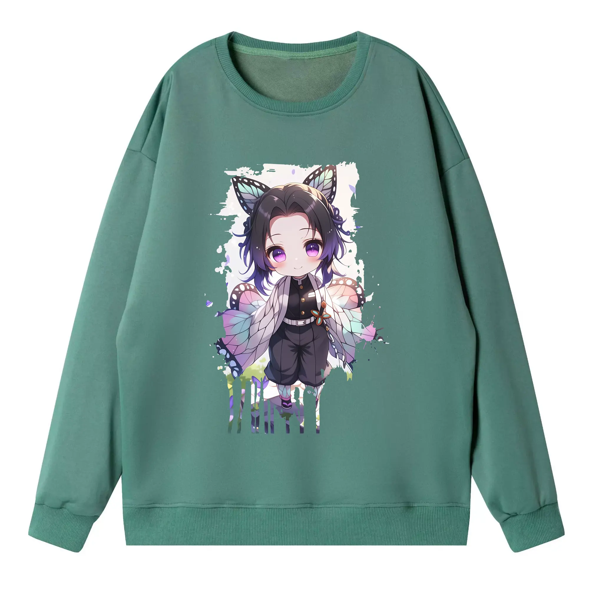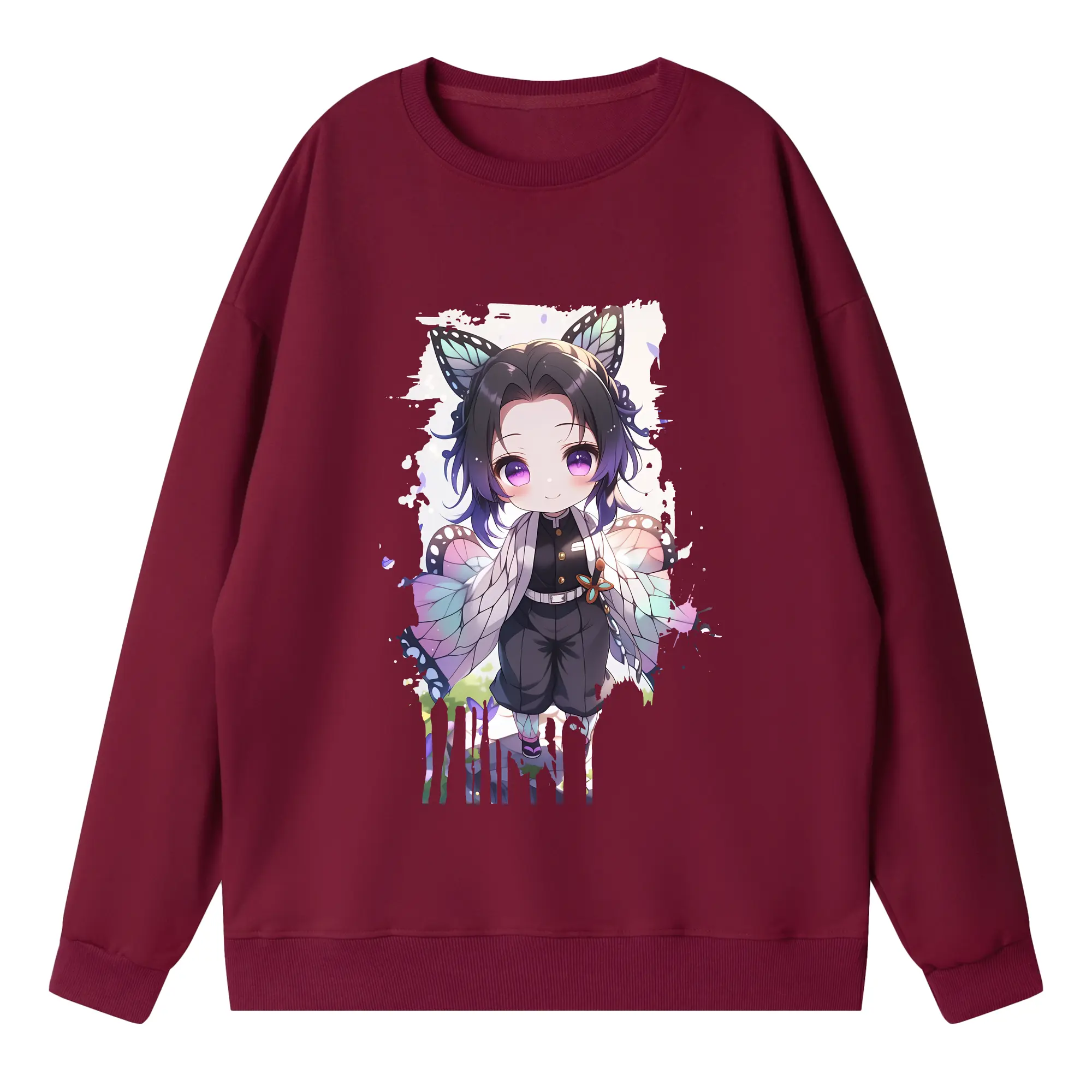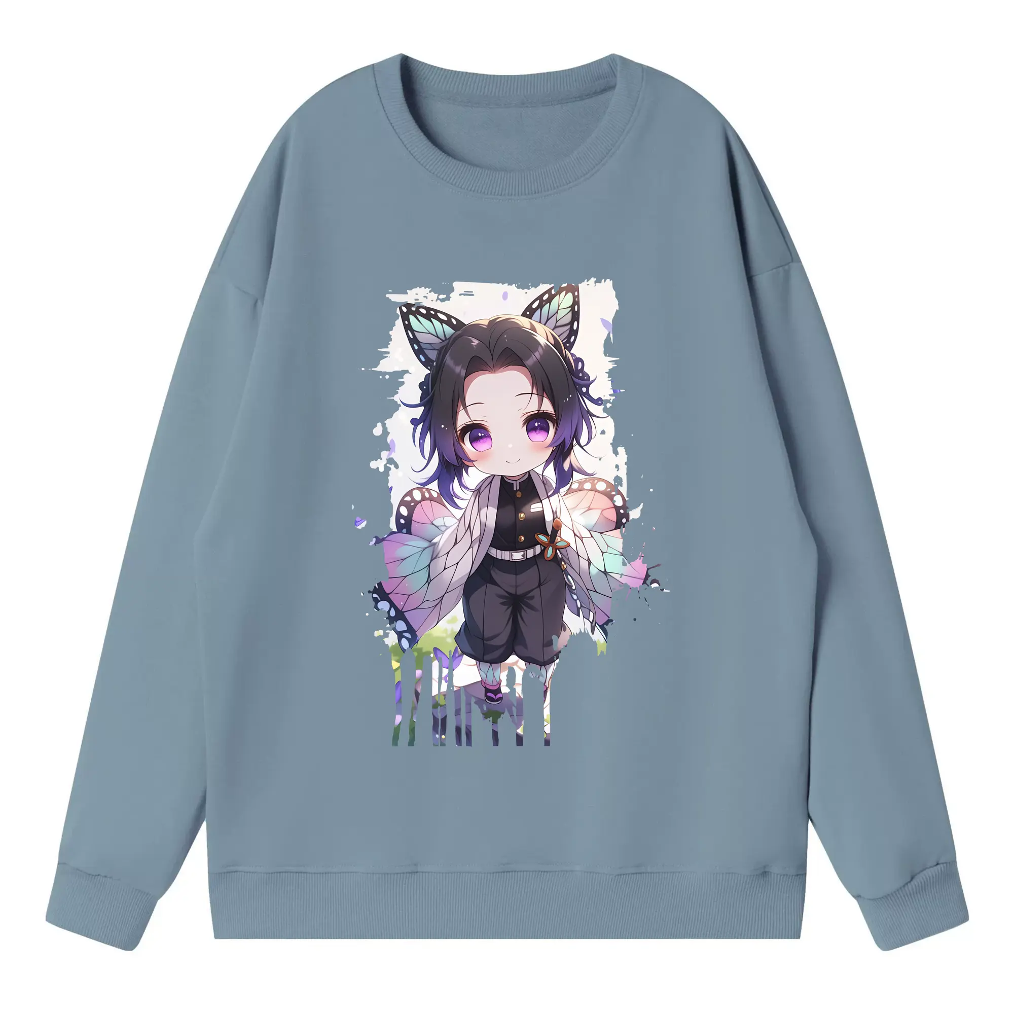鬼滅の刃 グッズ,胡蝶 しのぶ - 高品質 クルーネック スウェット ・ コットン59% ポリエステル41% ・ ユニセックス 長袖 トレーナー ・ カジュアル デイリー スポーツ 散歩用