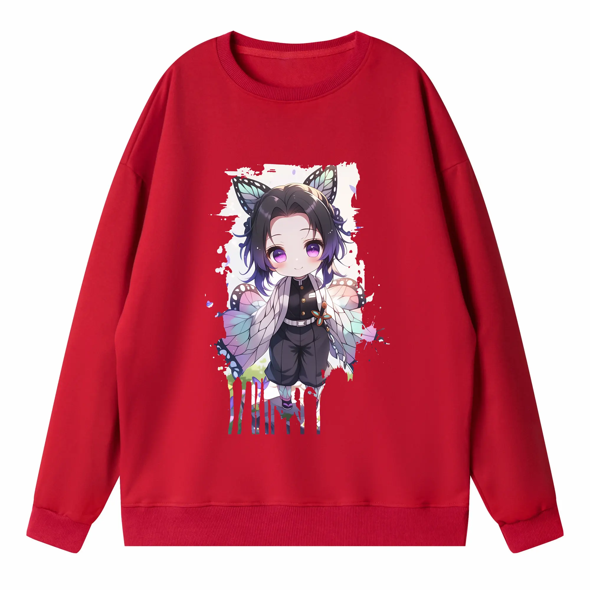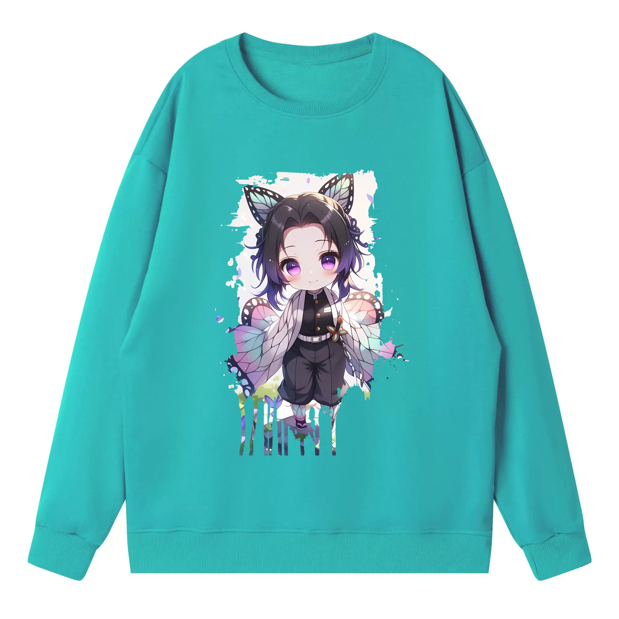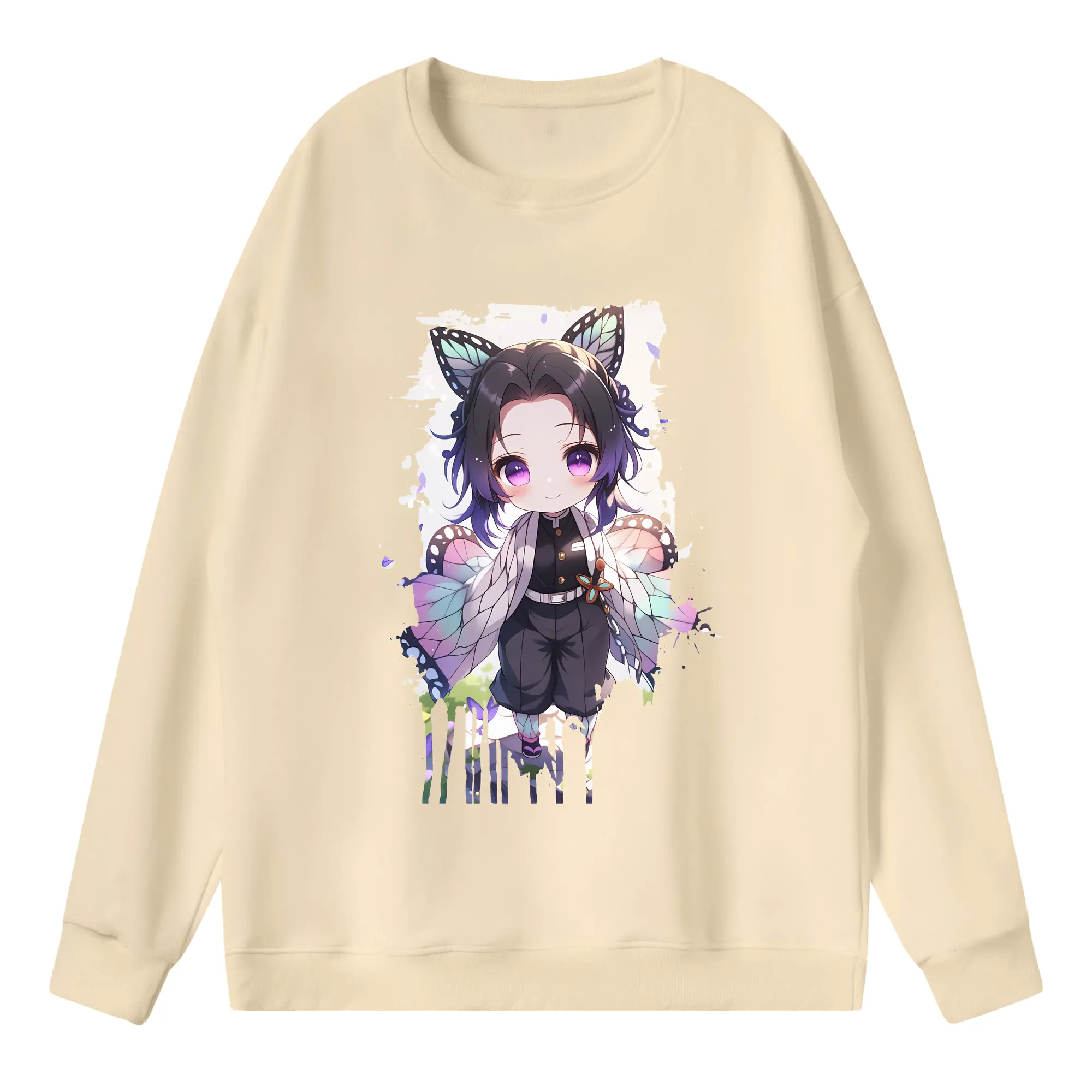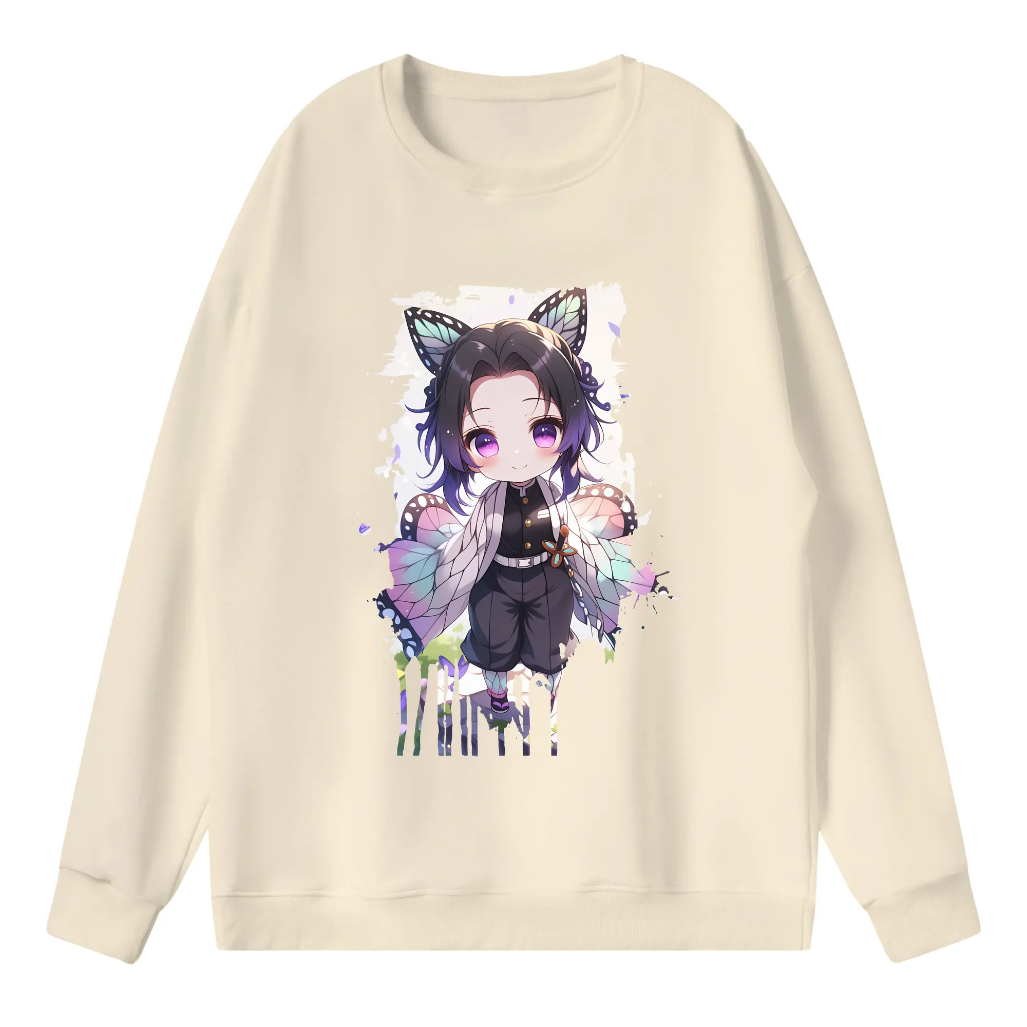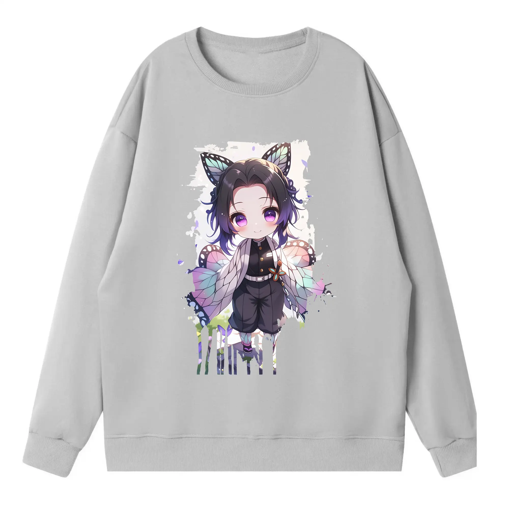 鬼滅の刃 グッズ,胡蝶 しのぶ - 高品質 クルーネック スウェット ・ コットン59% ポリエステル41% ・ ユニセックス 長袖 トレーナー ・ カジュアル デイリー スポーツ 散歩用