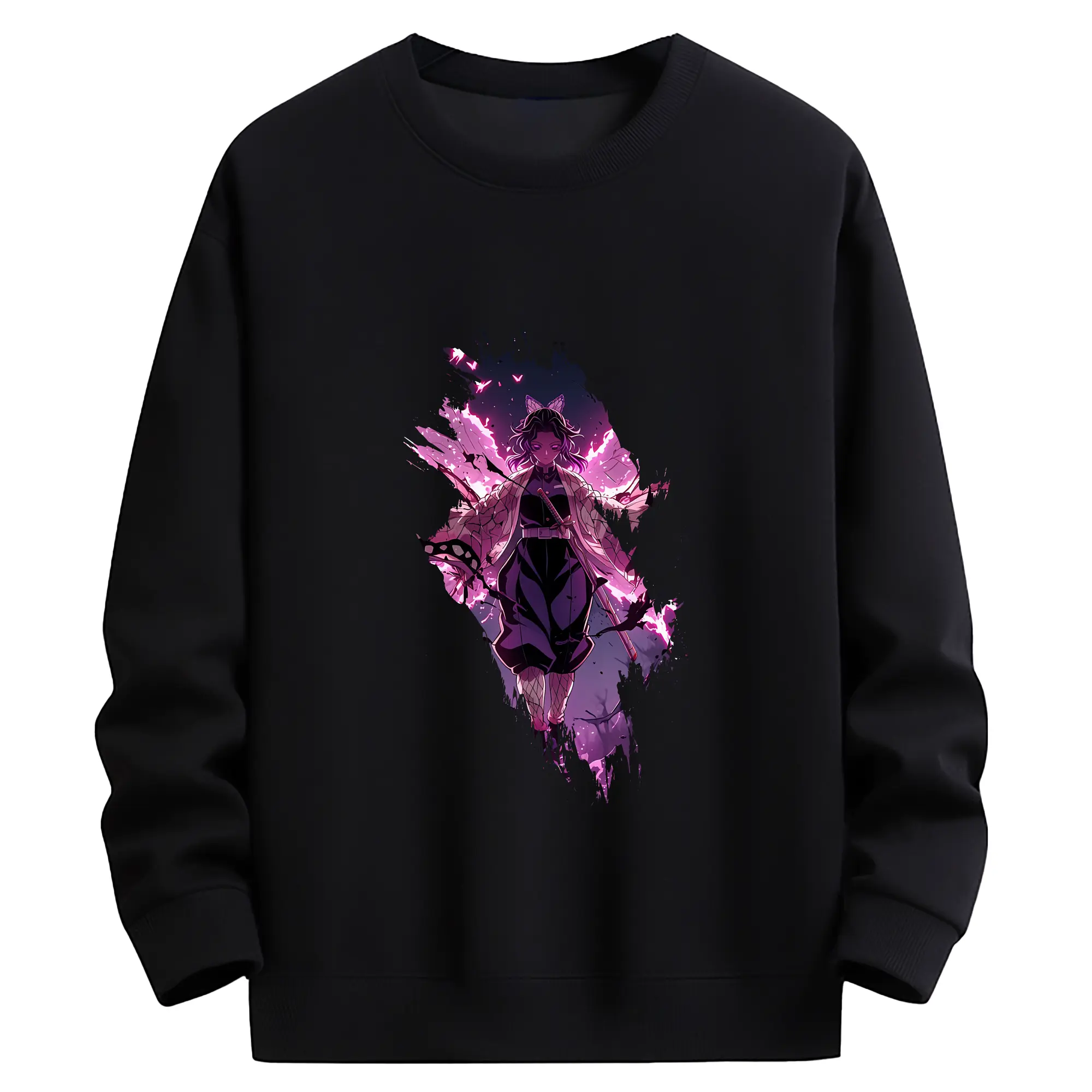 鬼滅の刃 グッズ,胡蝶 しのぶ - 高品質 クルーネック スウェット ・ コットン59% ポリエステル41% ・ ユニセックス 長袖 トレーナー ・ カジュアル デイリー スポーツ 散歩用