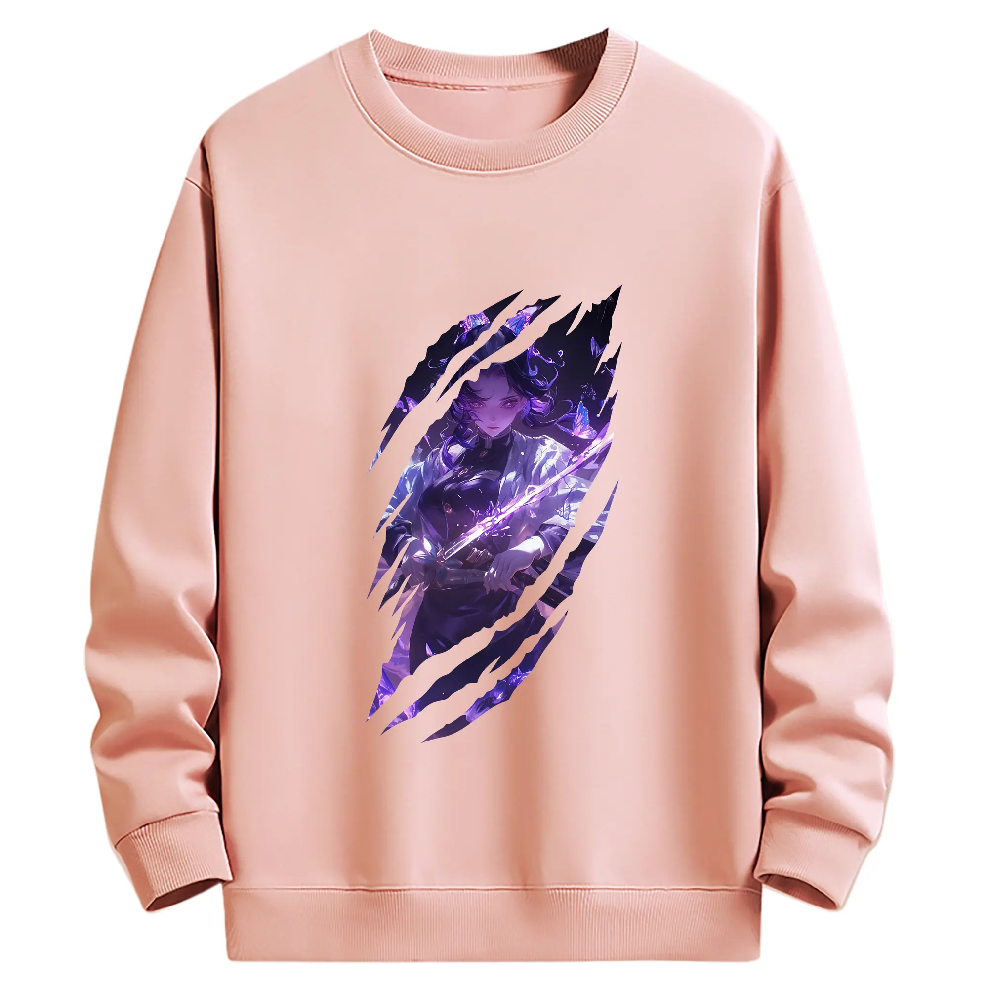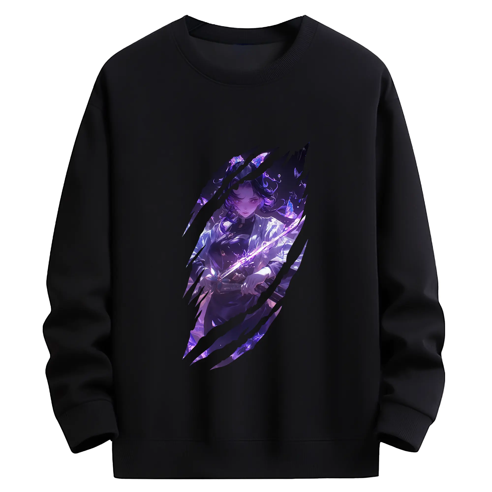 鬼滅の刃 グッズ,胡蝶 しのぶ - 高品質 クルーネック スウェット ・ コットン59% ポリエステル41% ・ ユニセックス 長袖 トレーナー ・ カジュアル デイリー スポーツ 散歩用