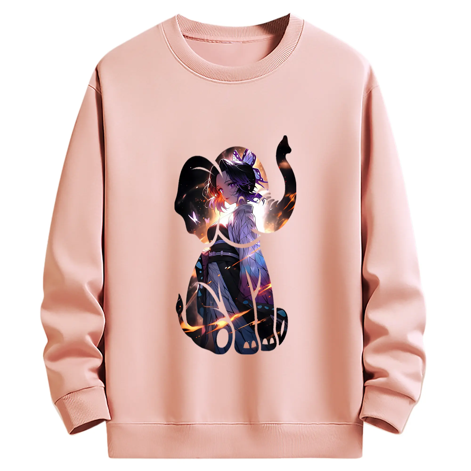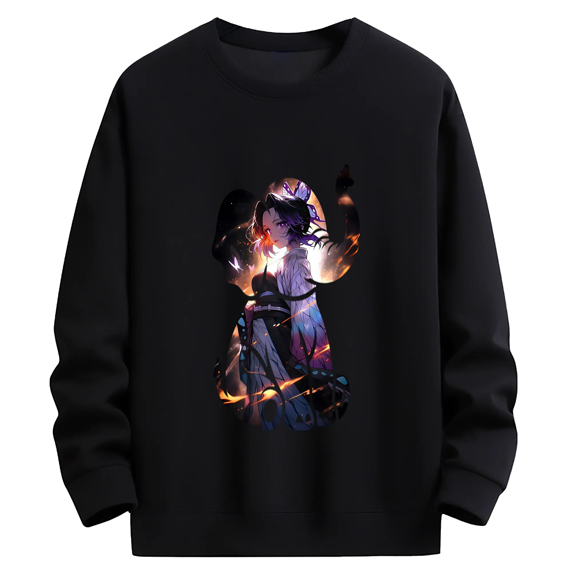 鬼滅の刃 グッズ,胡蝶 しのぶ - 高品質 クルーネック スウェット ・ コットン59% ポリエステル41% ・ ユニセックス 長袖 トレーナー ・ カジュアル デイリー スポーツ 散歩用