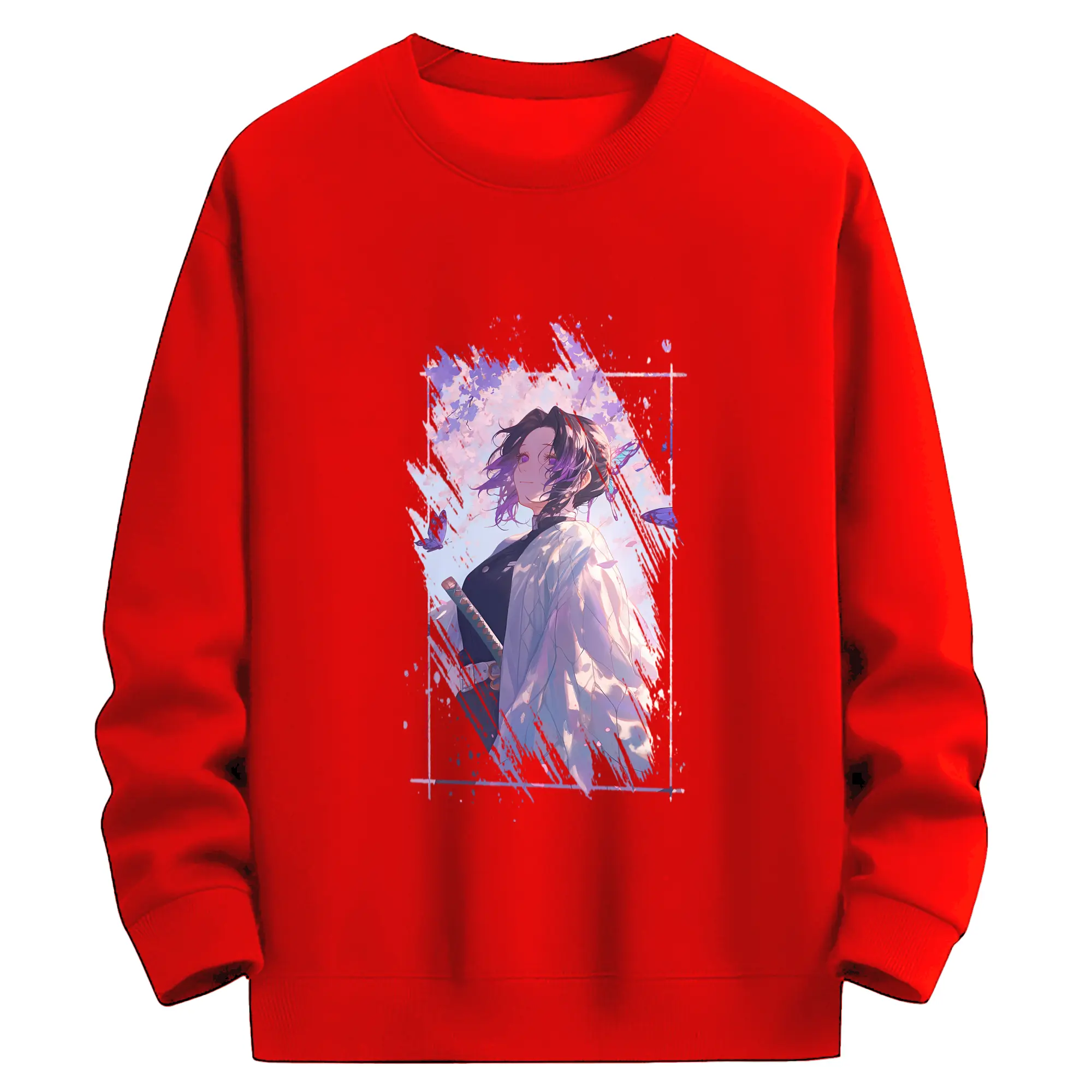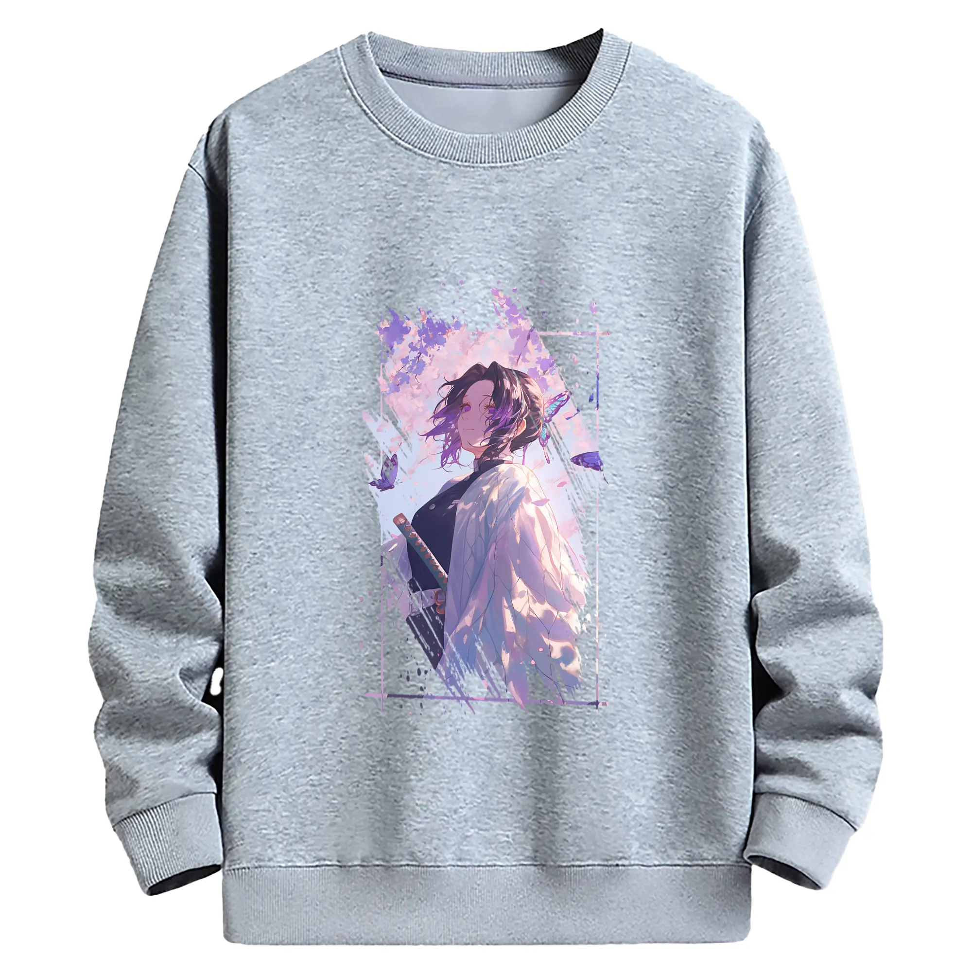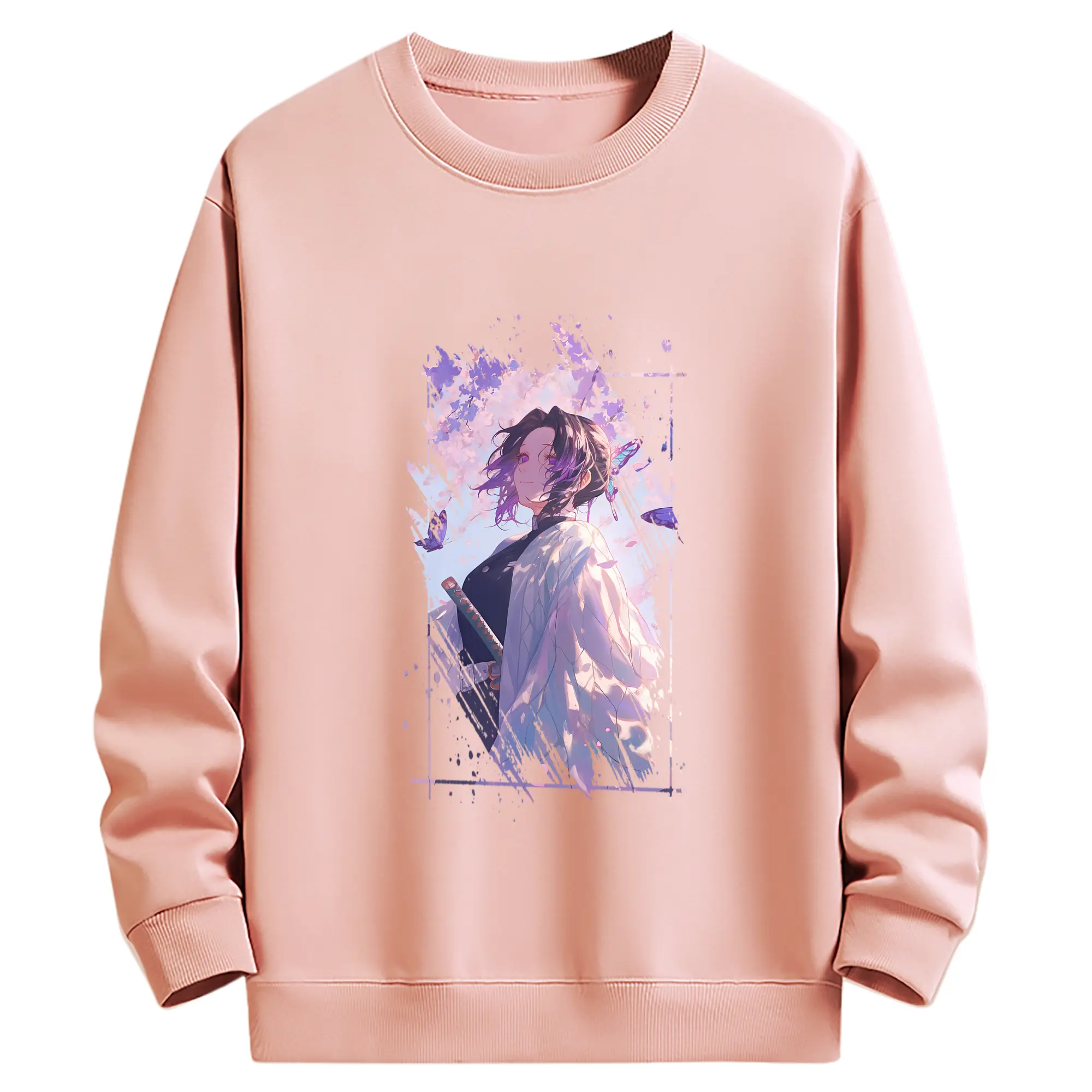 鬼滅の刃 グッズ,胡蝶 しのぶ - 高品質 クルーネック スウェット ・ コットン59% ポリエステル41% ・ ユニセックス 長袖 トレーナー ・ カジュアル デイリー スポーツ 散歩用