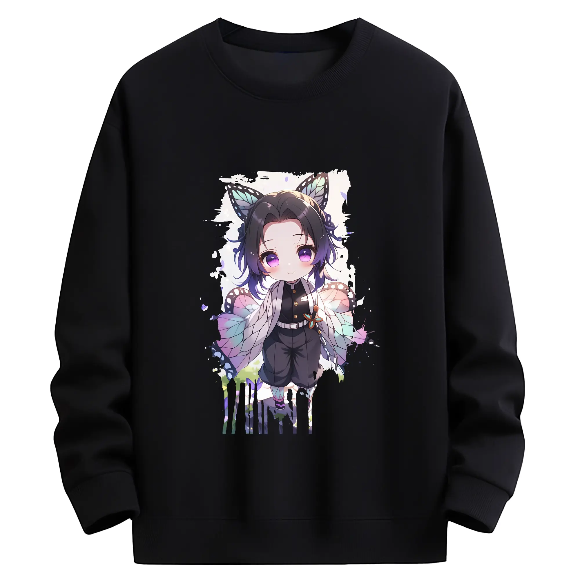 鬼滅の刃 グッズ,胡蝶 しのぶ - 高品質 クルーネック スウェット ・ コットン59% ポリエステル41% ・ ユニセックス 長袖 トレーナー ・ カジュアル デイリー スポーツ 散歩用