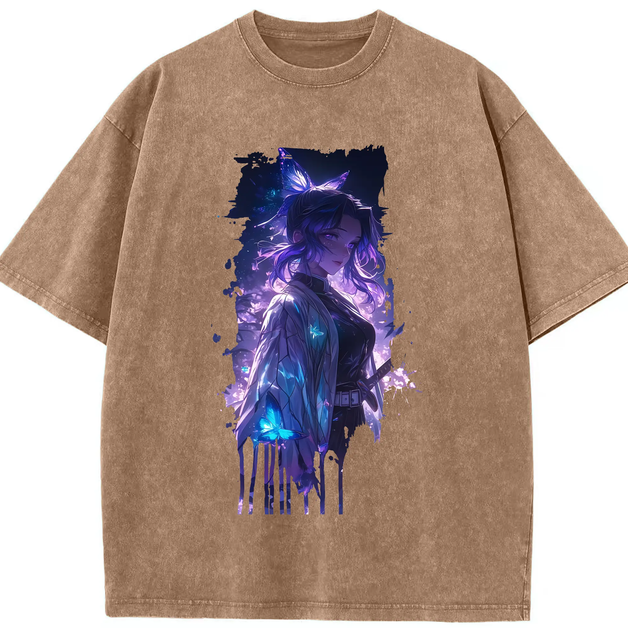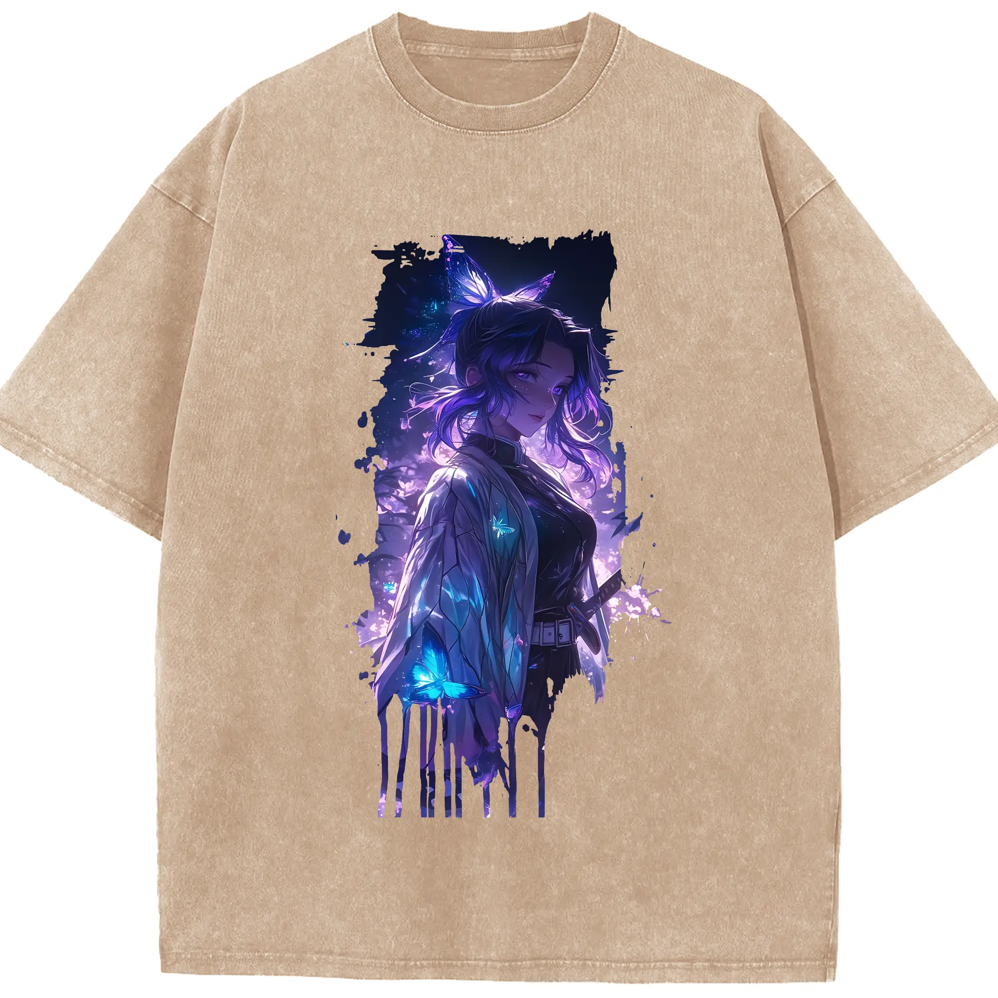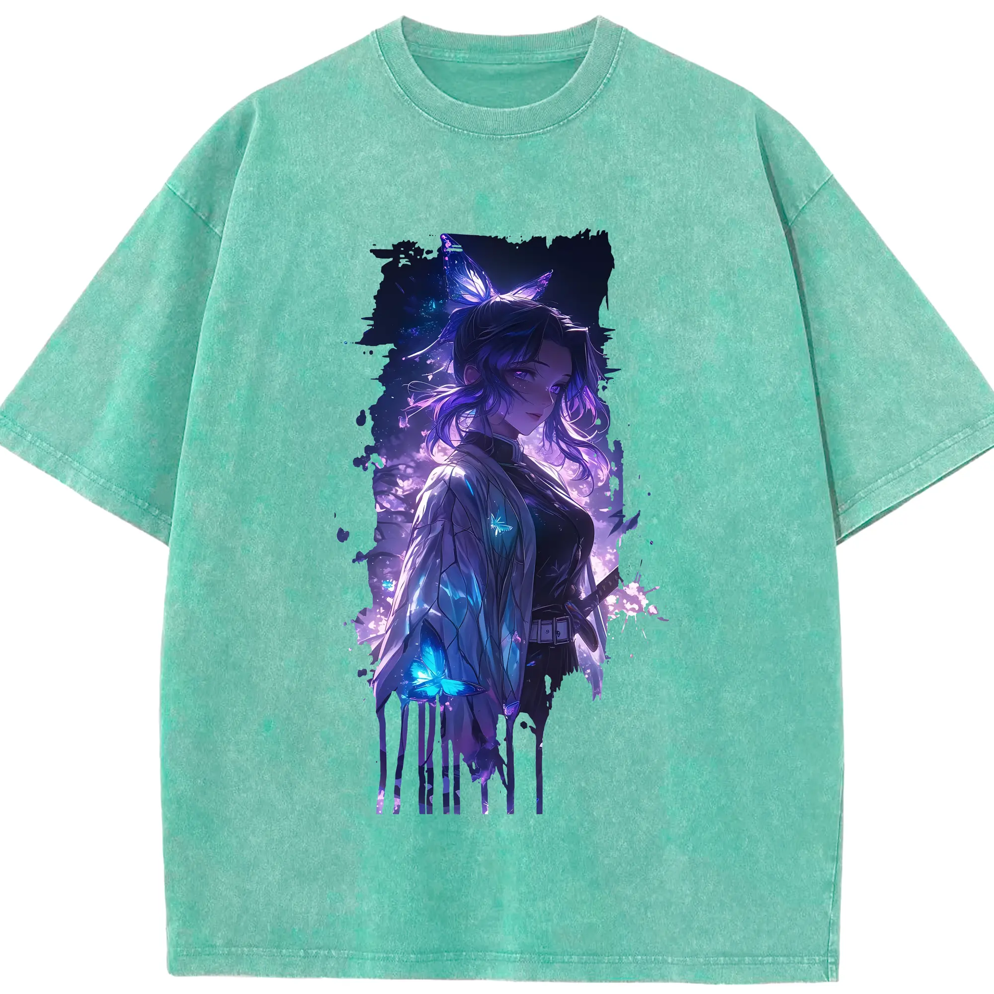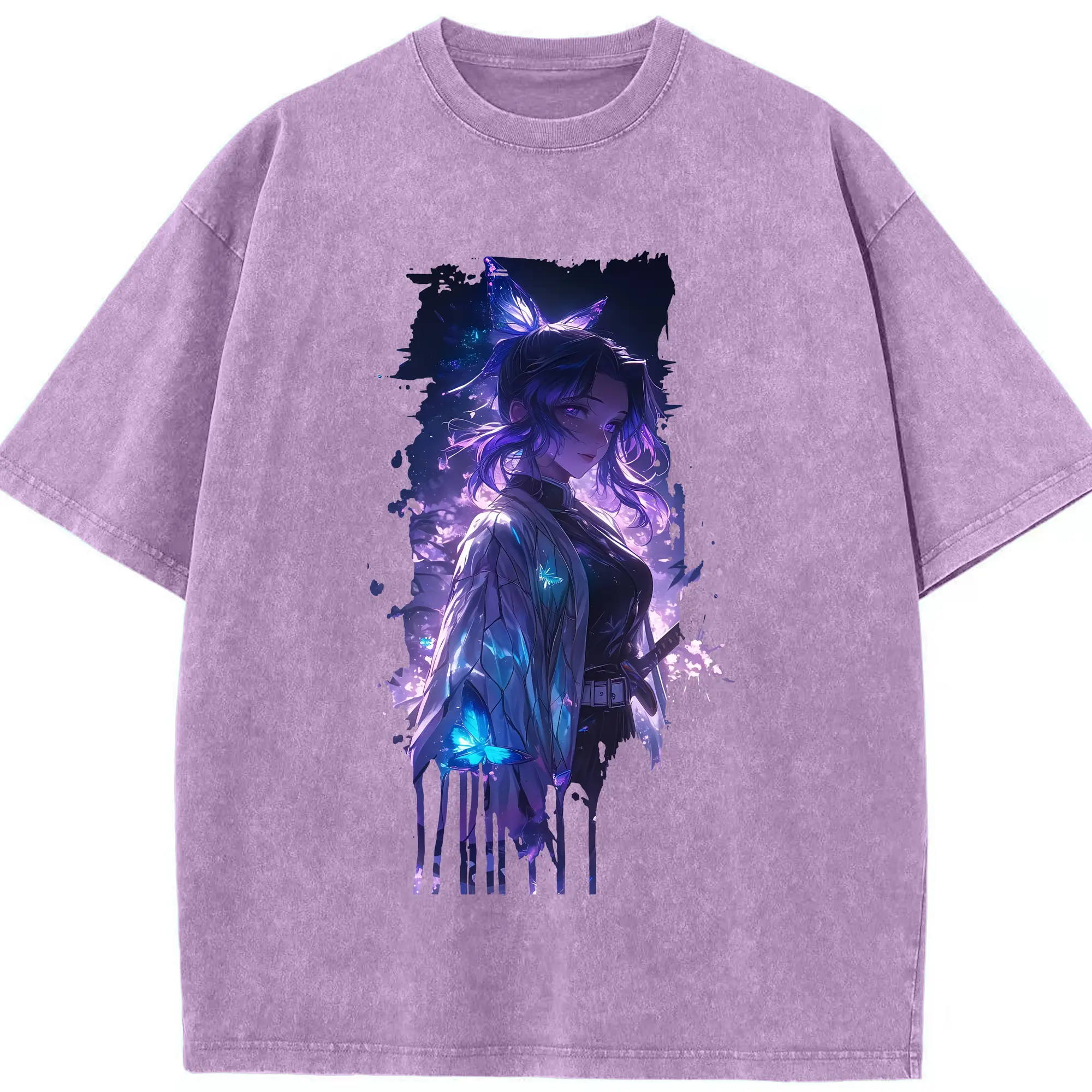 鬼滅の刃 グッズ,胡蝶 しのぶ - 綿100% 半袖Tシャツ ・ フロントプリント ・ 快適 通気性 ・ 日常使い 散歩 スポーツ用