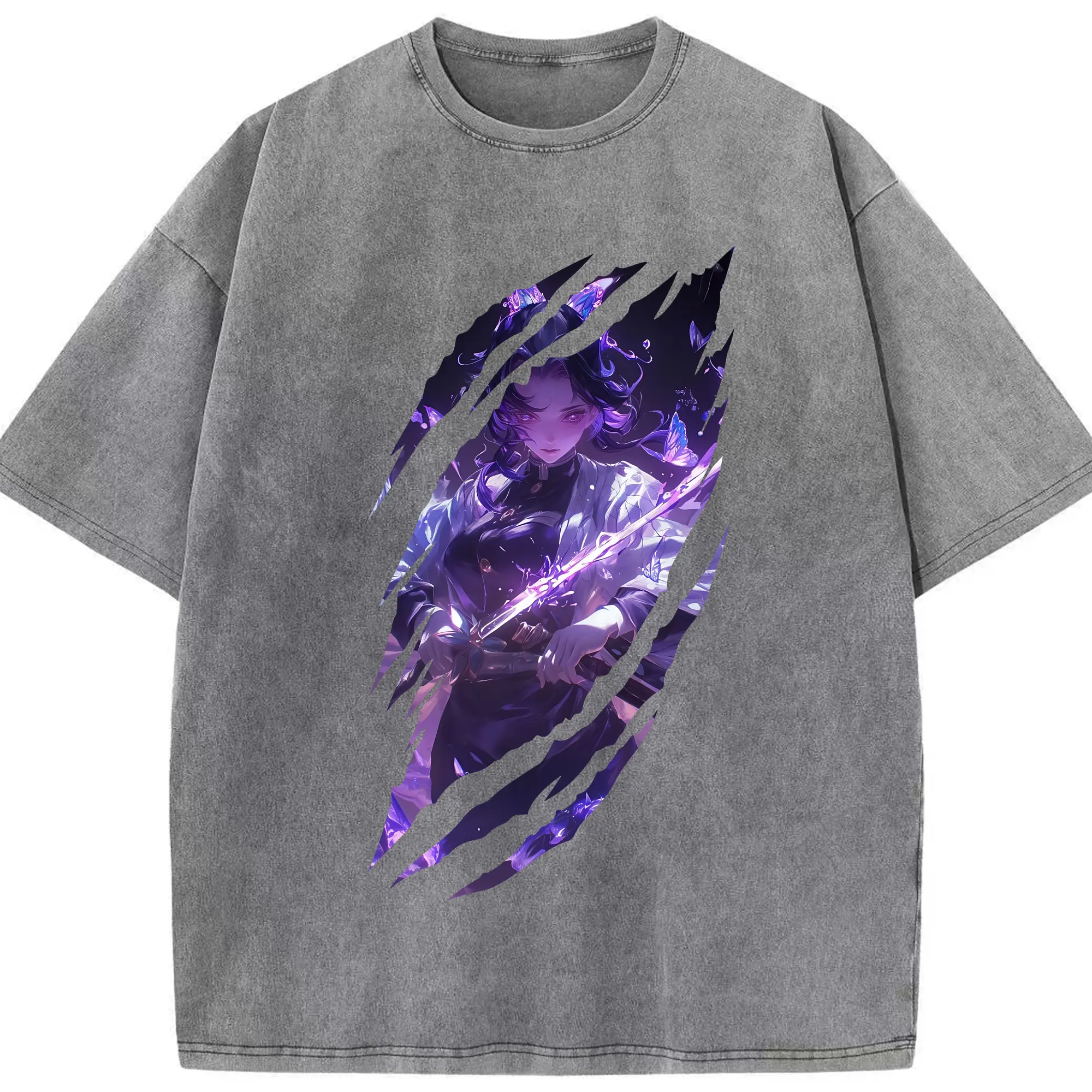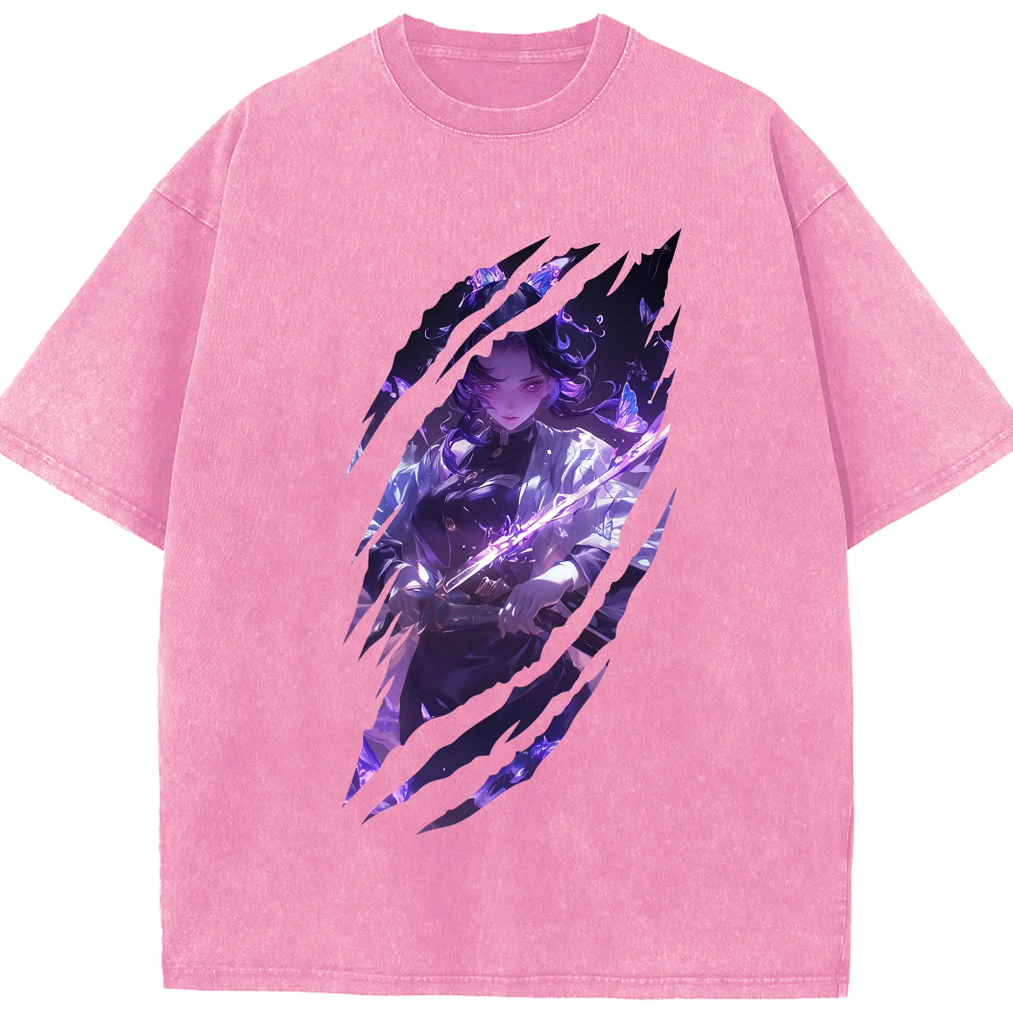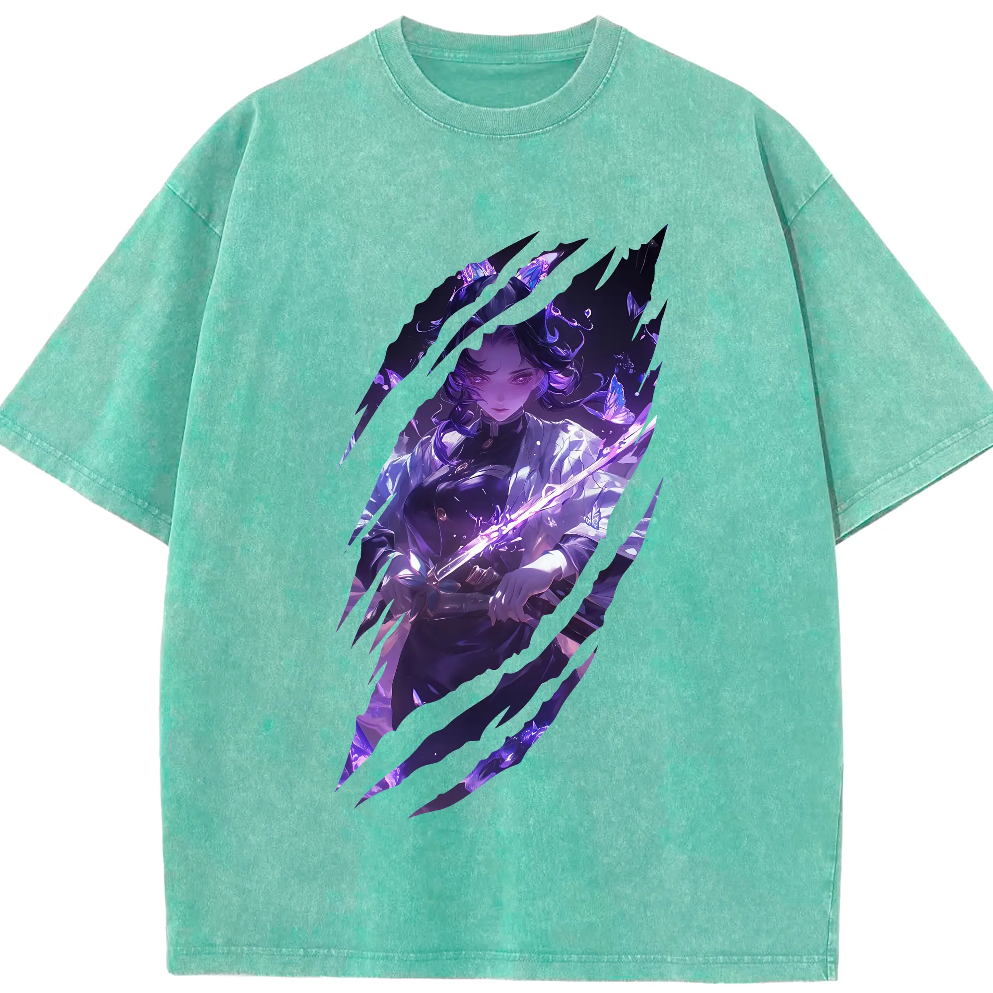 鬼滅の刃 グッズ,胡蝶 しのぶ - 綿100% 半袖Tシャツ ・ フロントプリント ・ 快適 通気性 ・ 日常使い 散歩 スポーツ用