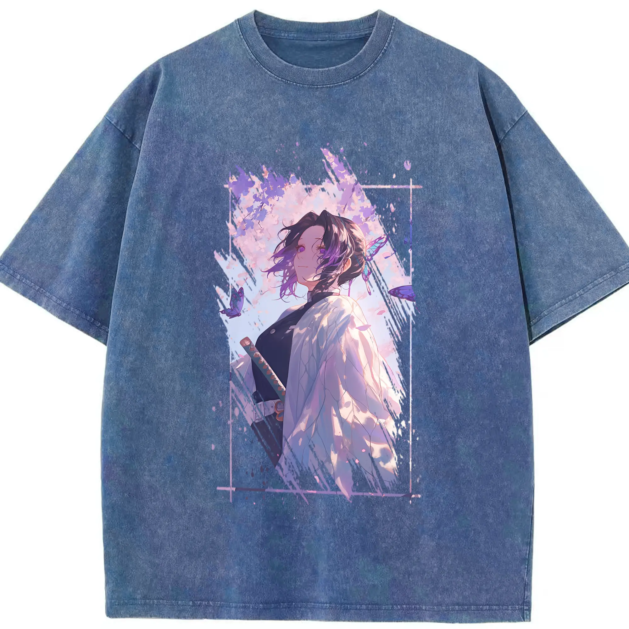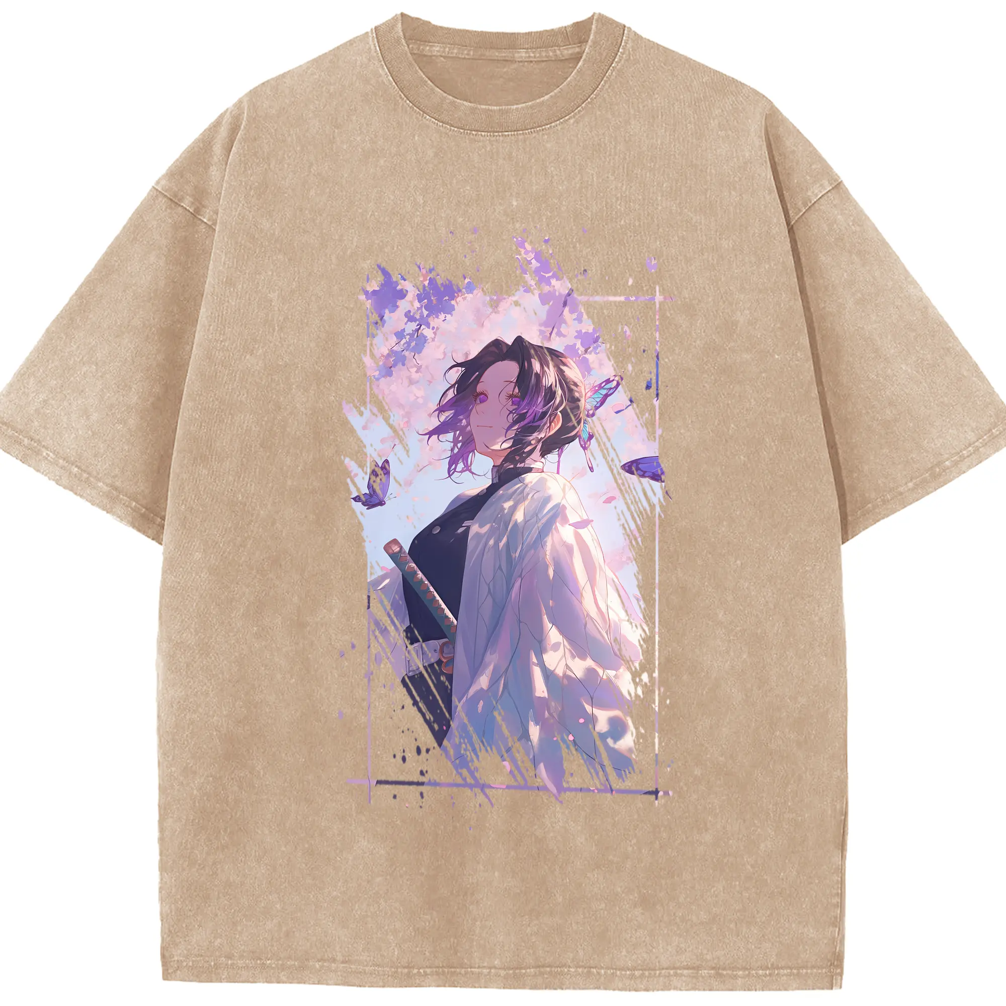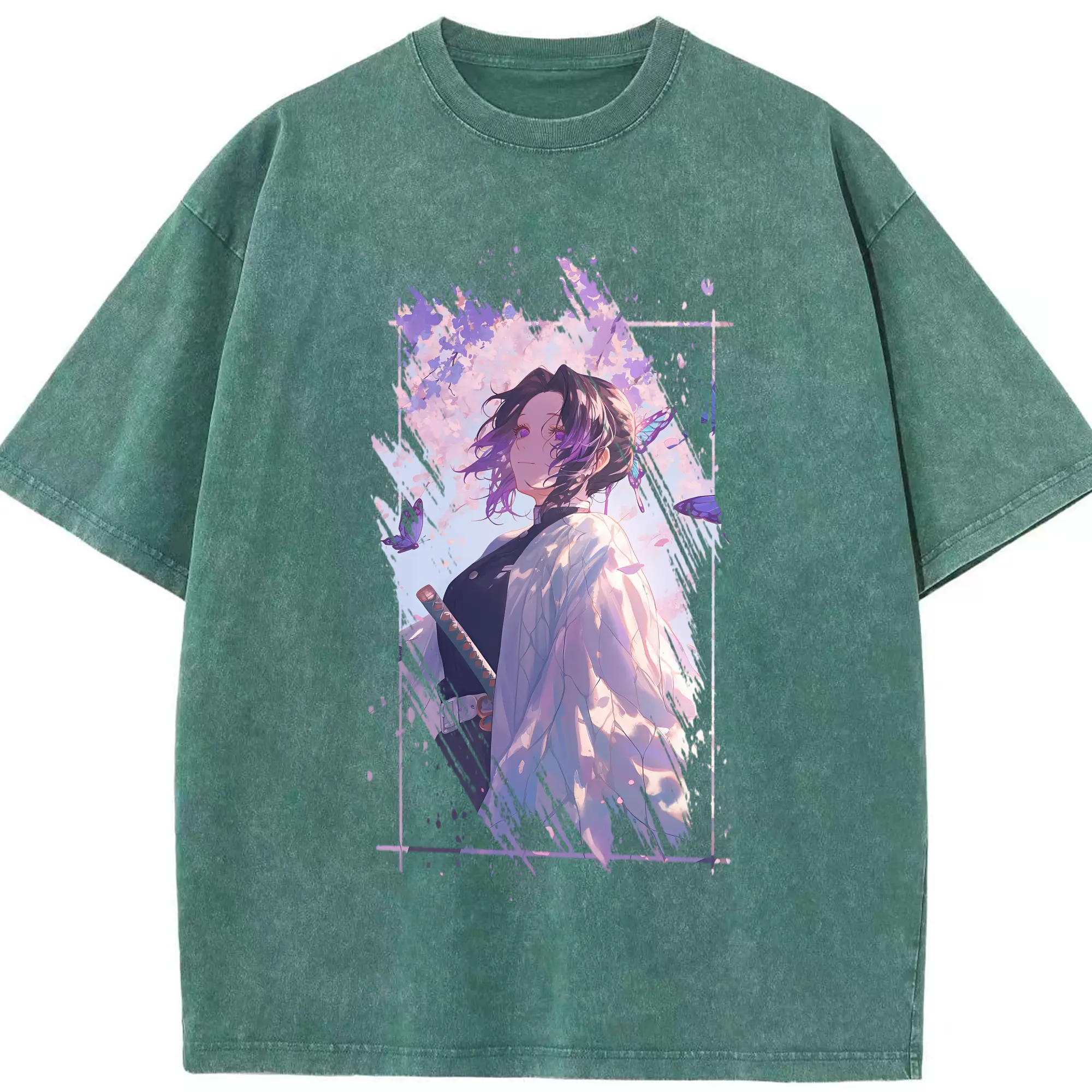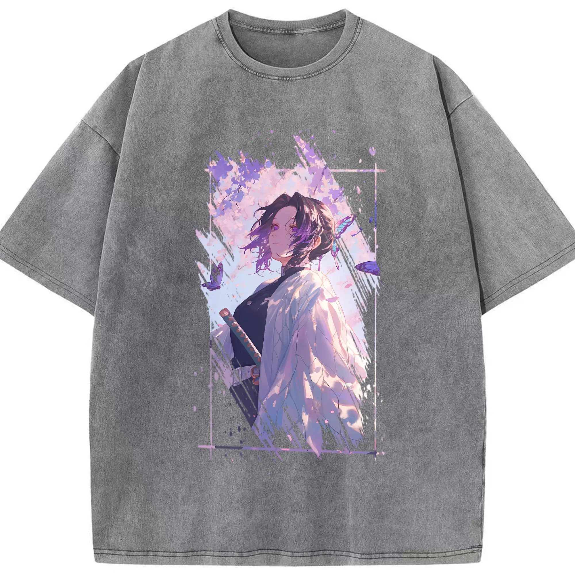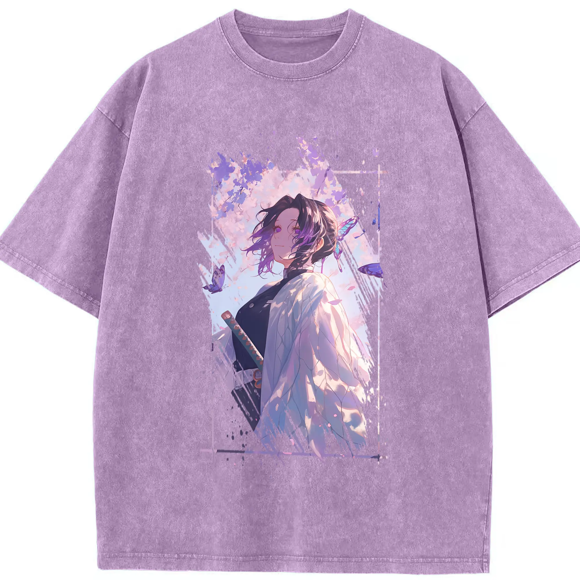 鬼滅の刃 グッズ,胡蝶 しのぶ - 綿100% 半袖Tシャツ ・ フロントプリント ・ 快適 通気性 ・ 日常使い 散歩 スポーツ用