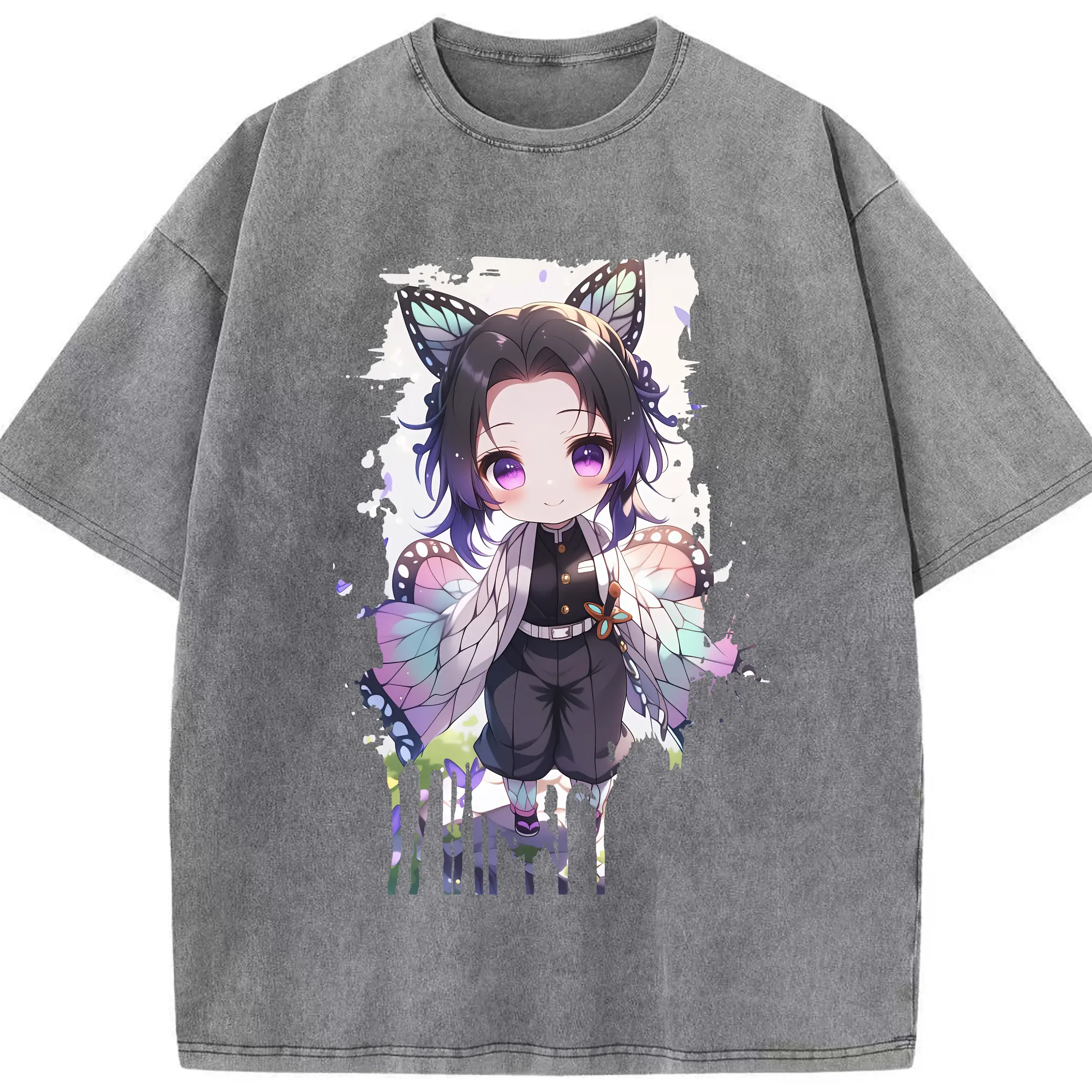 鬼滅の刃 グッズ,胡蝶 しのぶ - 綿100% 半袖Tシャツ ・ フロントプリント ・ 快適 通気性 ・ 日常使い 散歩 スポーツ用
