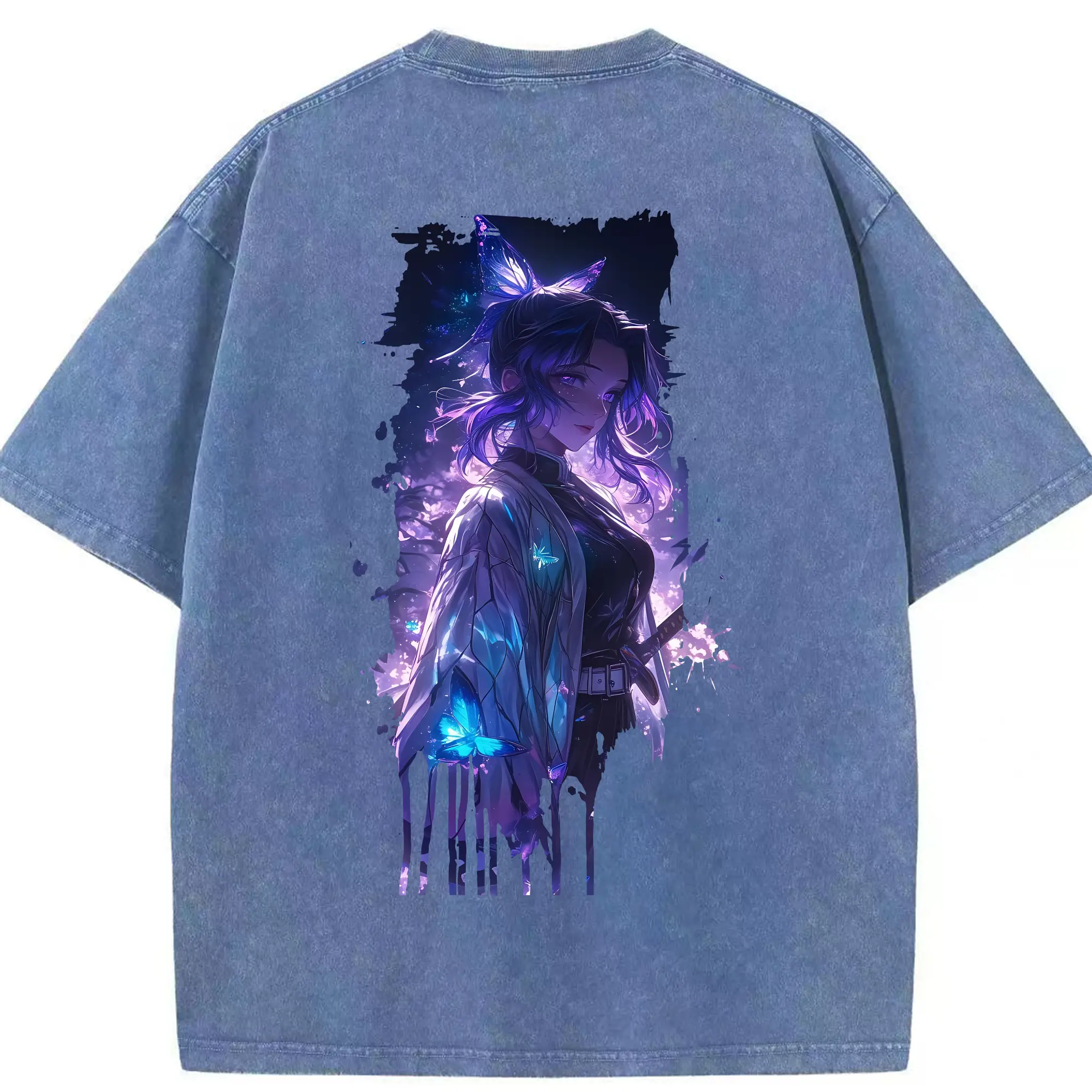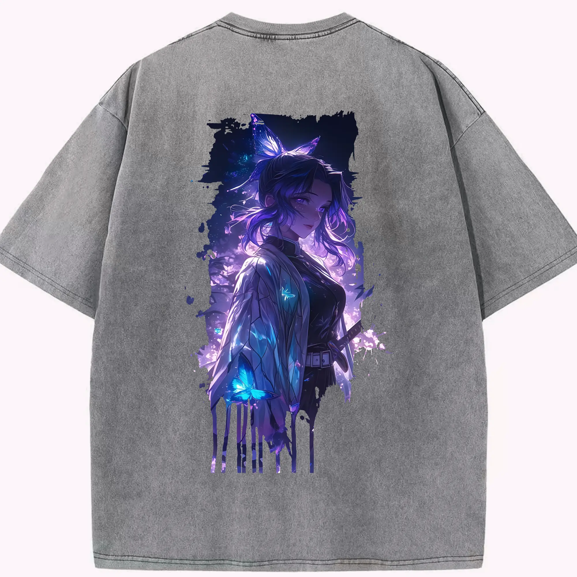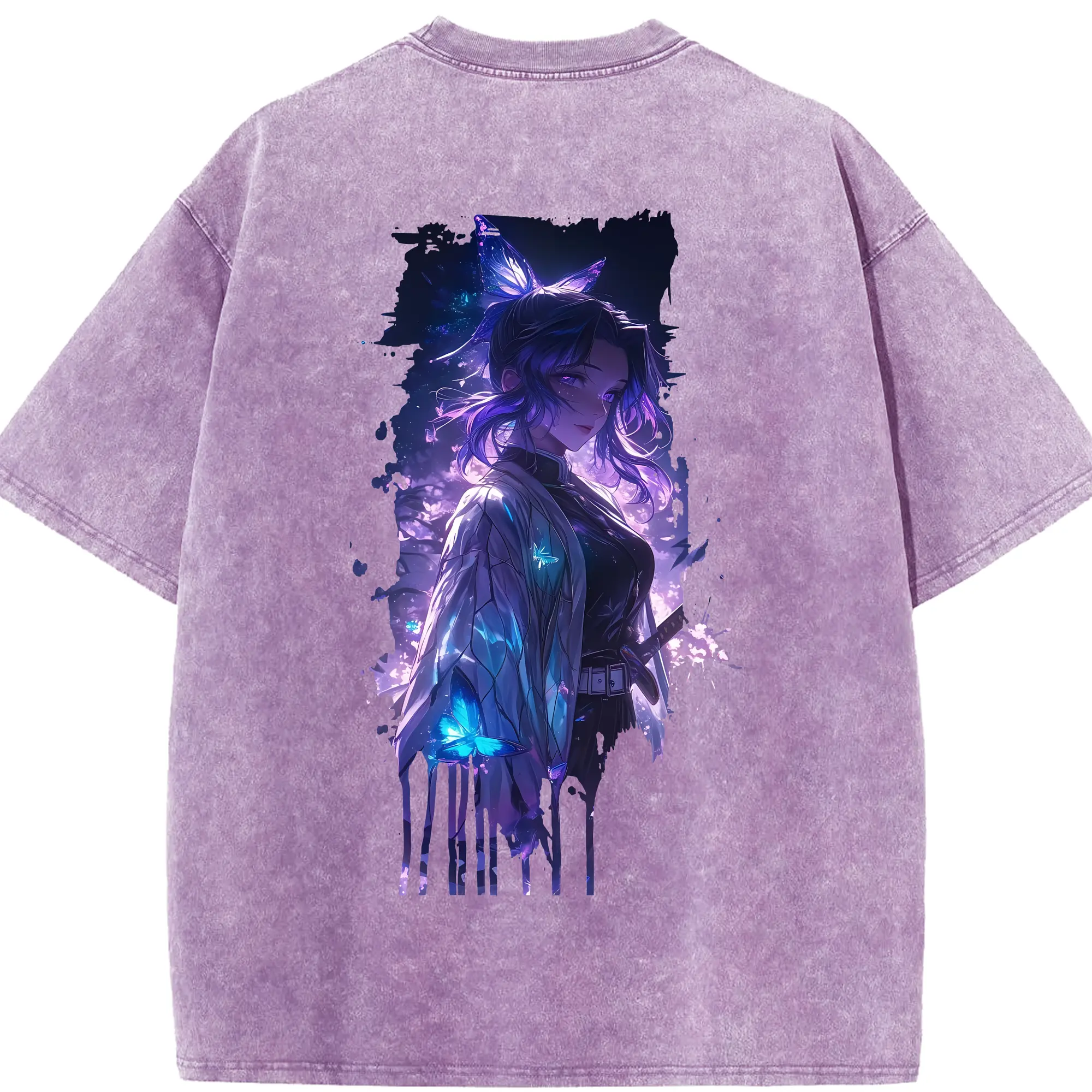 鬼滅の刃 グッズ,胡蝶 しのぶ - 綿100% 半袖Tシャツ ・ バックプリント ・ 快適 通気性 ・ 日常使い 散歩 スポーツ用