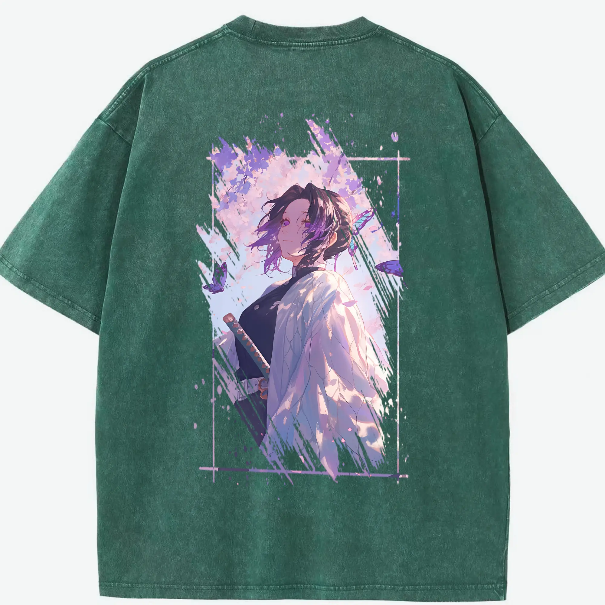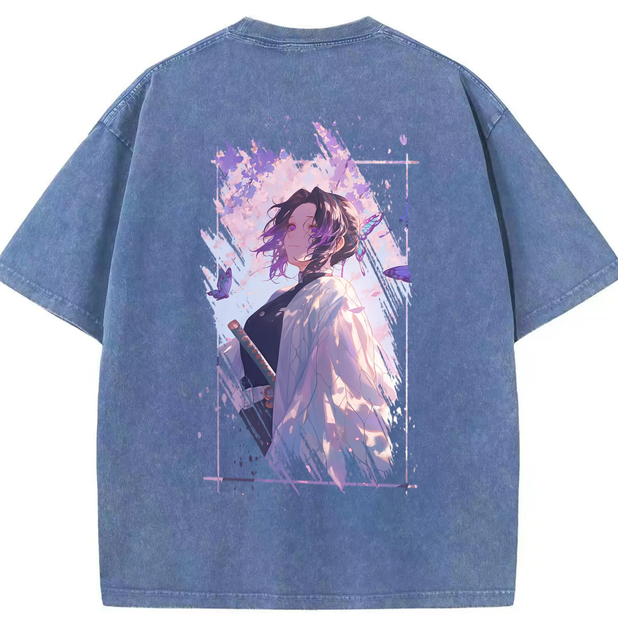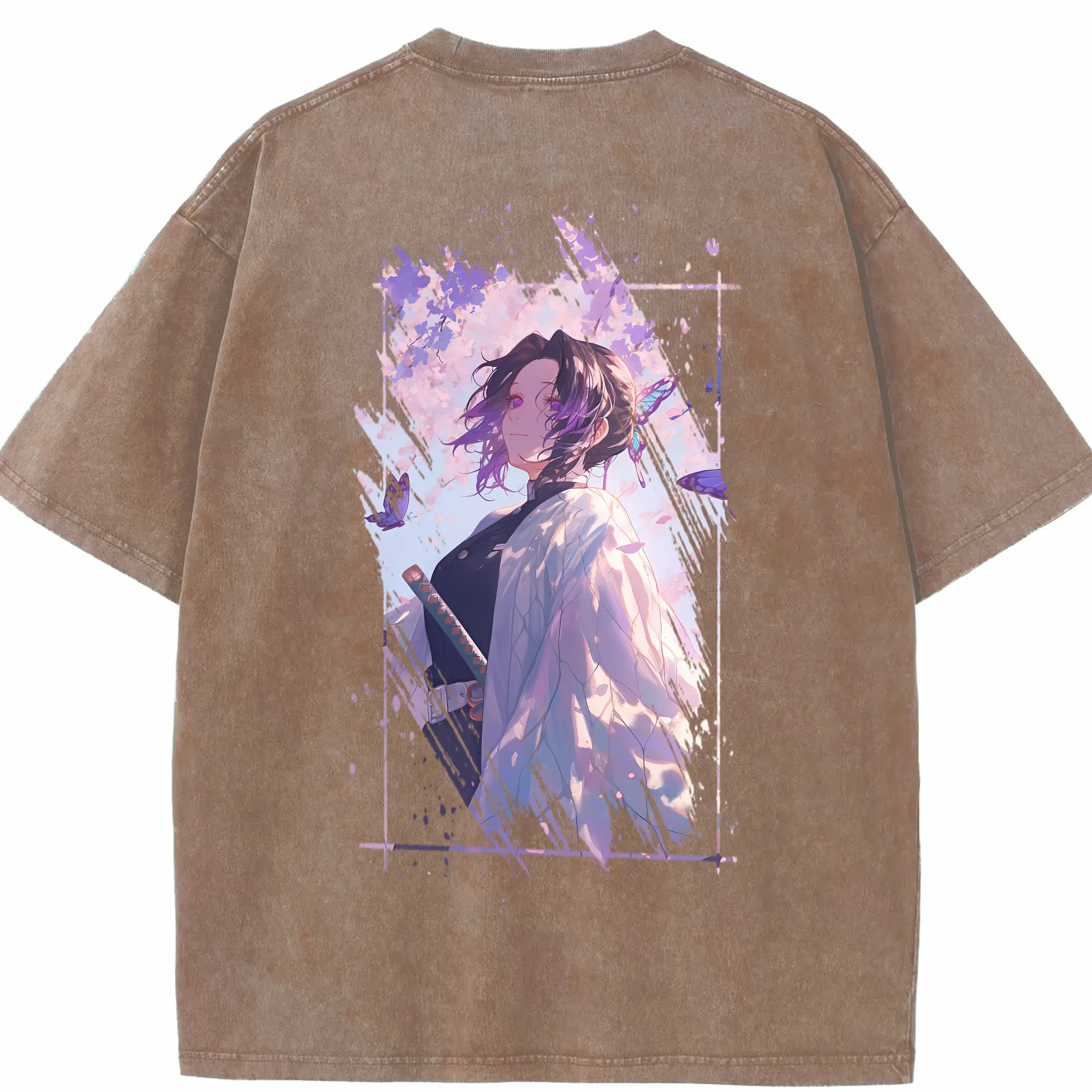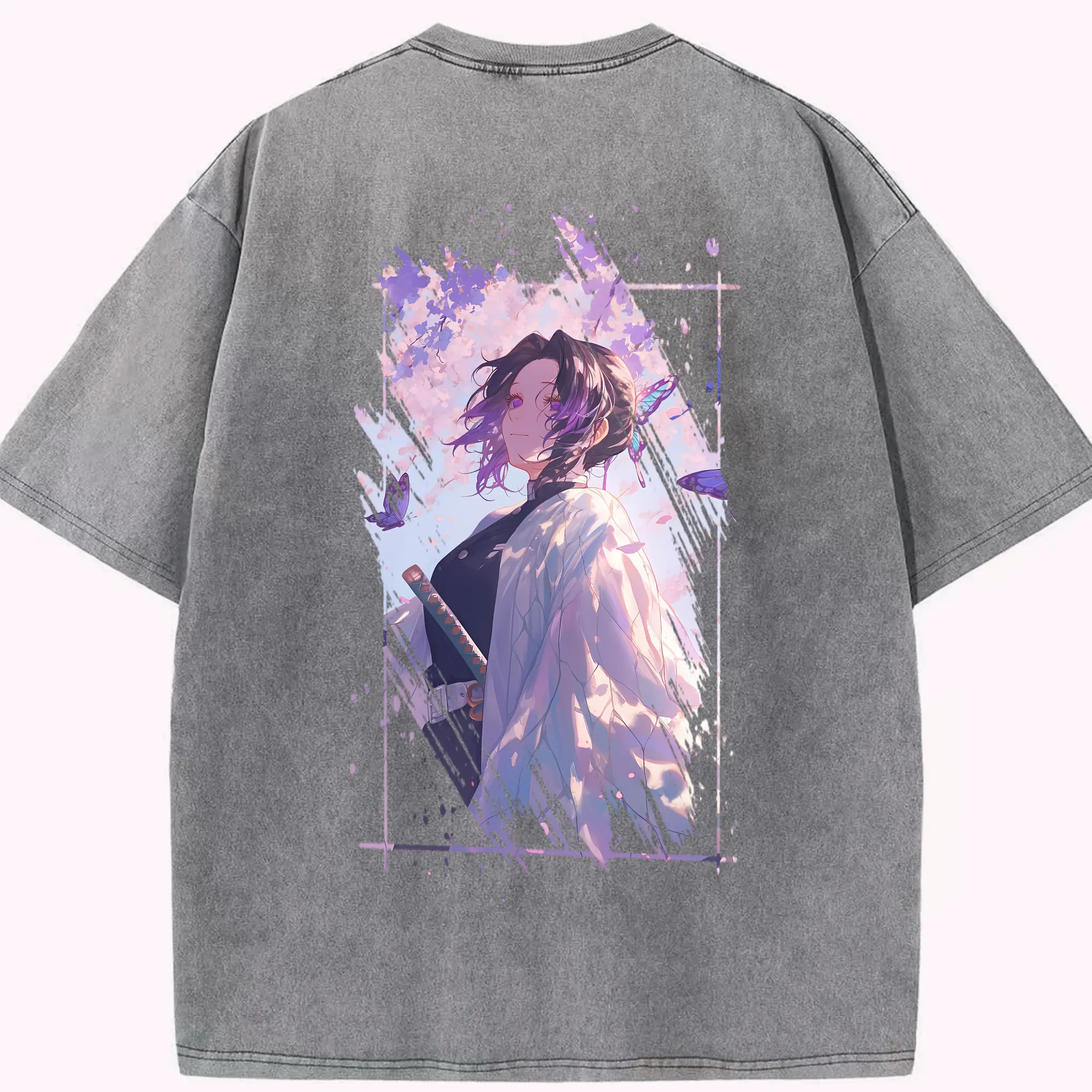 鬼滅の刃 グッズ,伊黒 小芭内 - 綿100% ヴィンテージ風 半袖Tシャツ ・ 背面プリント ・ 柔らか肌触り ・ 通気性 快適 ・ スポーツ カジュアル 外出用