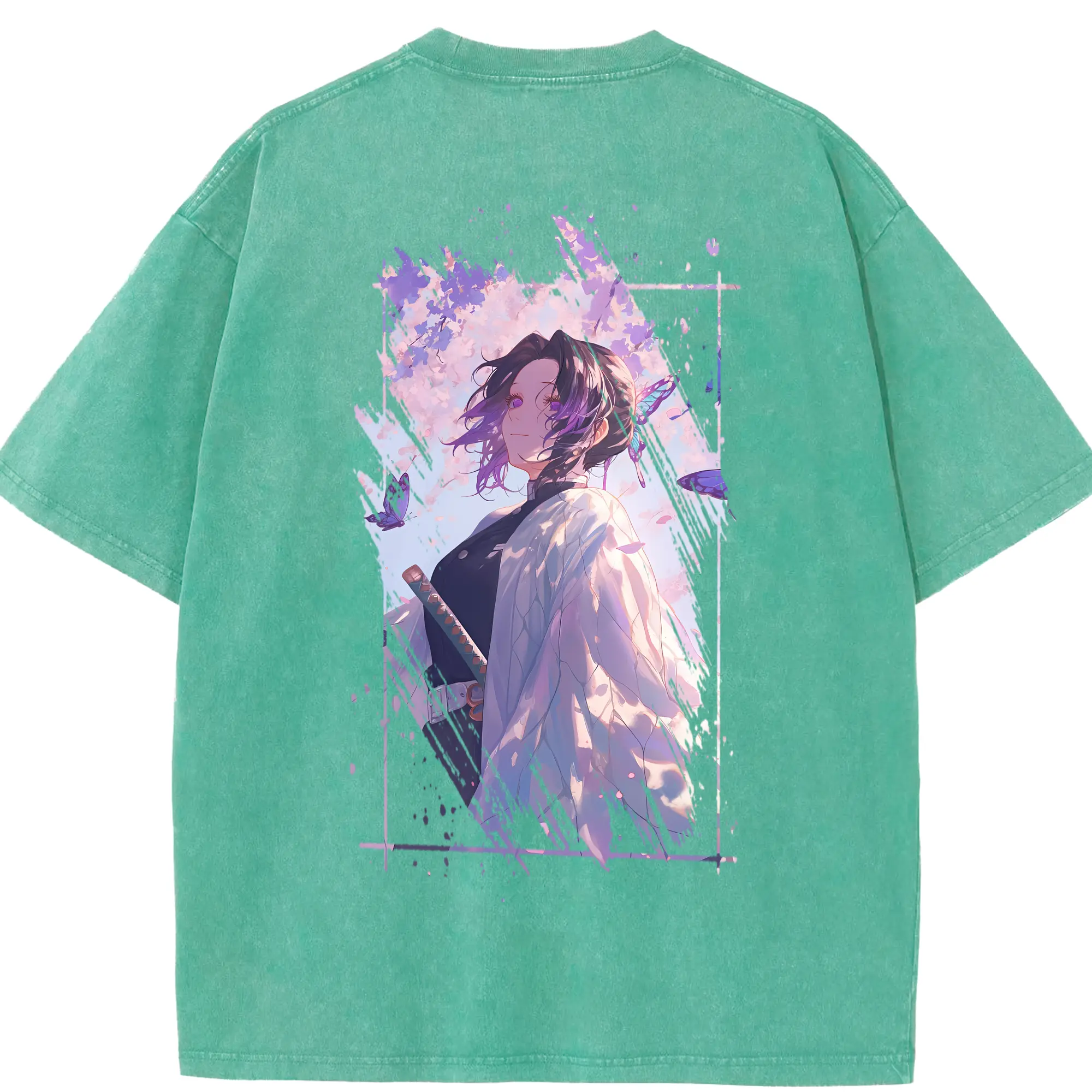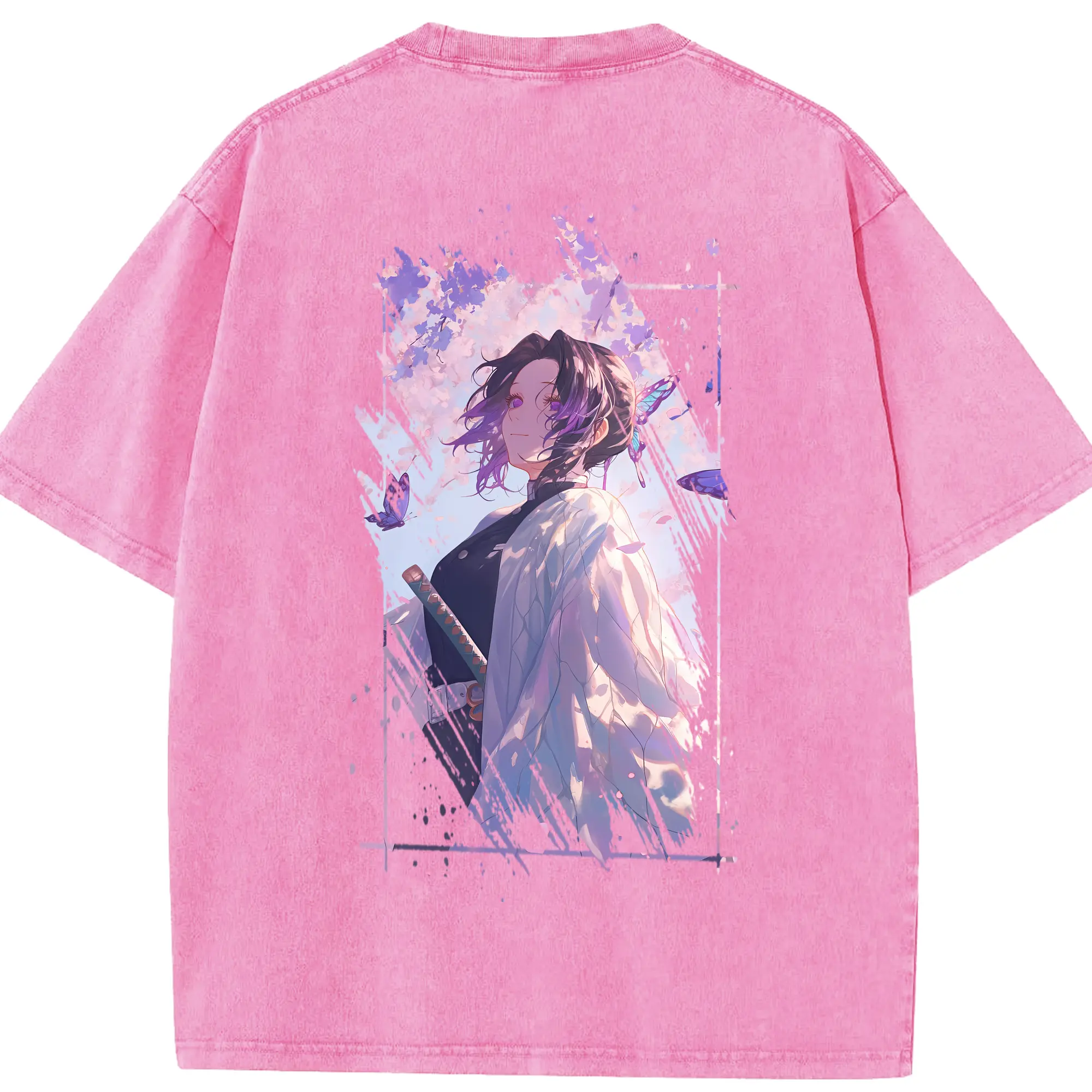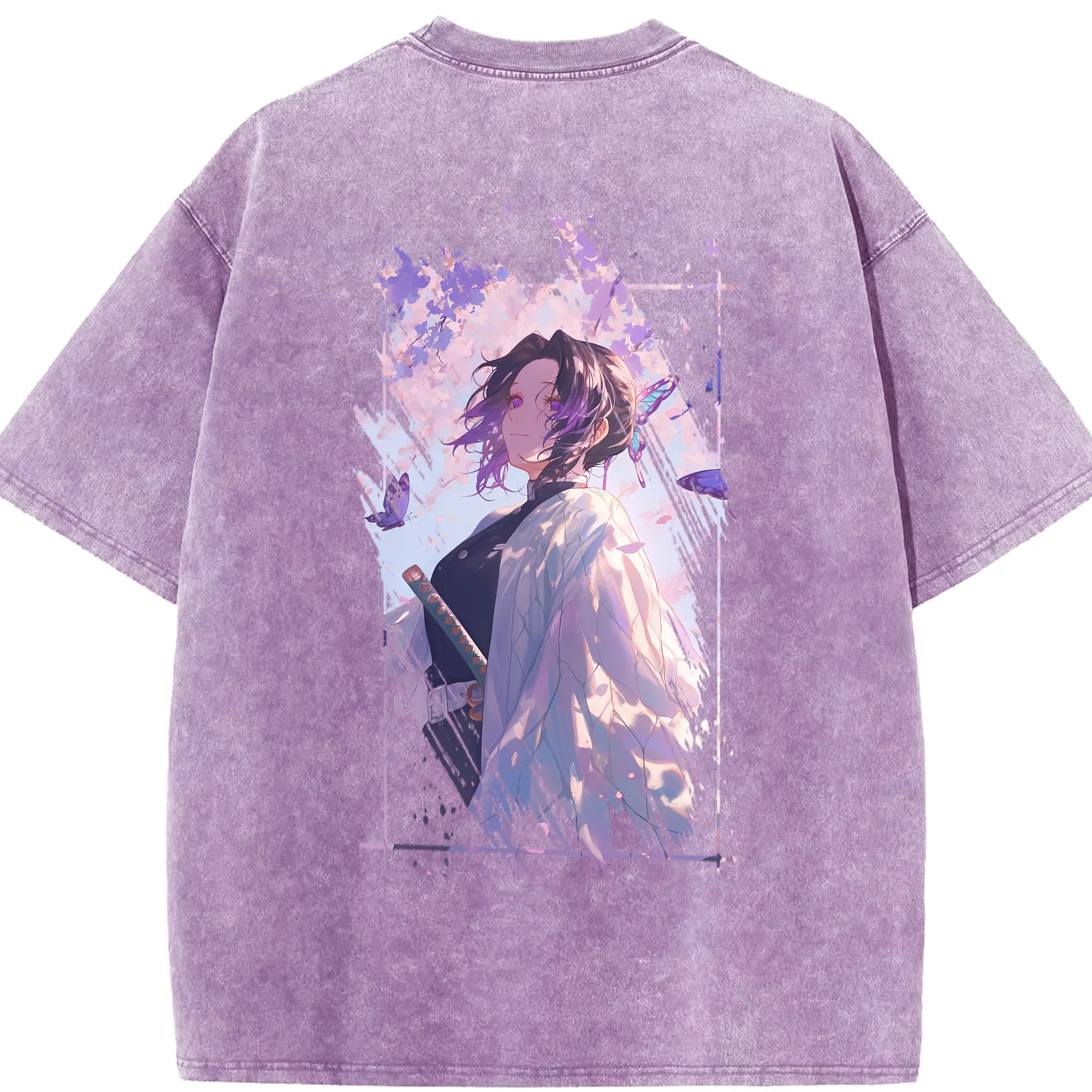鬼滅の刃 グッズ,胡蝶 しのぶ - 綿100% 半袖Tシャツ ・ バックプリント ・ 快適 通気性 ・ 日常使い 散歩 スポーツ用