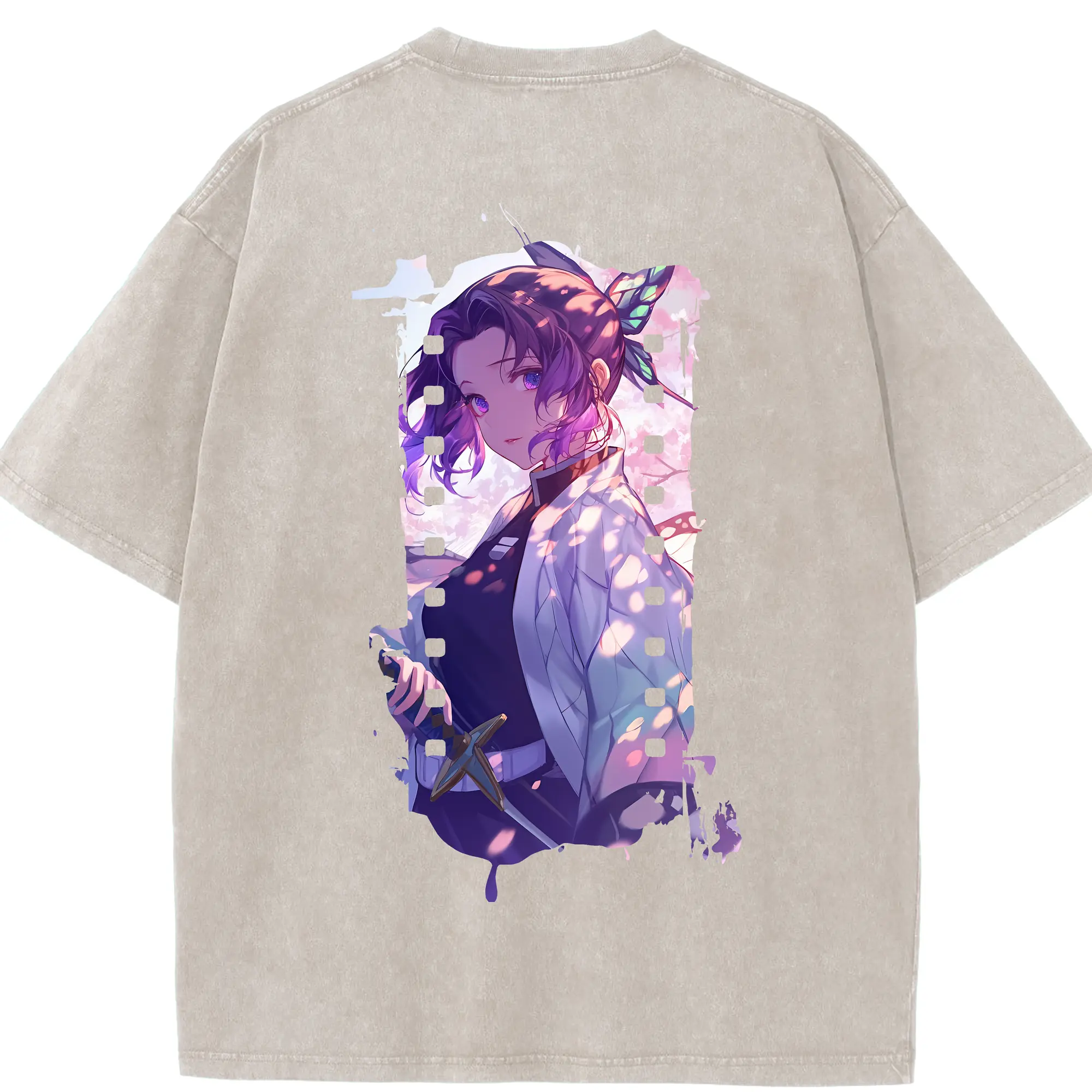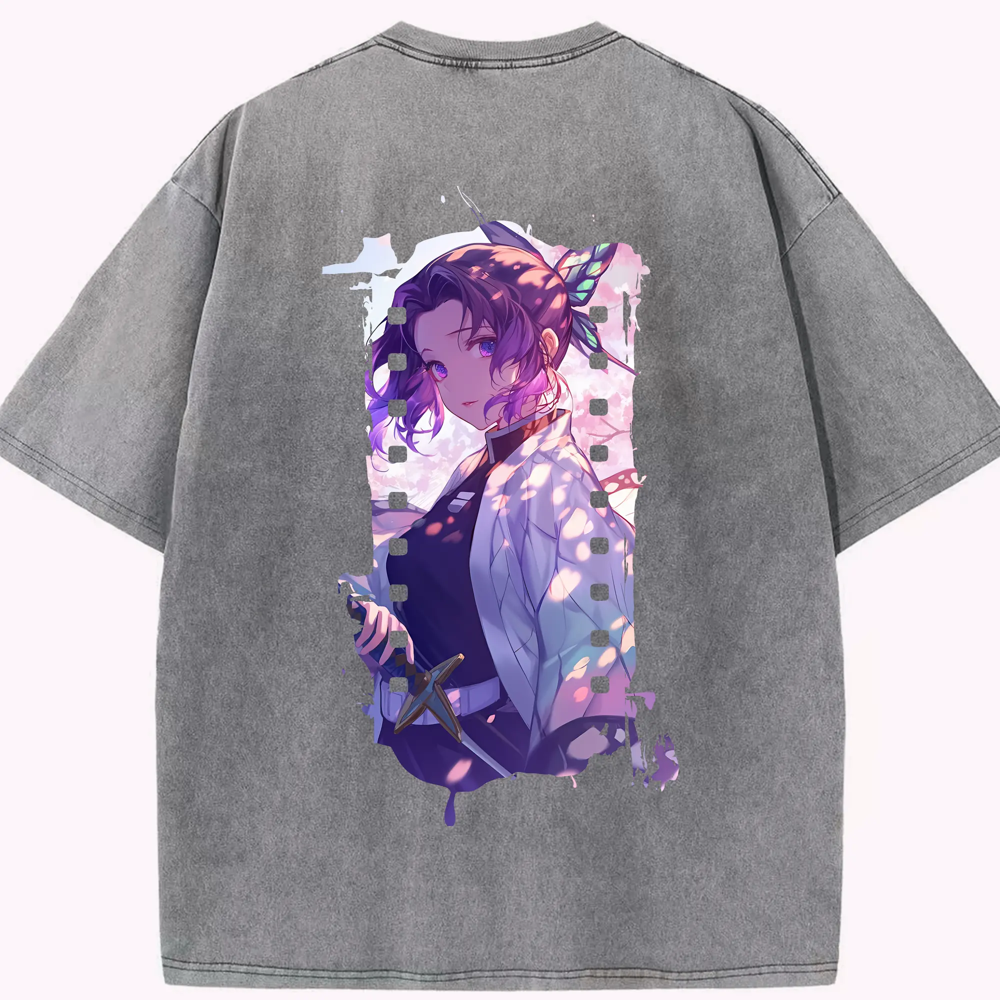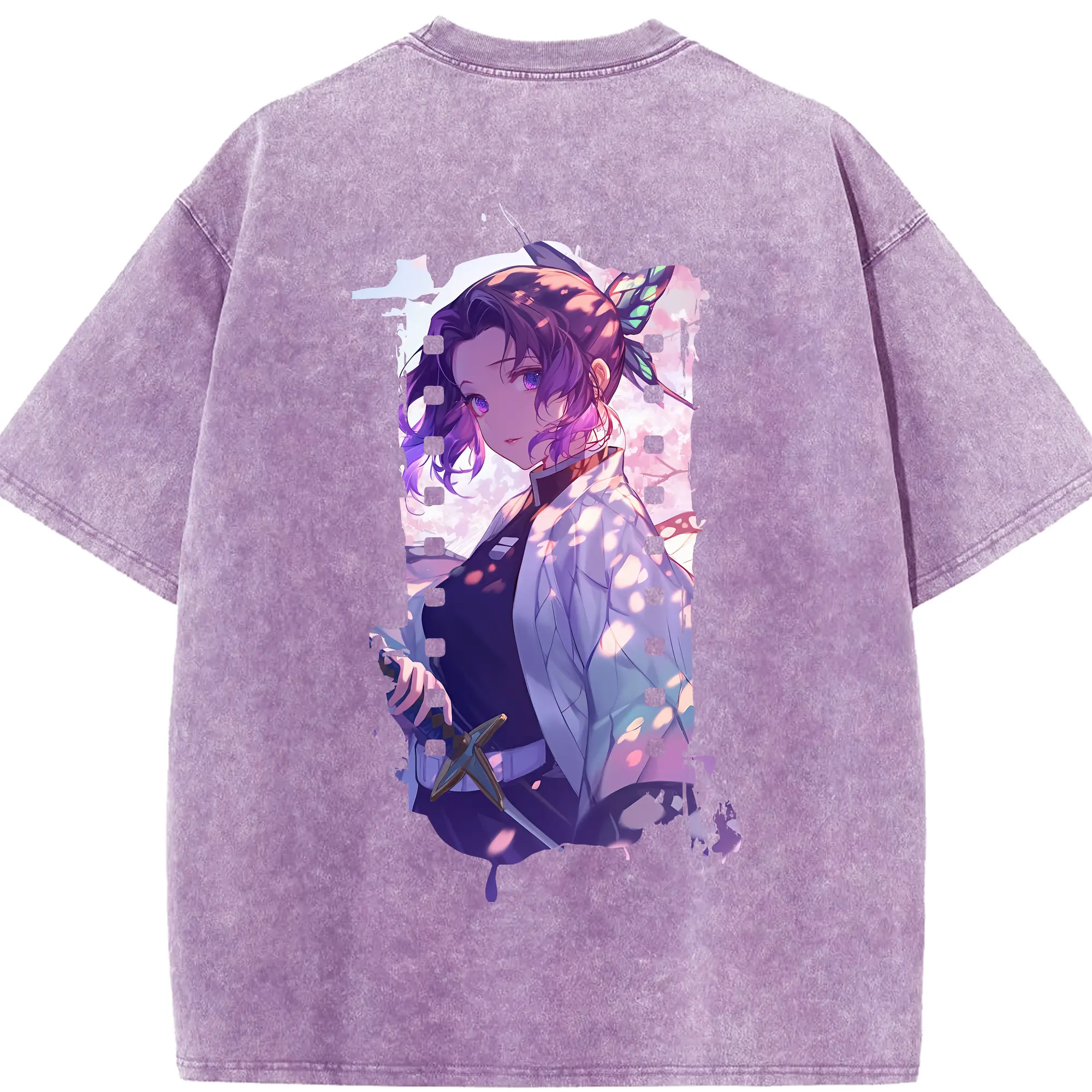 鬼滅の刃 グッズ,胡蝶 しのぶ - 綿100% 半袖Tシャツ ・ フロントプリント ・ 快適 通気性 ・ 日常使い 散歩 スポーツ用