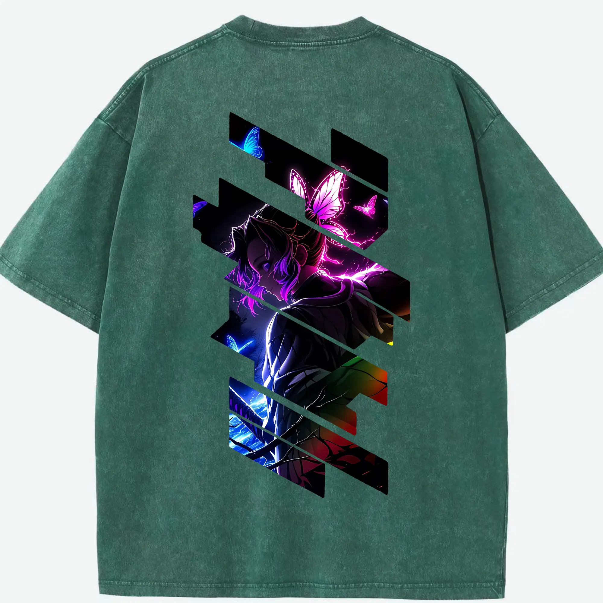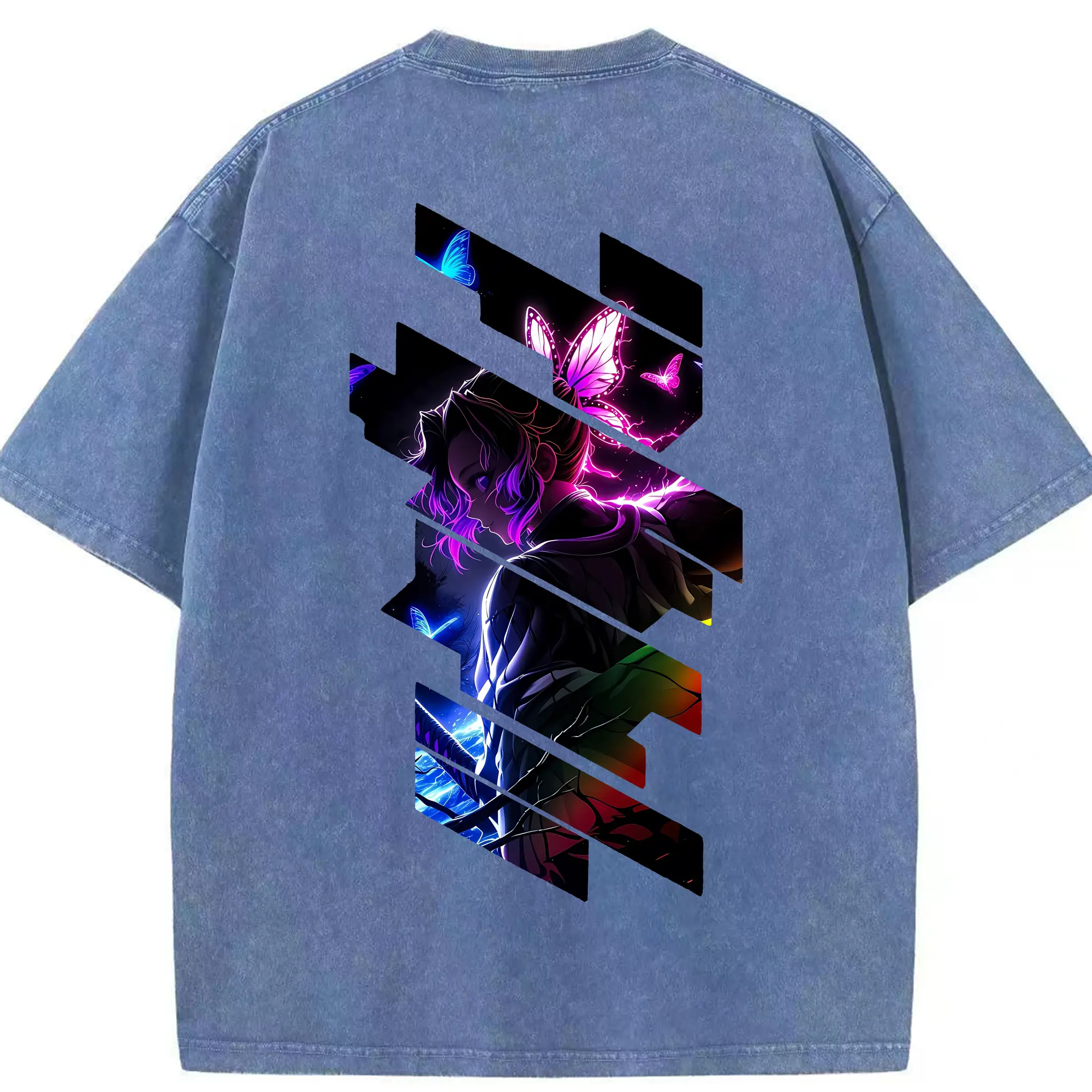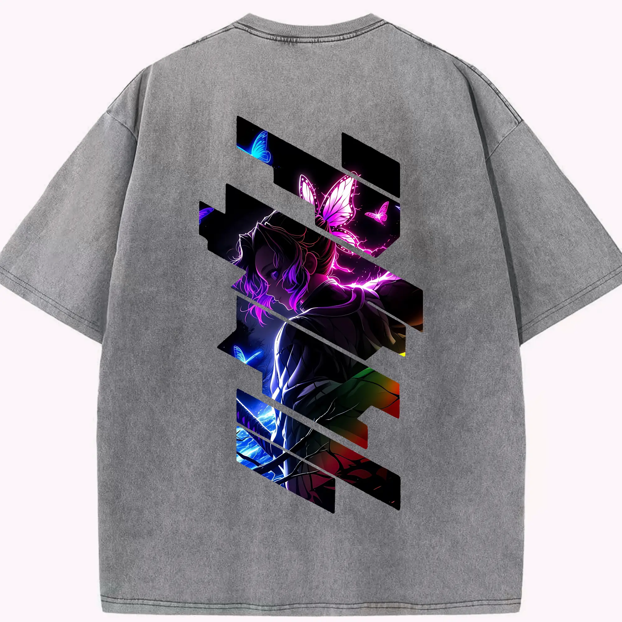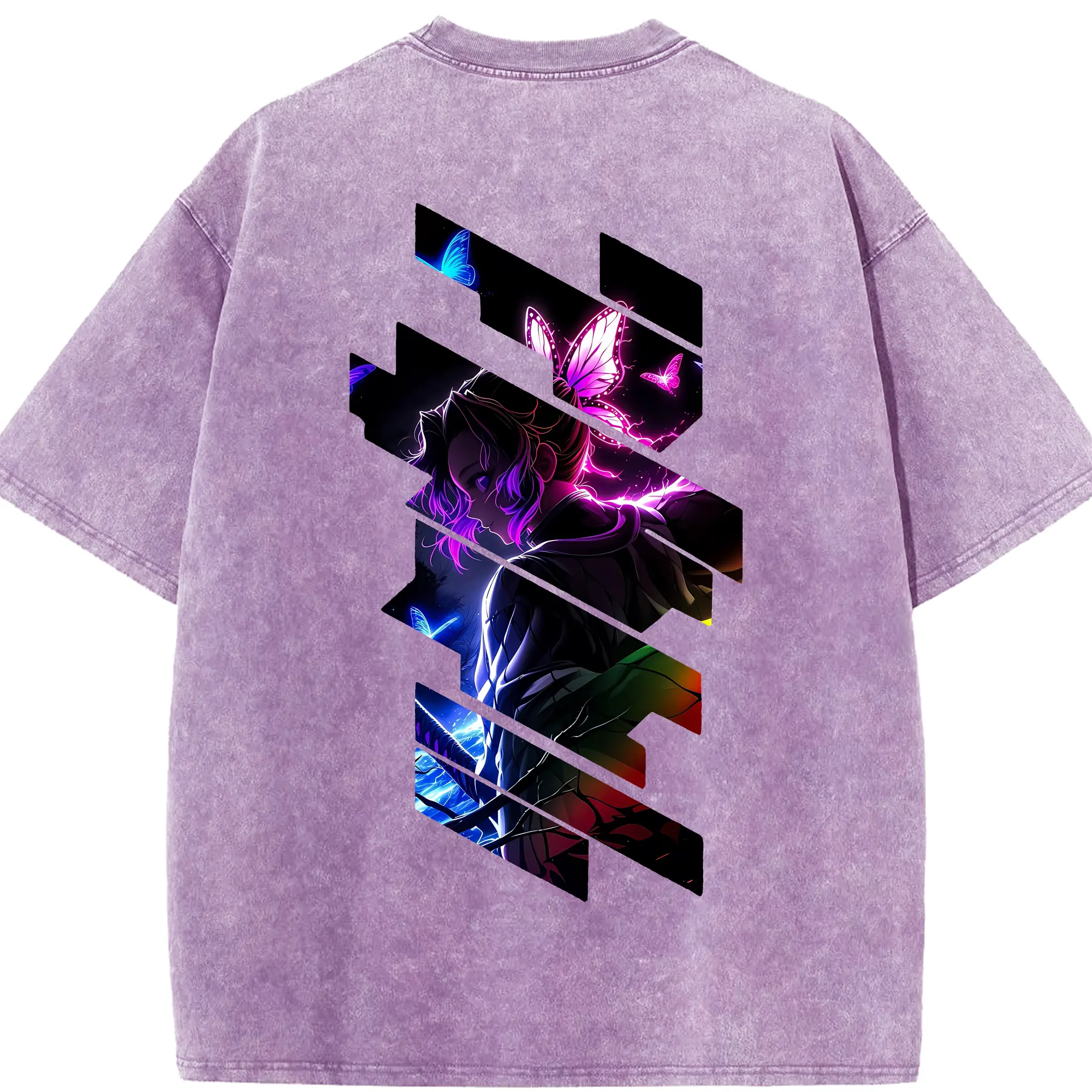 鬼滅の刃 グッズ,胡蝶 しのぶ - 綿100% 半袖Tシャツ ・ バックプリント ・ 快適 通気性 ・ 日常使い 散歩 スポーツ用