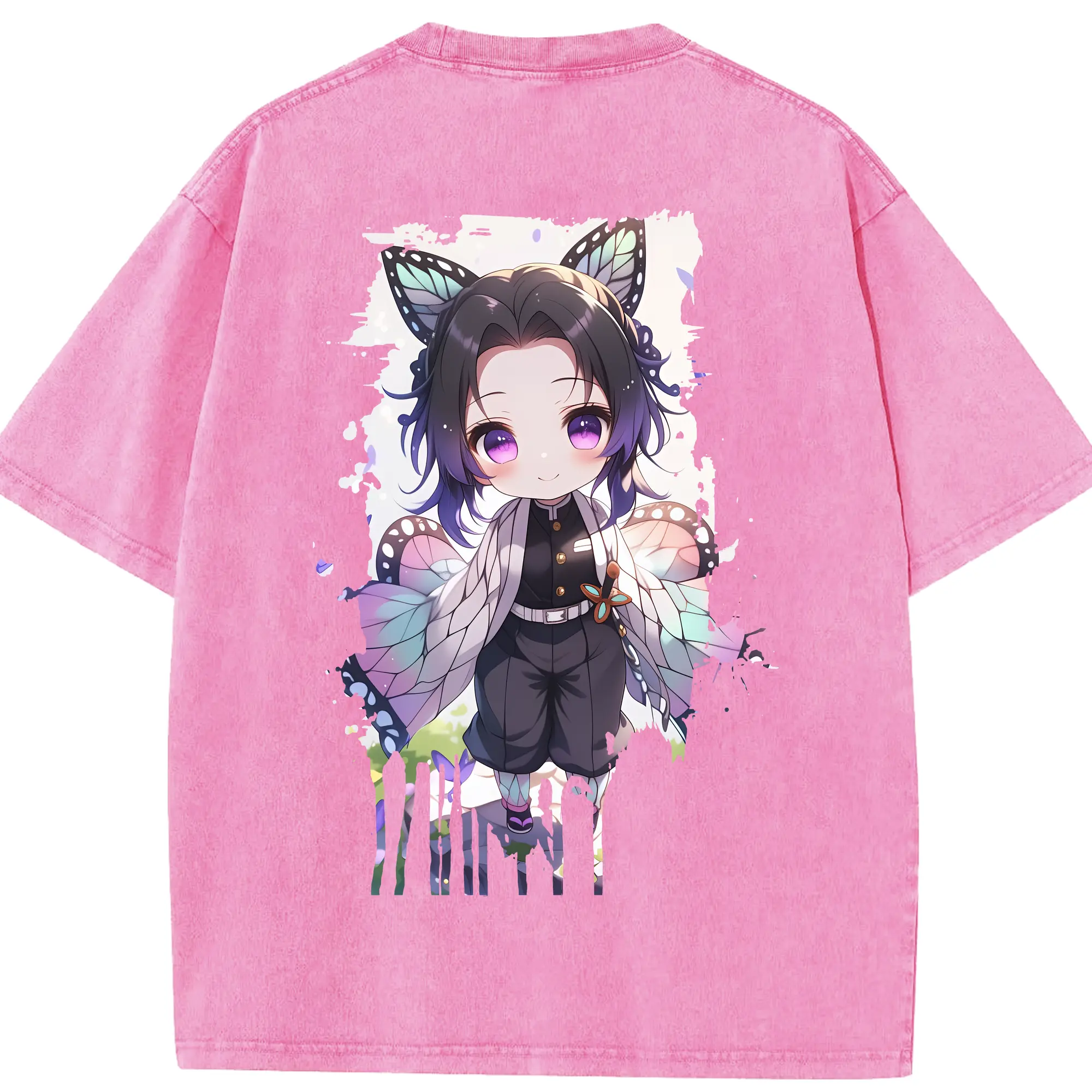 鬼滅の刃 グッズ,胡蝶 しのぶ - 綿100% 半袖Tシャツ ・ バックプリント ・ 快適 通気性 ・ 日常使い 散歩 スポーツ用