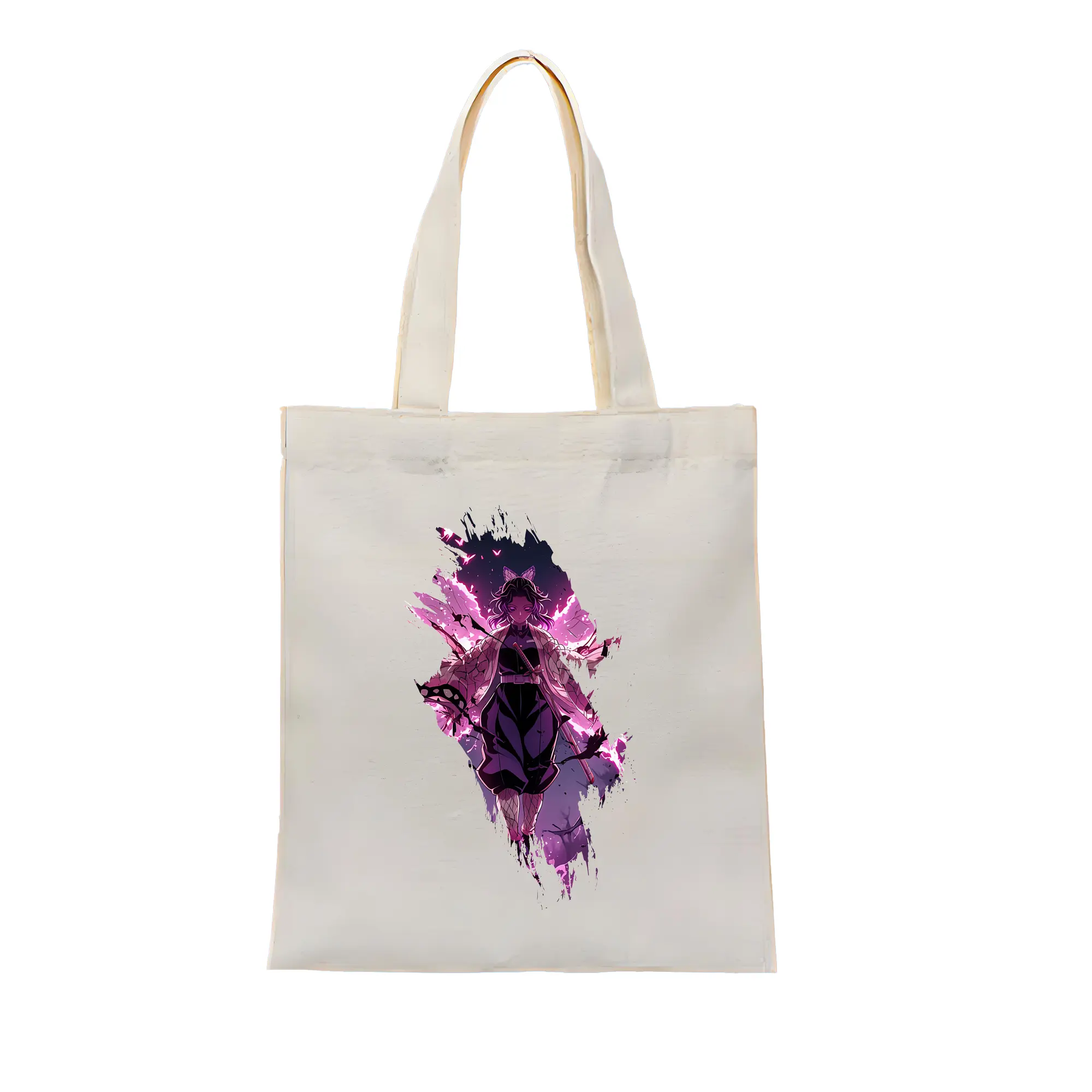 鬼滅の刃 グッズ,胡蝶 しのぶ - 縦型キャンバス手提げバッグ(トートバッグ) ・ キャンバス素材 ・ ショッピング用 ・ 軽量 丈夫 お手入れ簡単