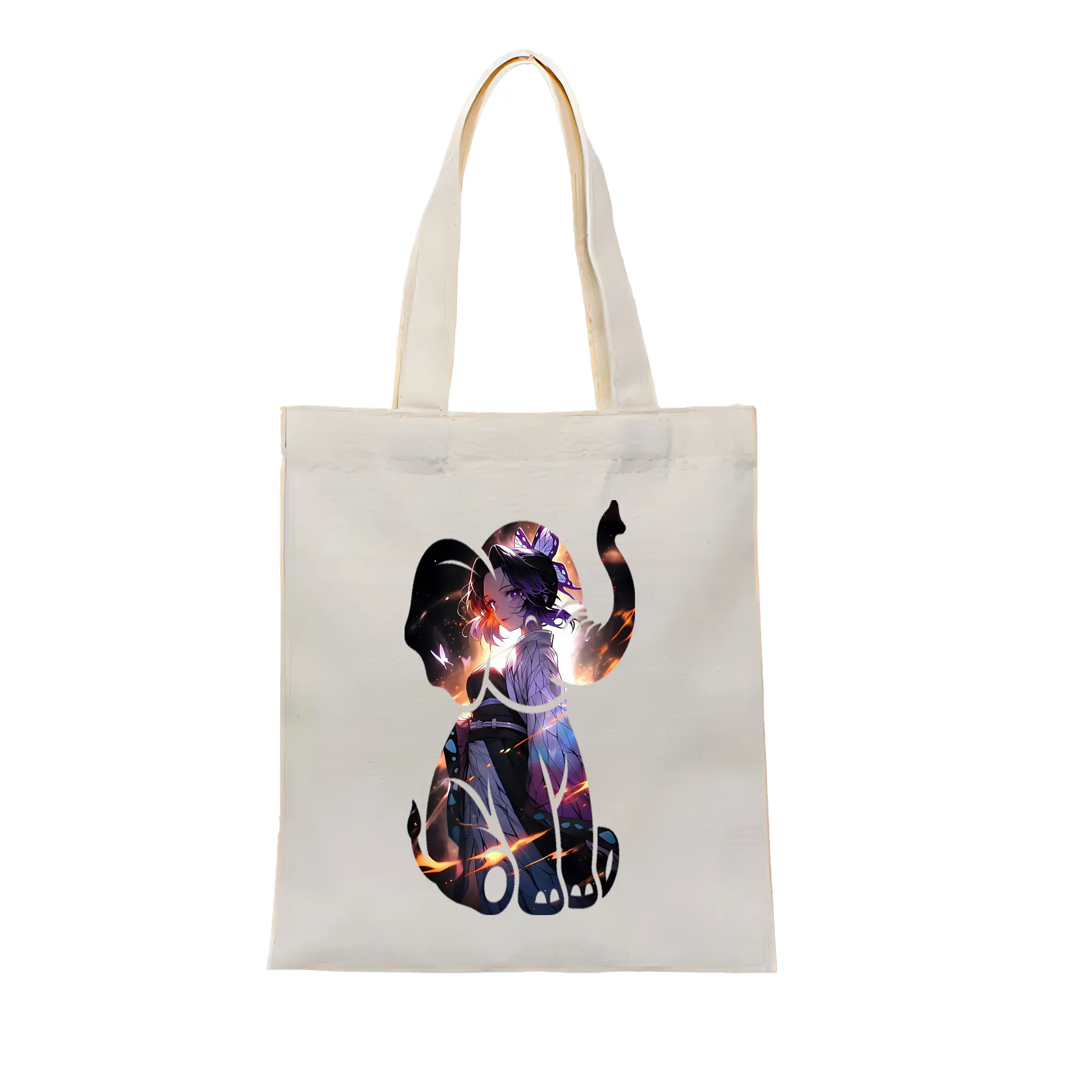 鬼滅の刃 グッズ,胡蝶 しのぶ - 縦型キャンバス手提げバッグ(トートバッグ) ・ キャンバス素材 ・ ショッピング用 ・ 軽量 丈夫 お手入れ簡単