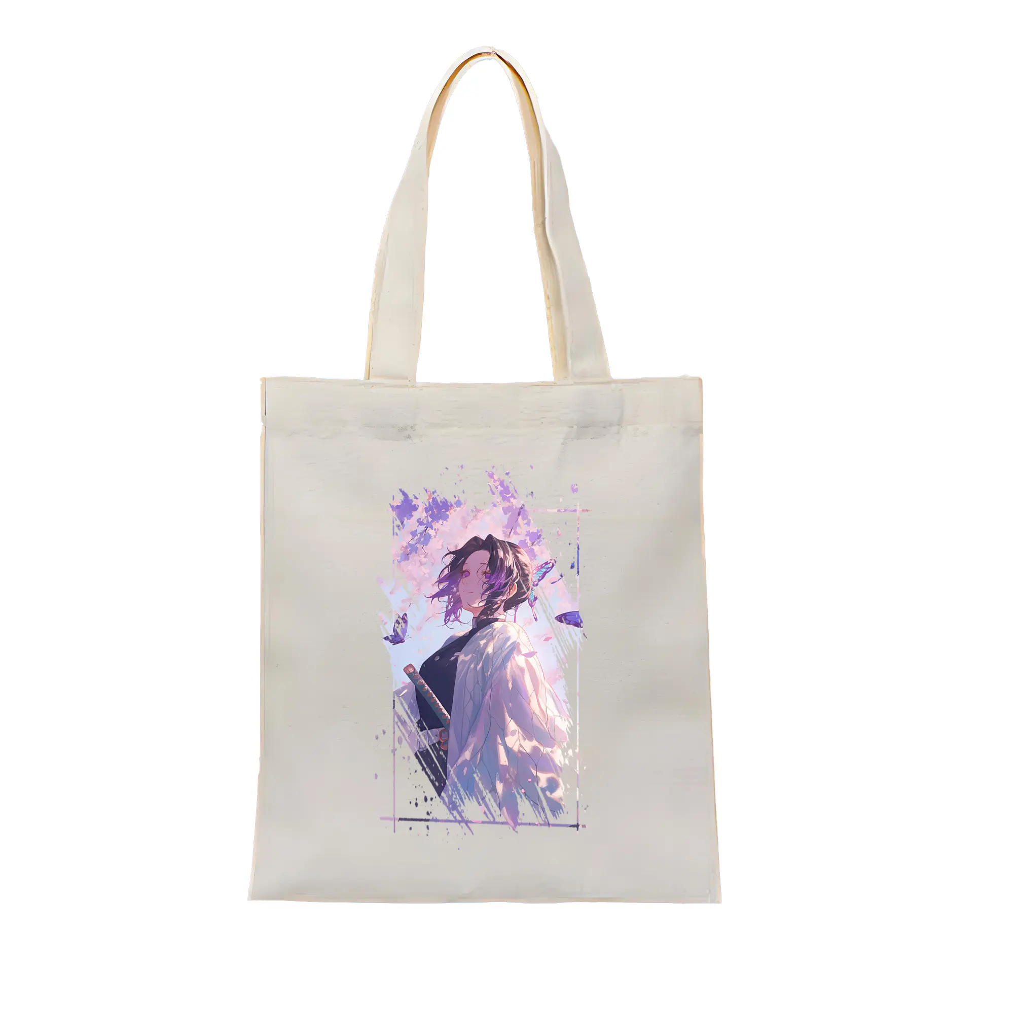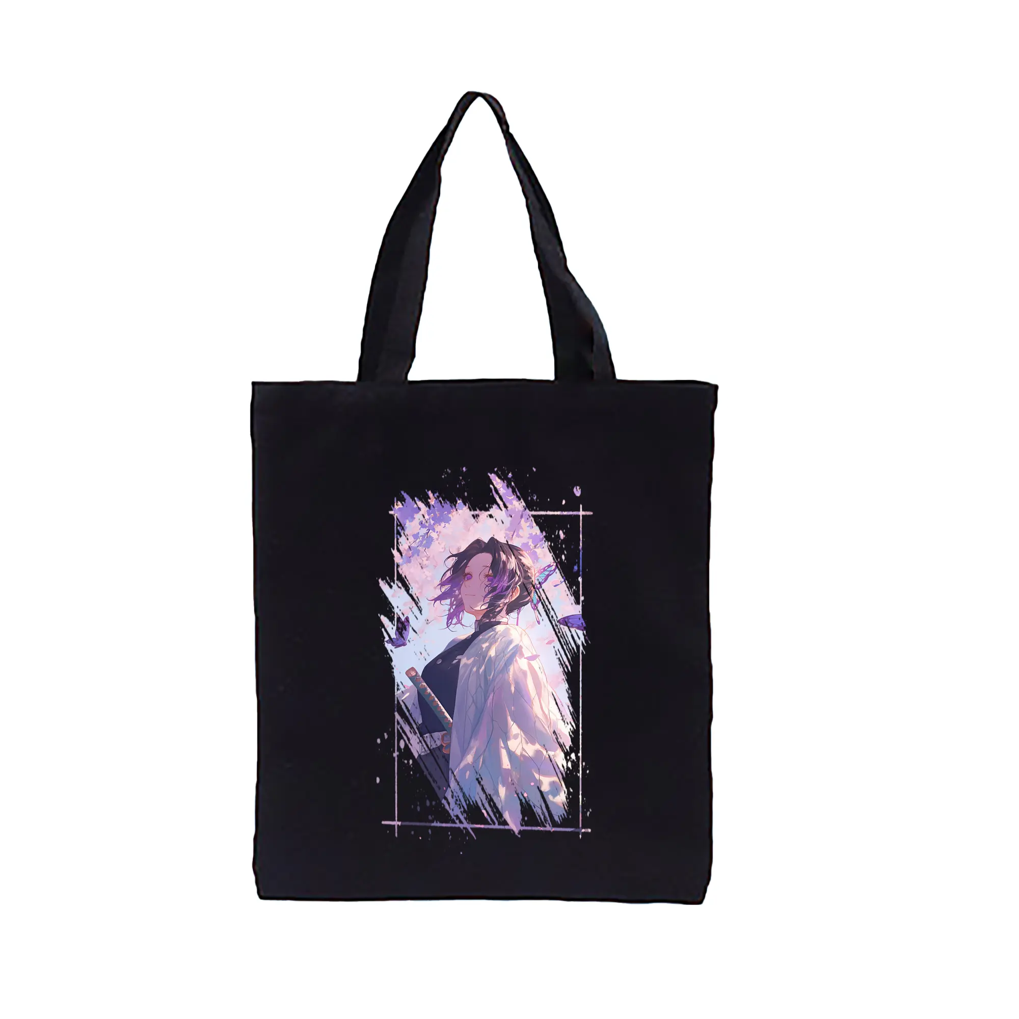 鬼滅の刃 グッズ,胡蝶 しのぶ - 縦型キャンバス手提げバッグ(トートバッグ) ・ キャンバス素材 ・ ショッピング用 ・ 軽量 丈夫 お手入れ簡単