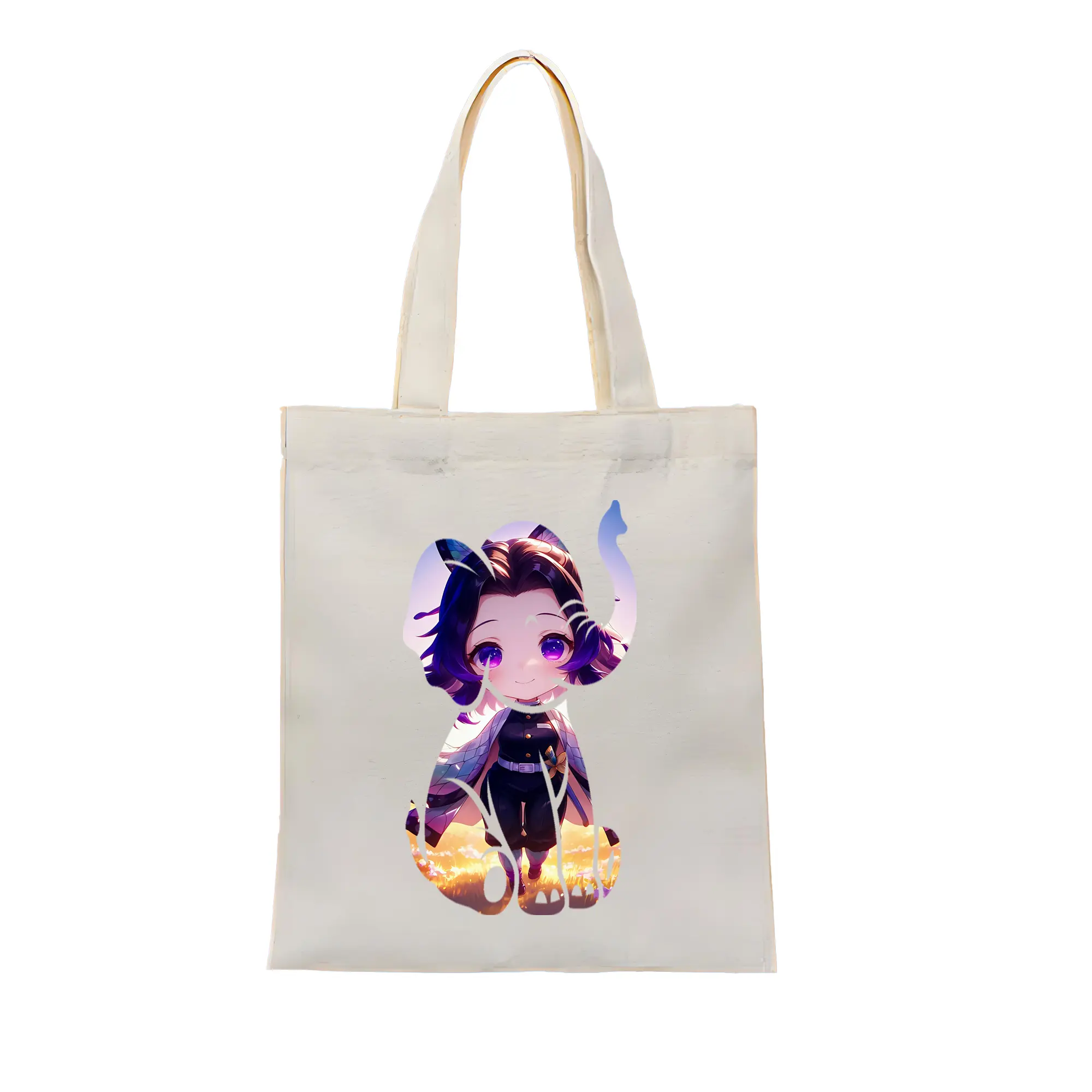 鬼滅の刃 グッズ,胡蝶 しのぶ - 縦型キャンバス手提げバッグ(トートバッグ) ・ キャンバス素材 ・ ショッピング用 ・ 軽量 丈夫 お手入れ簡単