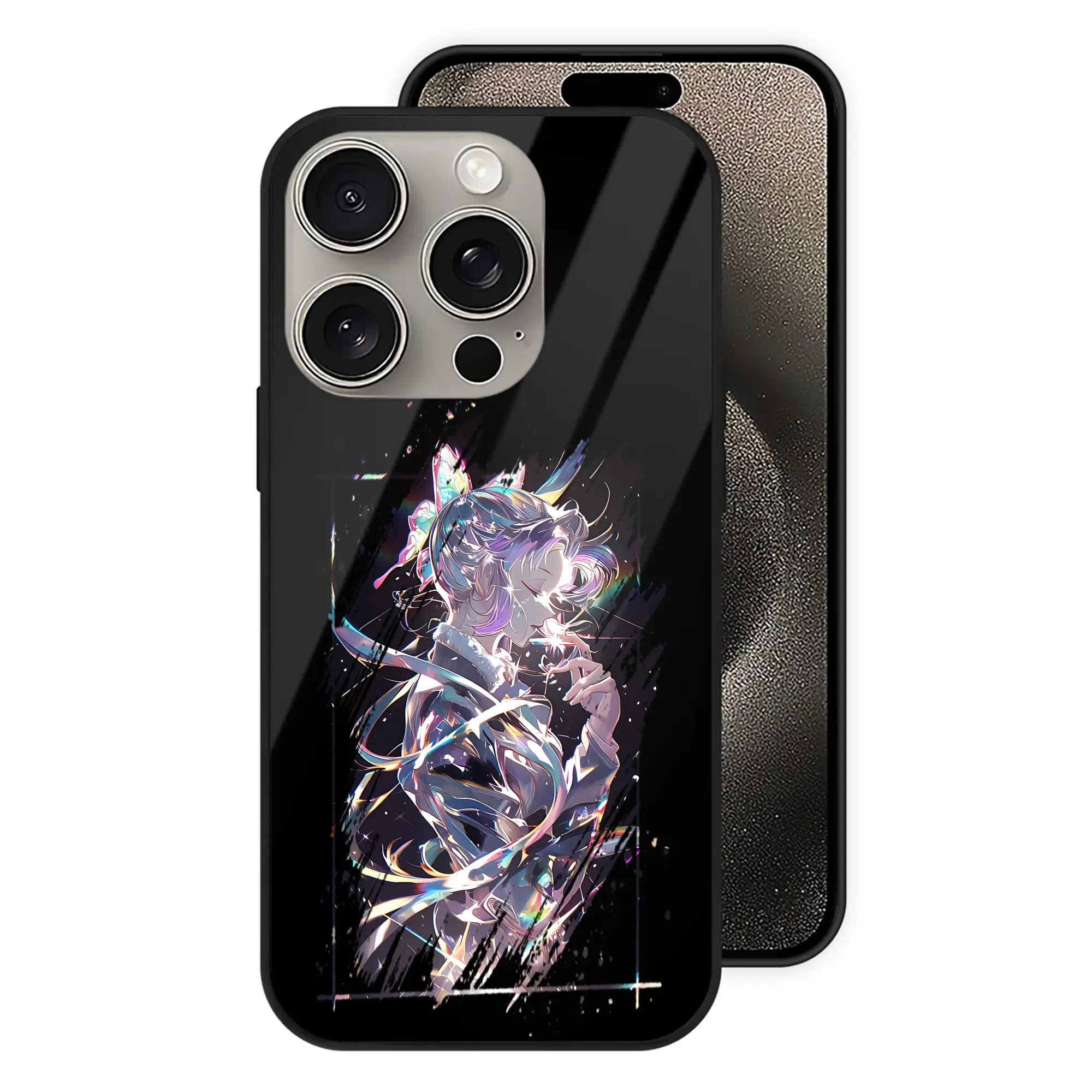 鬼滅の刃 グッズ,胡蝶 しのぶ - IPhone15Pro対応 ・ スマホケース ・ 背面ガラス ・ TPU+強化ガラス ・ 耐衝撃 ・ 黄変防止 ・ ワイヤレス充電対応 ・ 3D立体ボタン