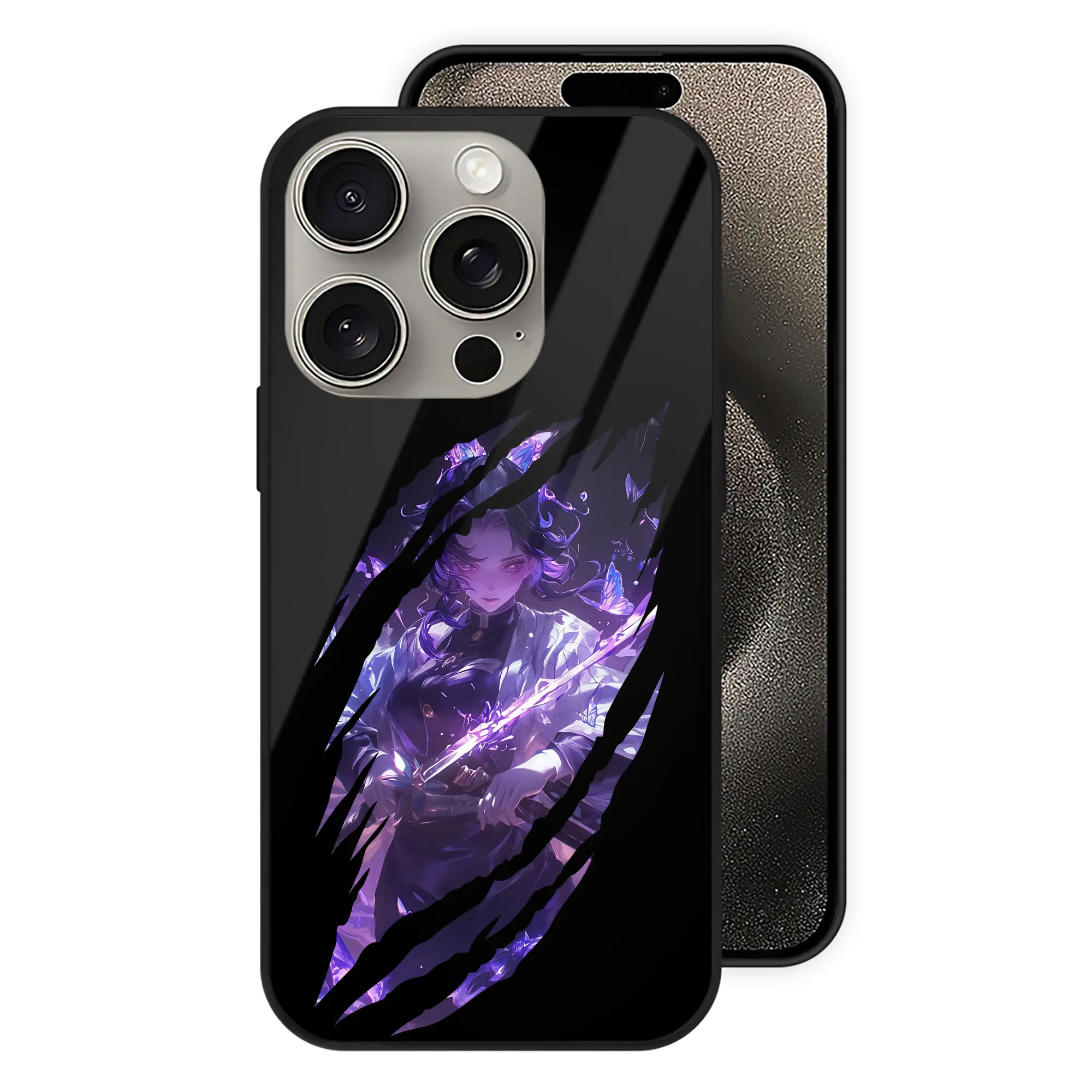 鬼滅の刃 グッズ,胡蝶 しのぶ - IPhone15Pro対応 ・ スマホケース ・ 背面ガラス ・ TPU+強化ガラス ・ 耐衝撃 ・ 黄変防止 ・ ワイヤレス充電対応 ・ 3D立体ボタン