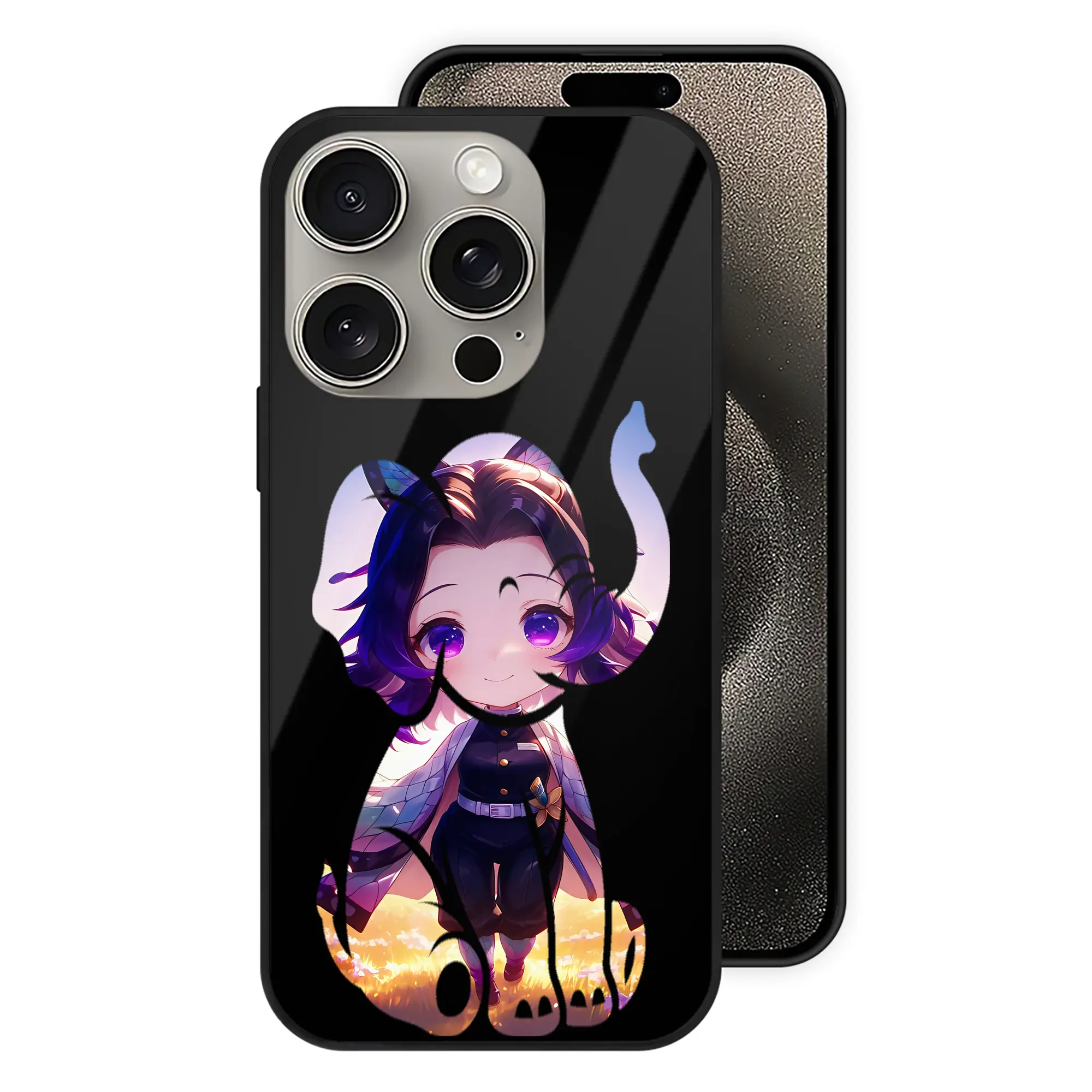 鬼滅の刃 グッズ,胡蝶 しのぶ - IPhone15Pro対応 ・ スマホケース ・ 背面ガラス ・ TPU+強化ガラス ・ 耐衝撃 ・ 黄変防止 ・ ワイヤレス充電対応 ・ 3D立体ボタン