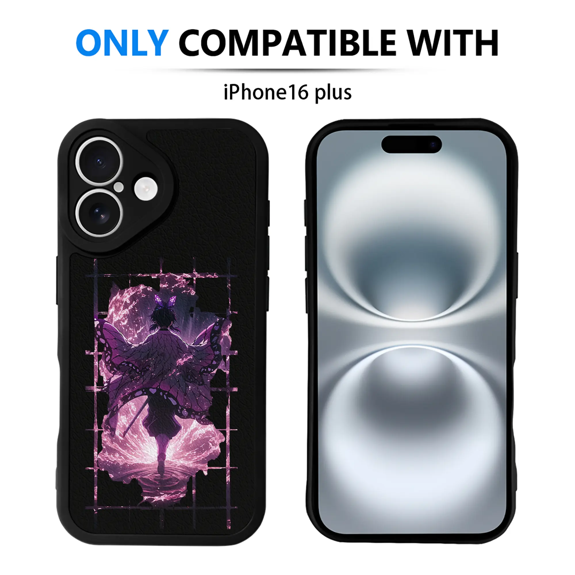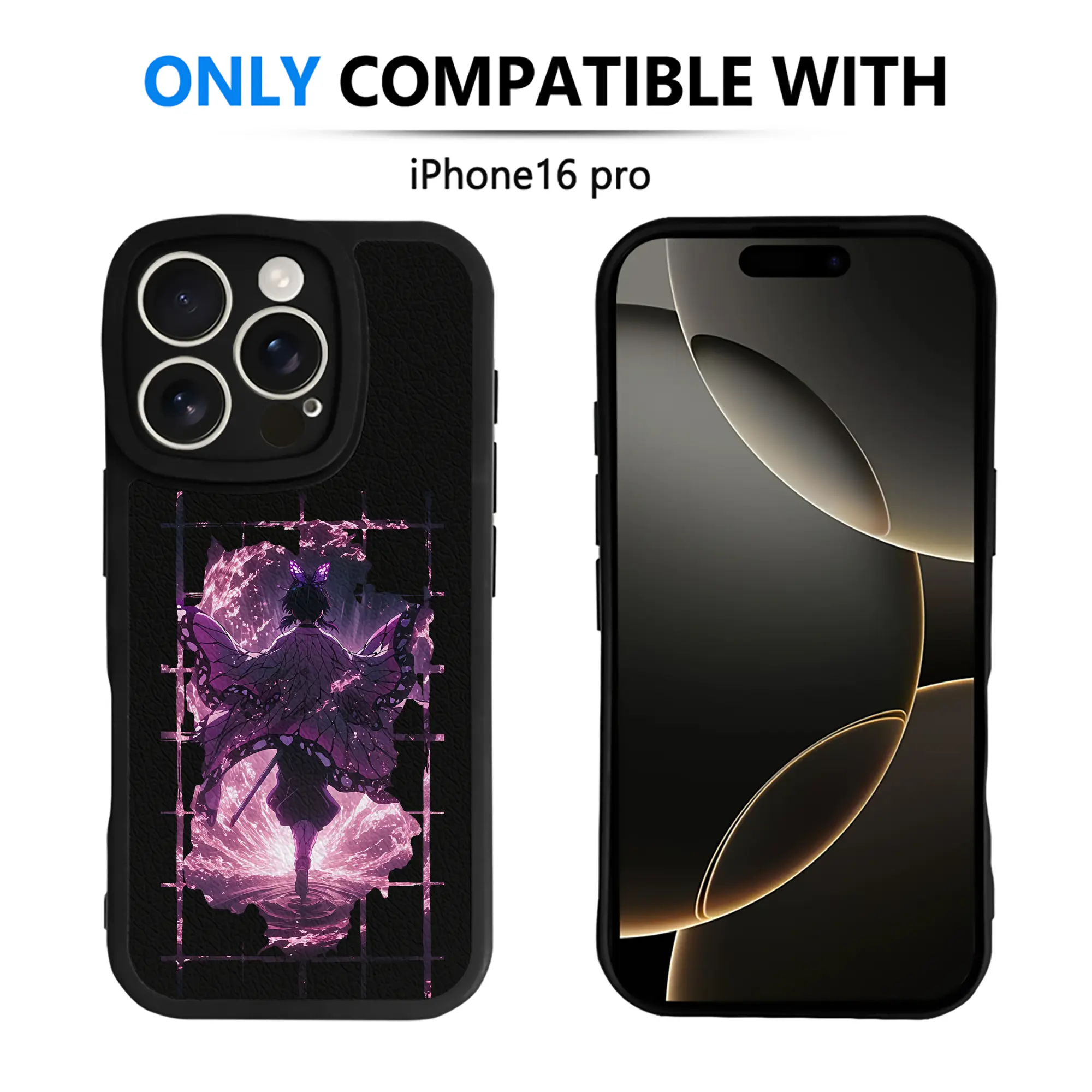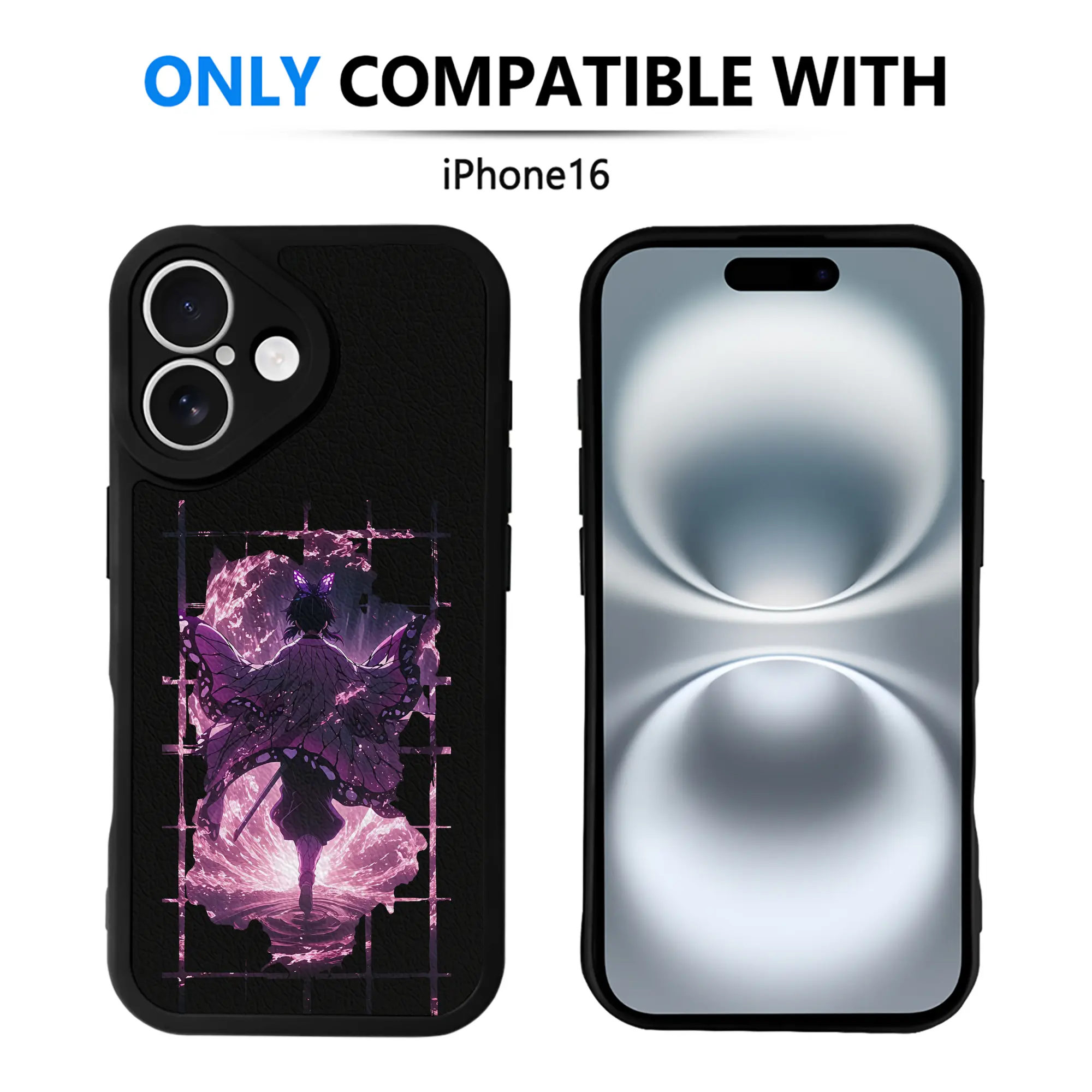 鬼滅の刃 グッズ,胡蝶 しのぶ - IPhone 16シリーズ対応 ・ シリコンスマホケース ・ レザー調 ・ 高精度フィット ・ 耐衝撃 ・ ワイヤレス充電対応 ・ 精密カット