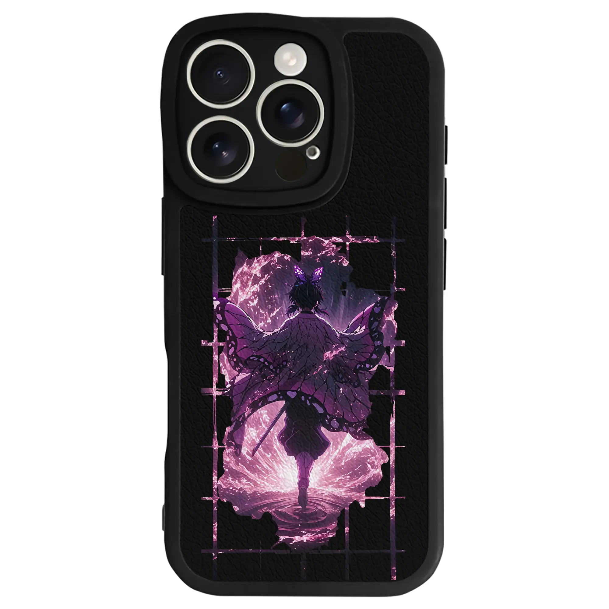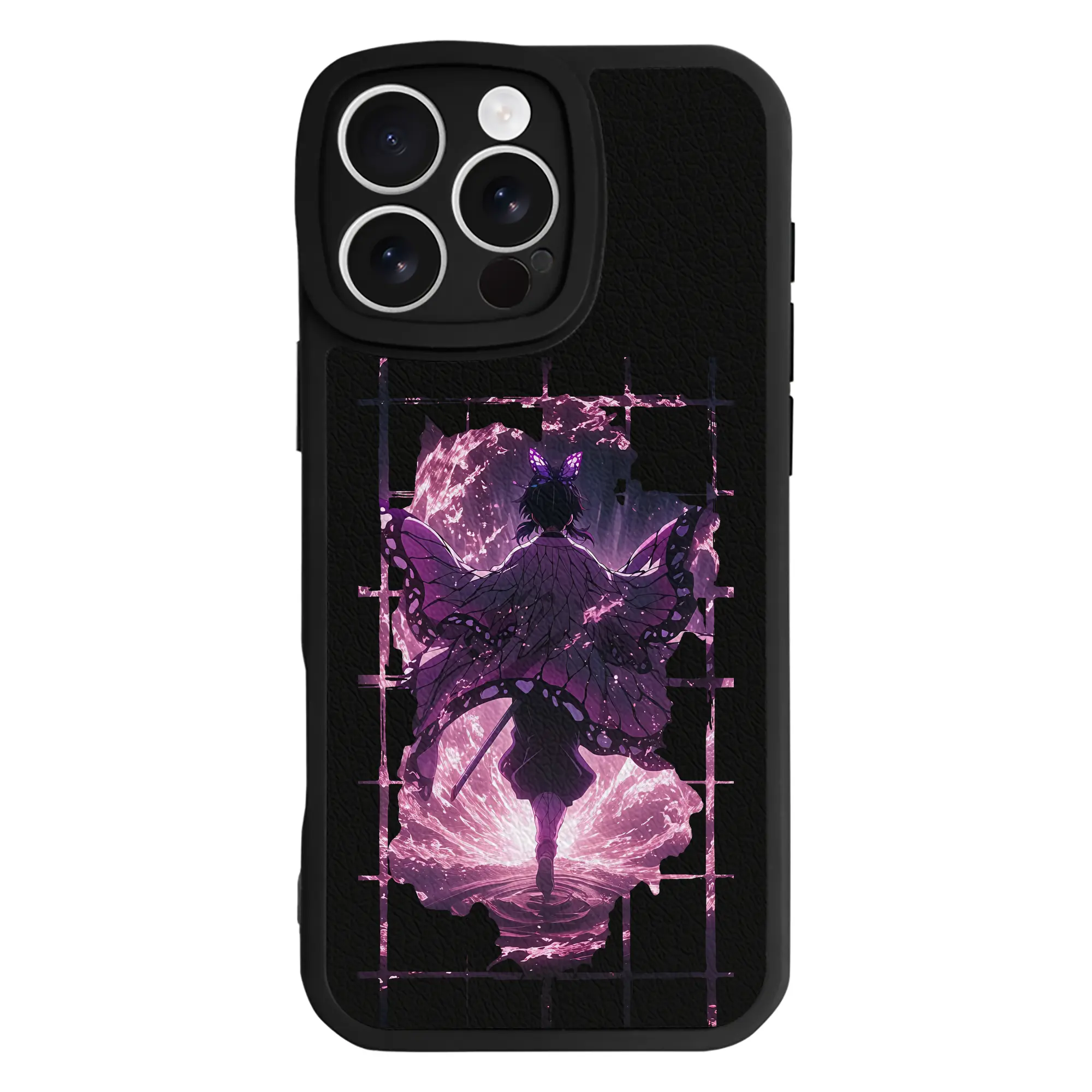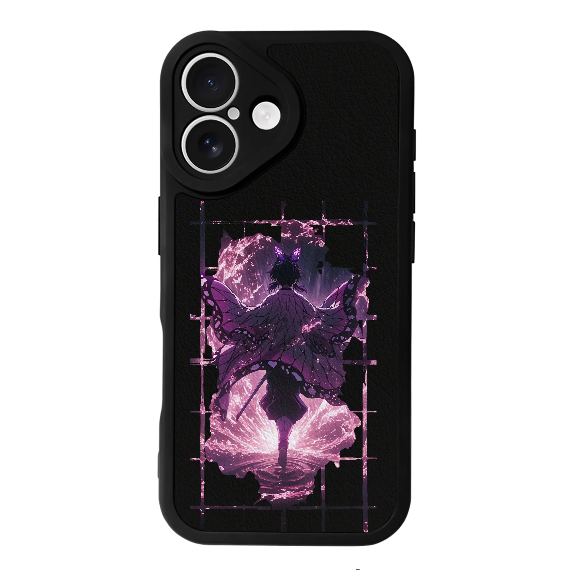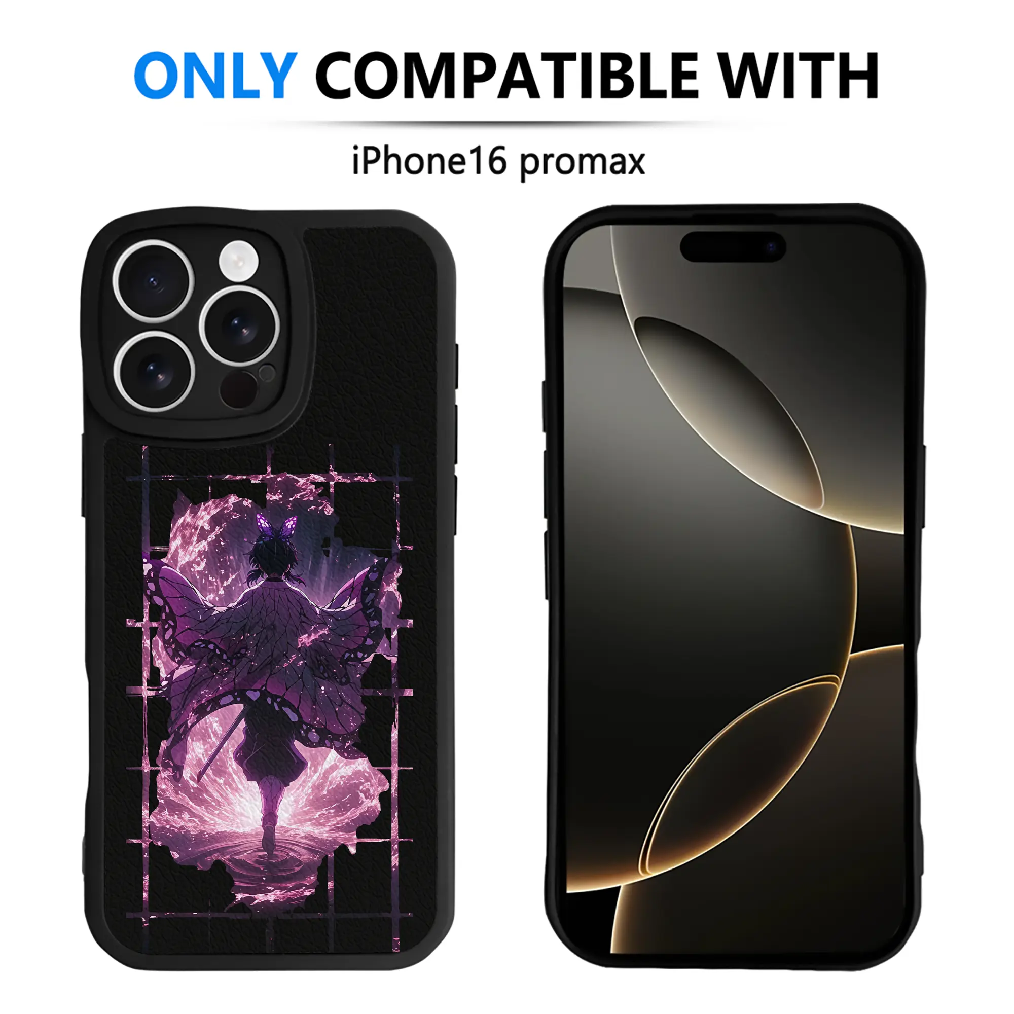 鬼滅の刃 グッズ,胡蝶 しのぶ - IPhone 16シリーズ対応 ・ シリコンスマホケース ・ レザー調 ・ 高精度フィット ・ 耐衝撃 ・ ワイヤレス充電対応 ・ 精密カット