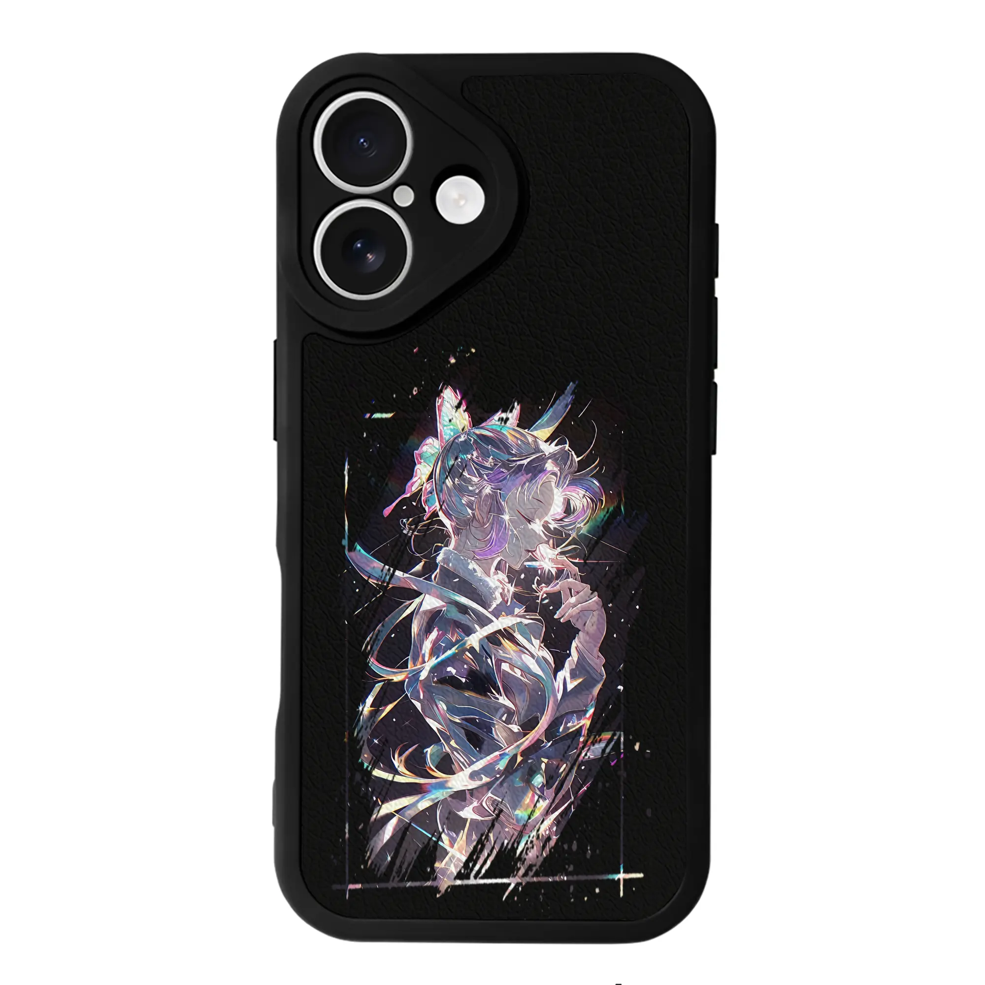 鬼滅の刃 グッズ,胡蝶 しのぶ - IPhone 16シリーズ対応 ・ シリコンスマホケース ・ レザー調 ・ 高精度フィット ・ 耐衝撃 ・ ワイヤレス充電対応 ・ 精密カット