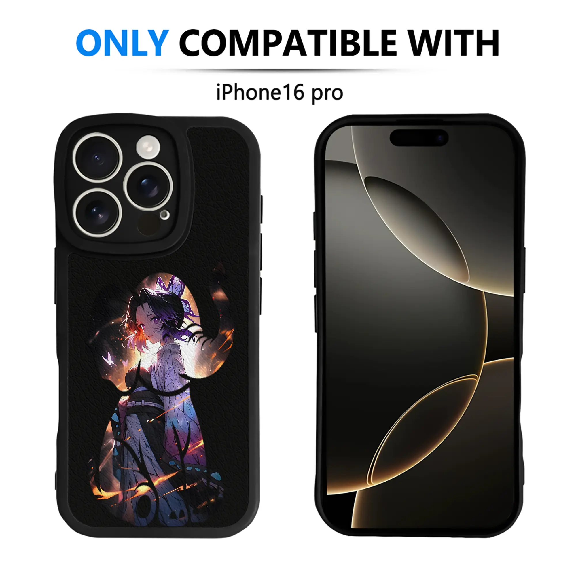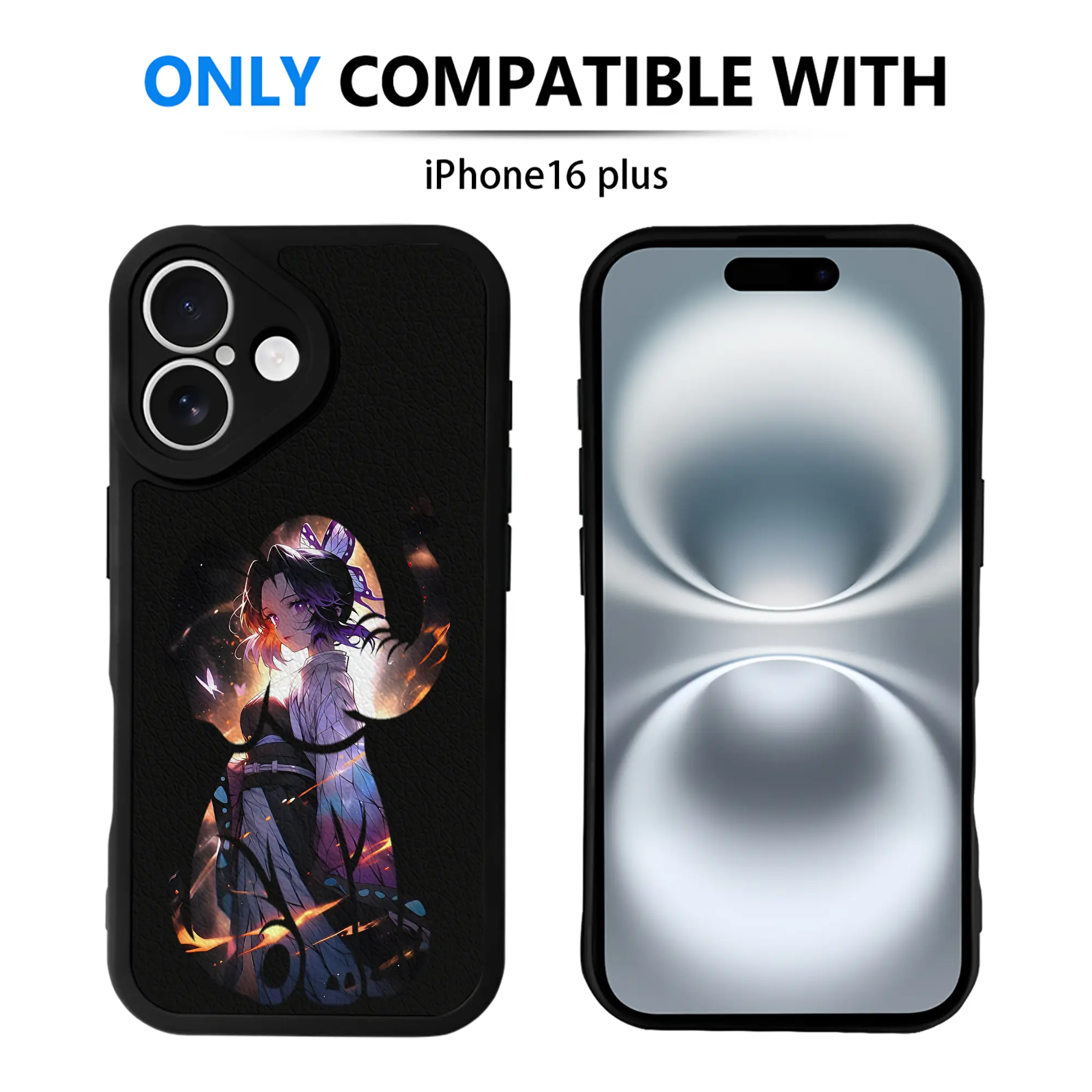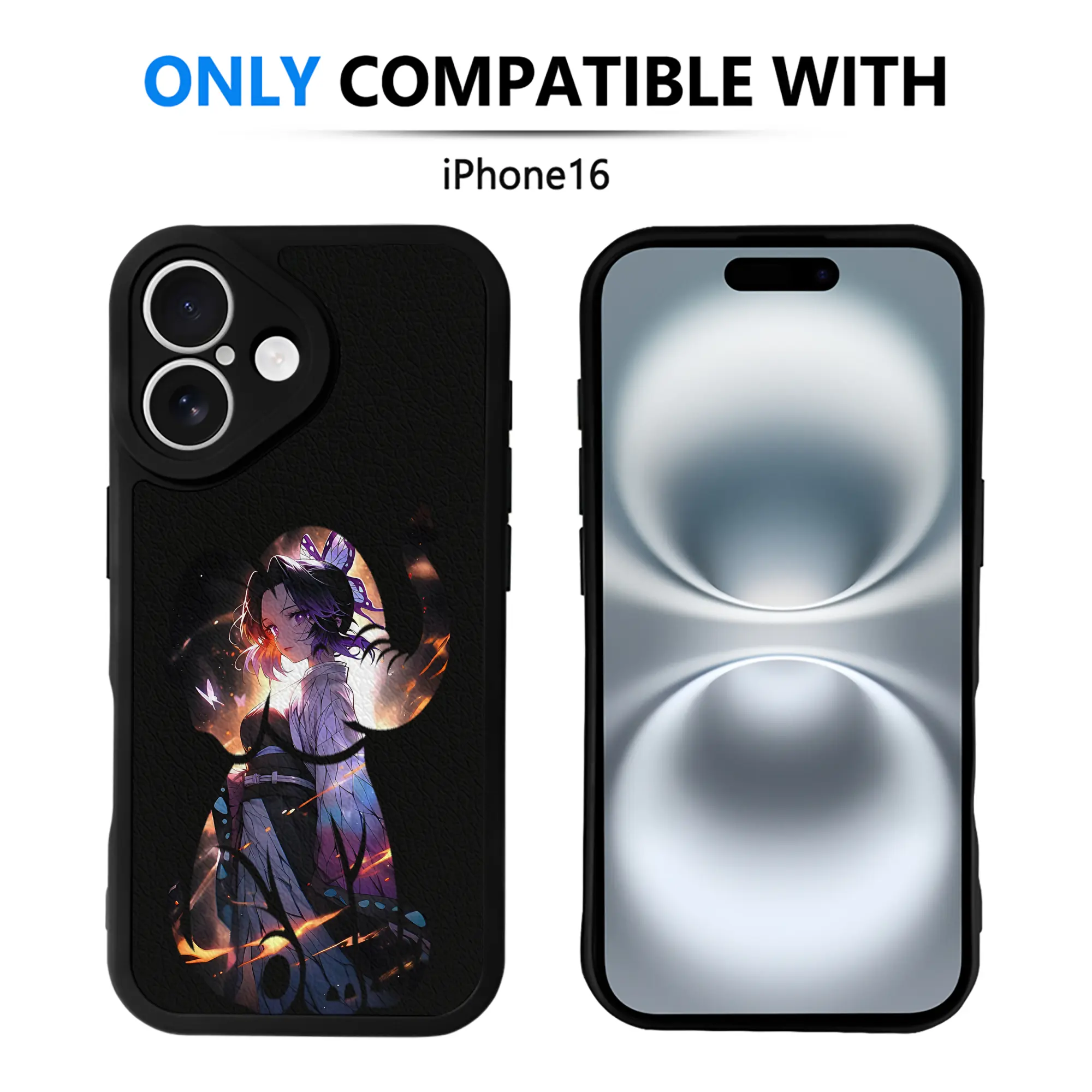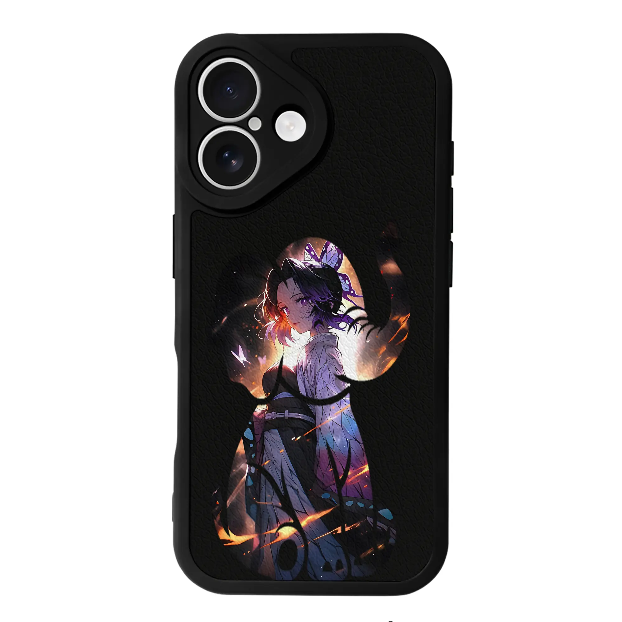 鬼滅の刃 グッズ,胡蝶 しのぶ - IPhone 16シリーズ対応 ・ シリコンスマホケース ・ レザー調 ・ 高精度フィット ・ 耐衝撃 ・ ワイヤレス充電対応 ・ 精密カット