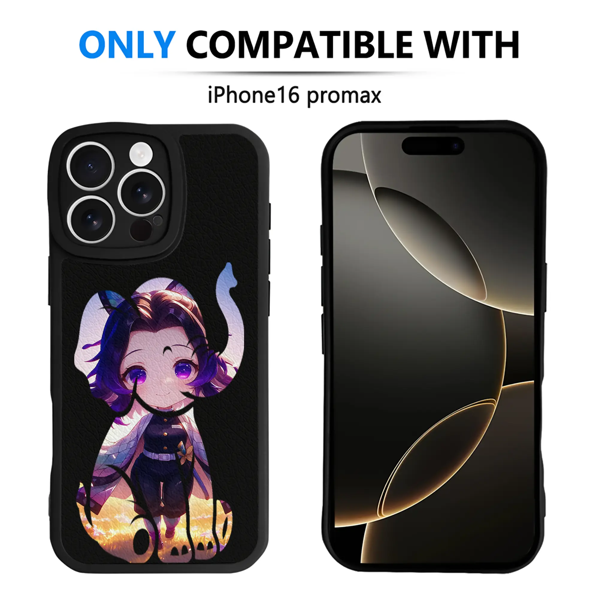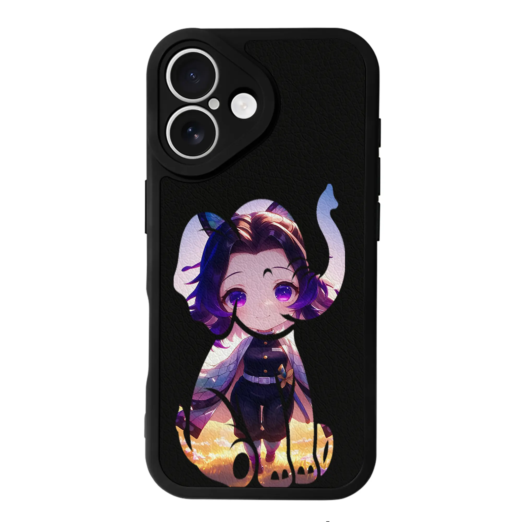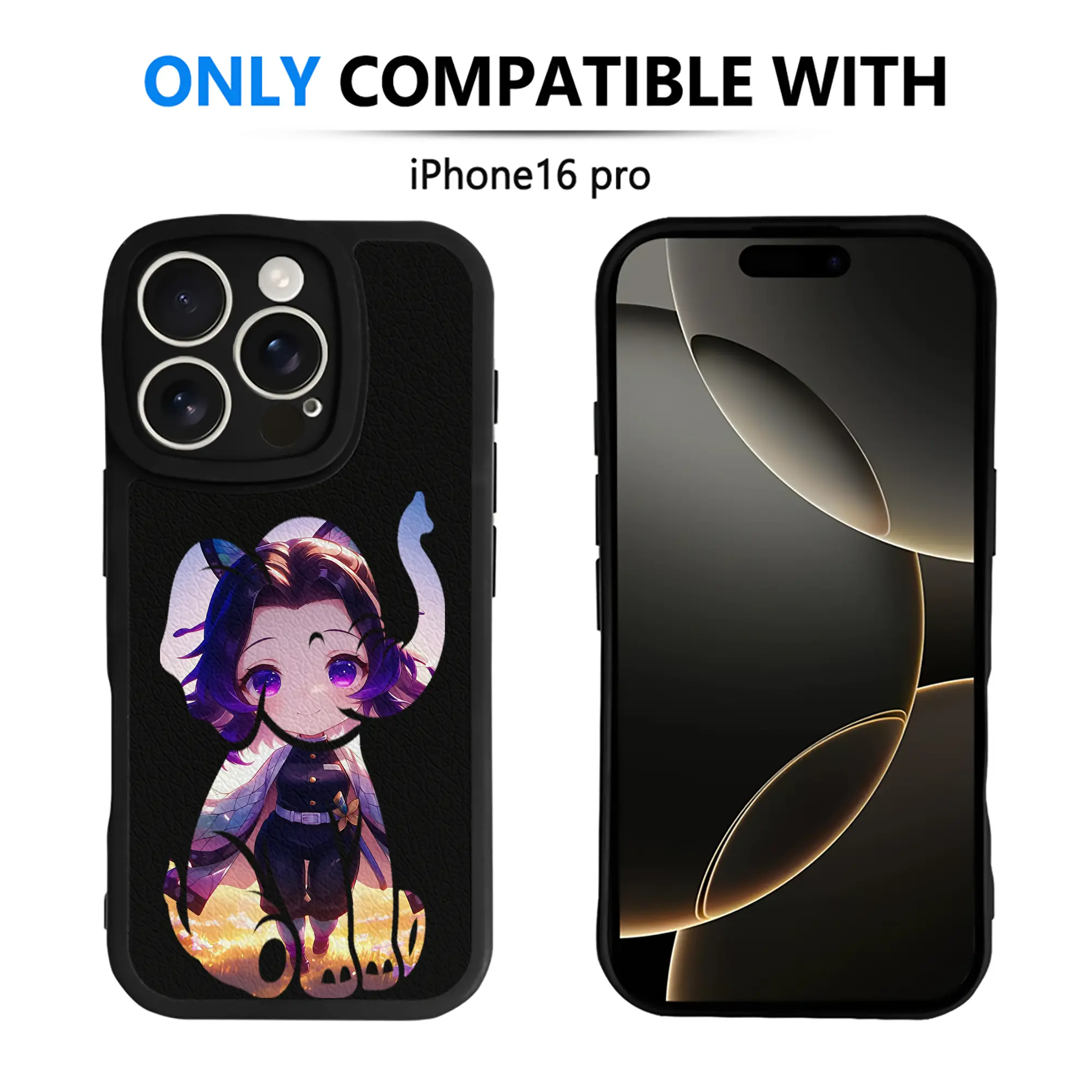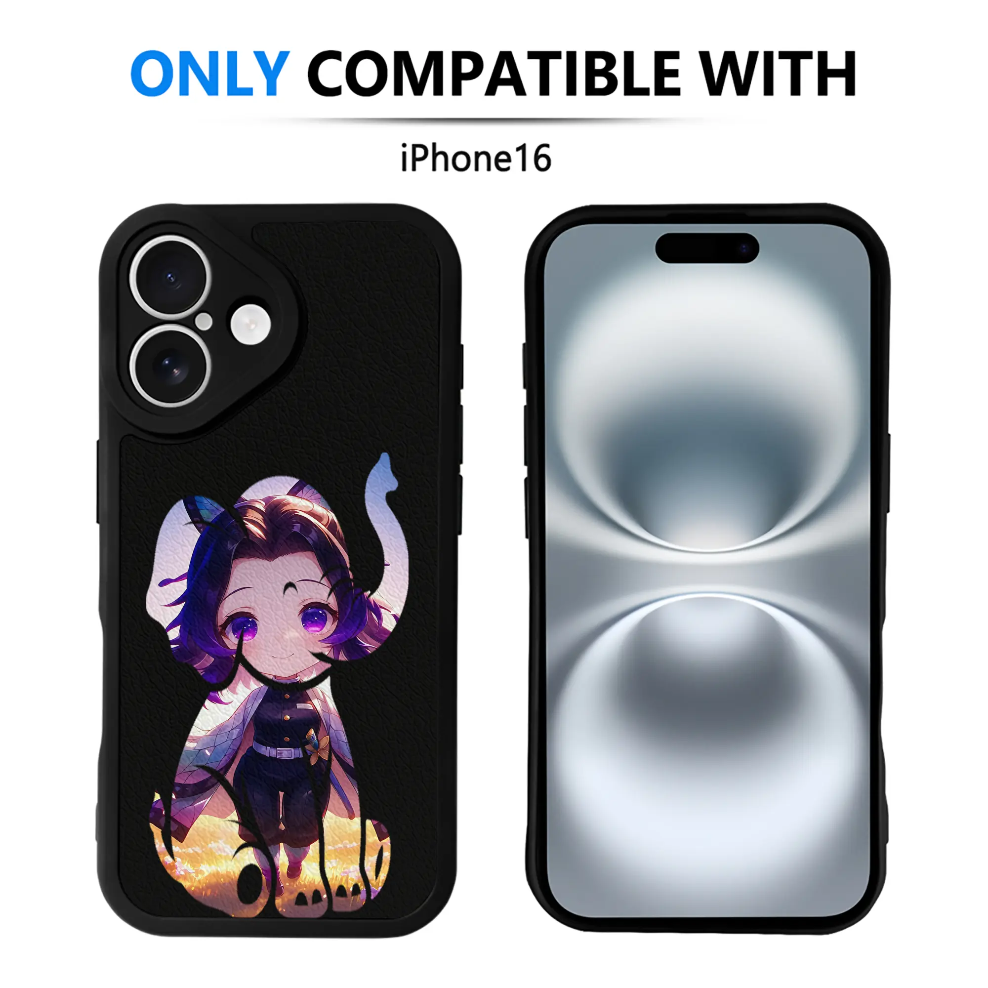 鬼滅の刃 グッズ,胡蝶 しのぶ - IPhone 16シリーズ対応 ・ シリコンスマホケース ・ レザー調 ・ 高精度フィット ・ 耐衝撃 ・ ワイヤレス充電対応 ・ 精密カット